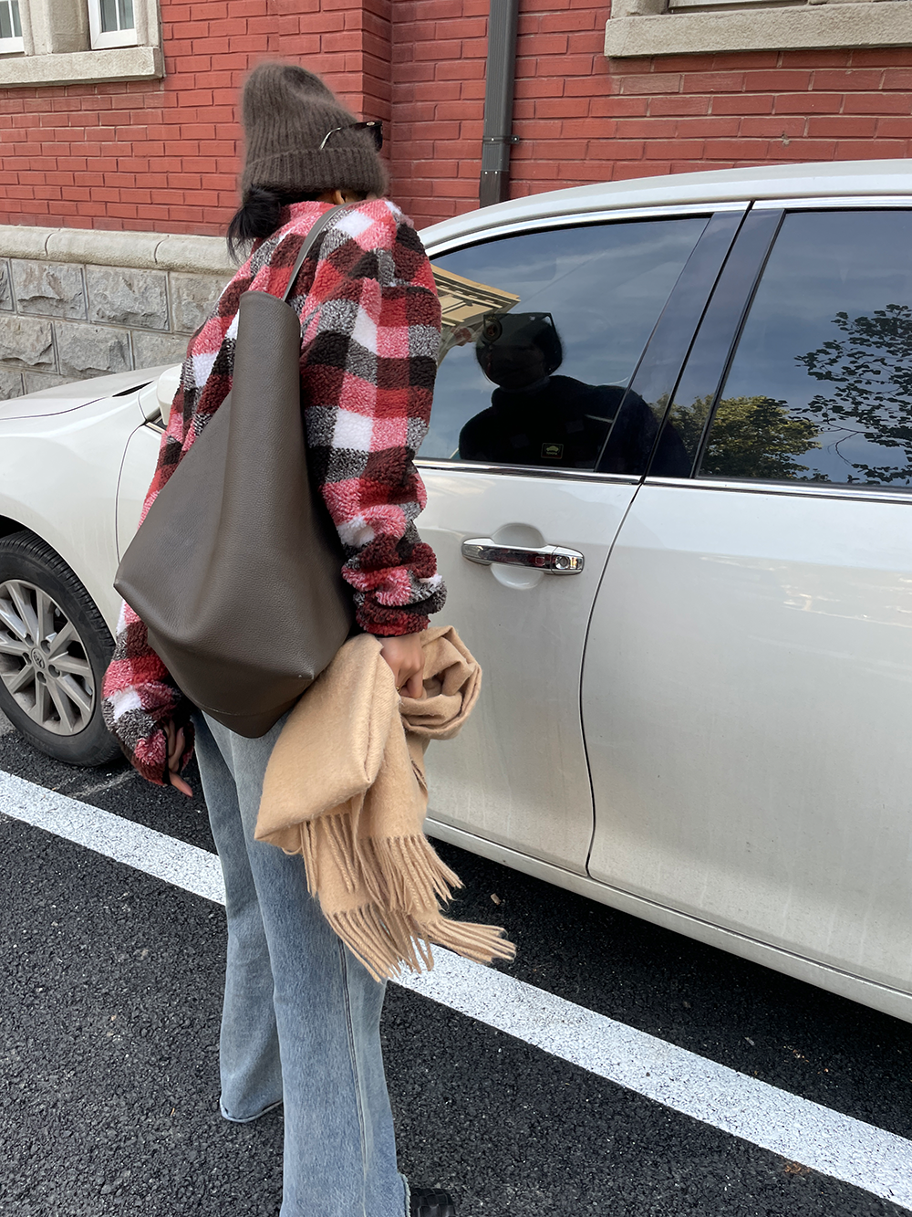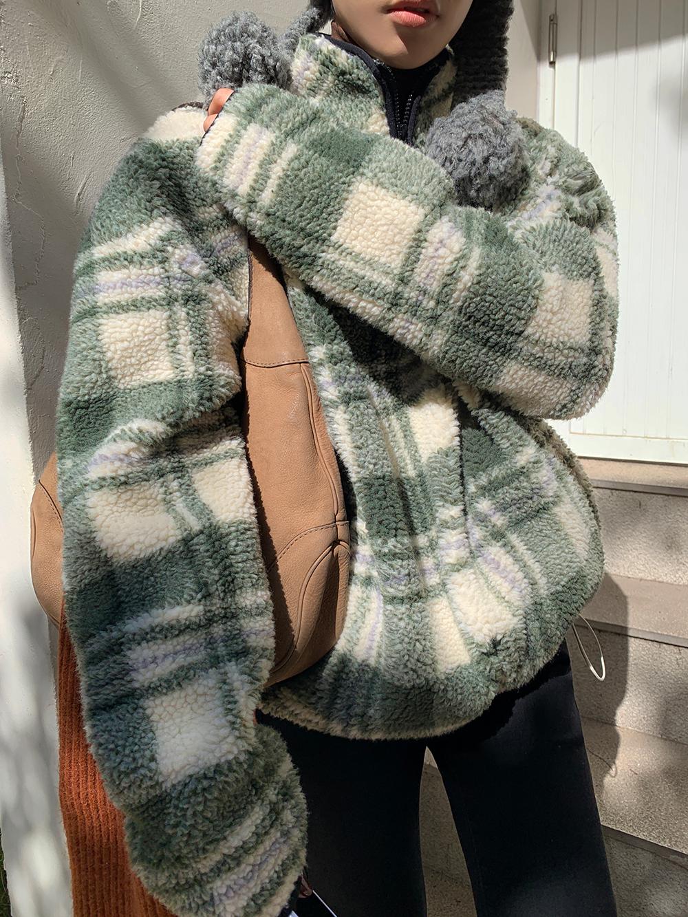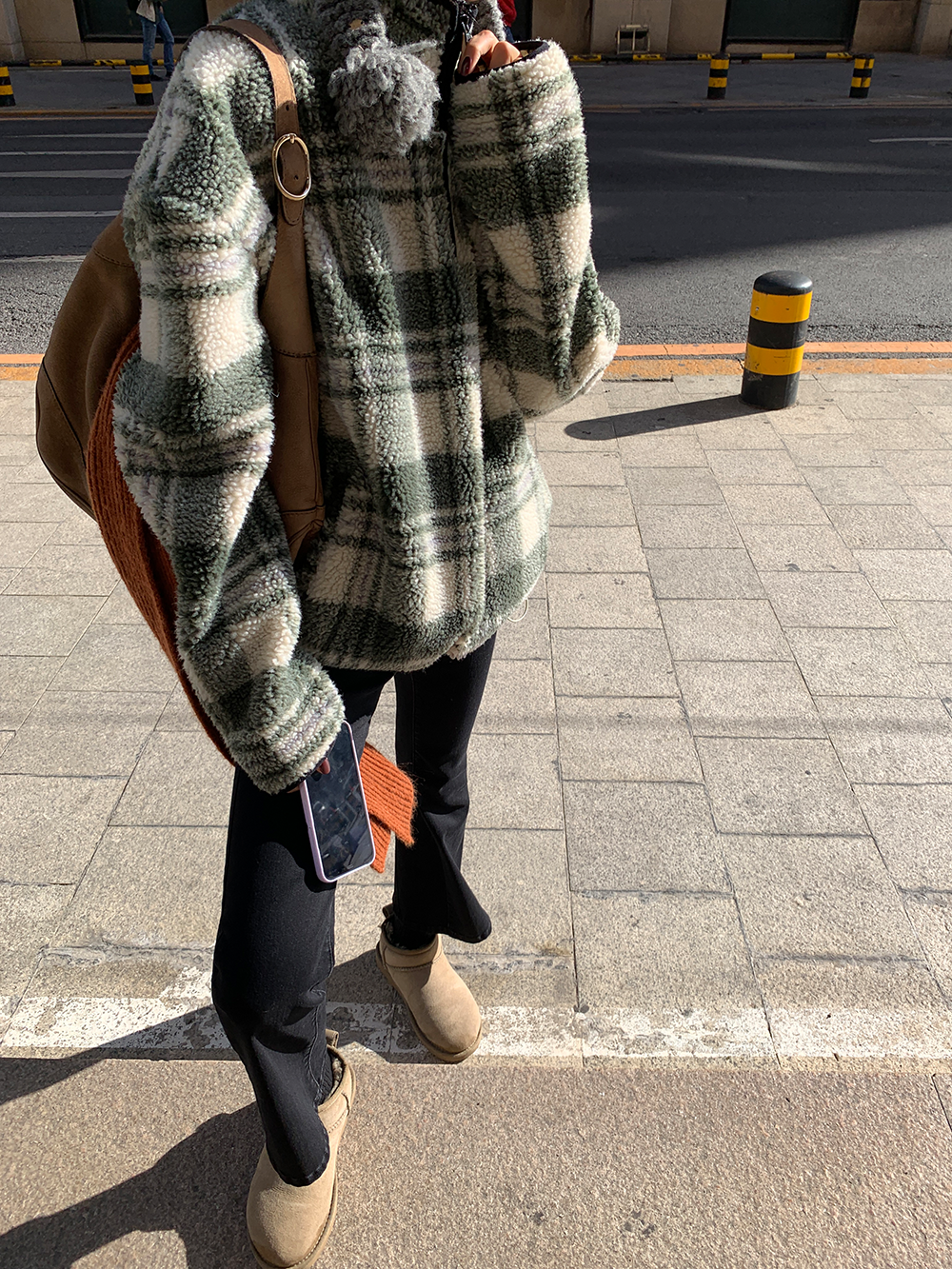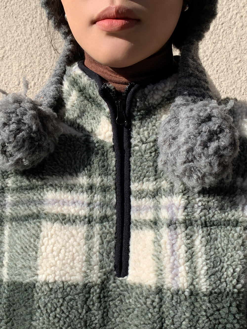 *o-ha-you*【FLCT1732】格紋搖粒絨衛衣秋冬季2023新款復古休閒寬鬆長袖加厚套頭上衣-2色-如有需要請先諮詢
