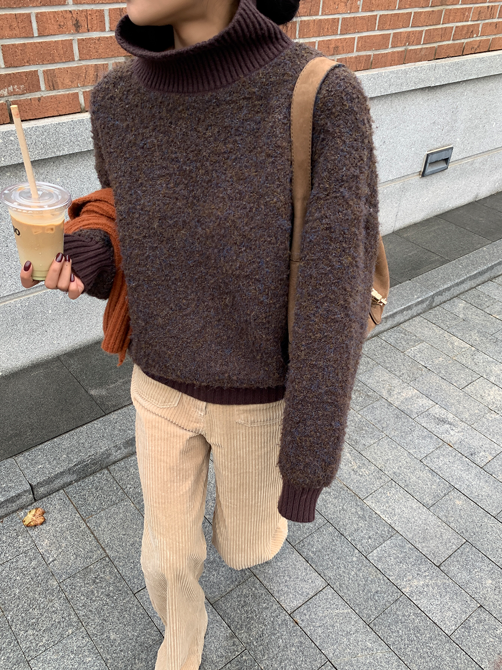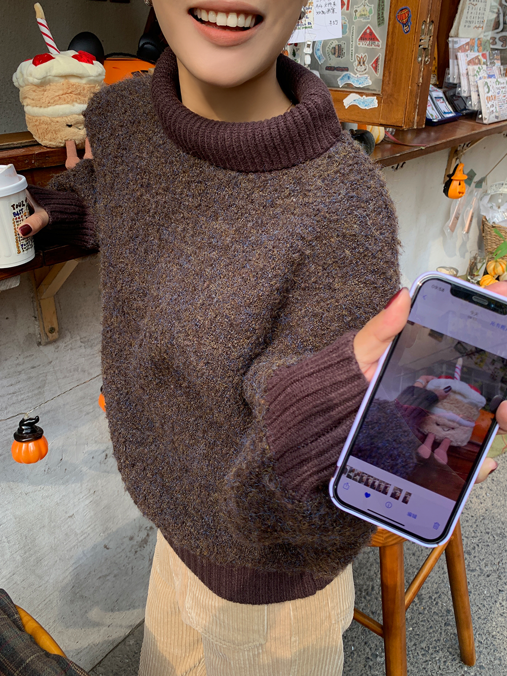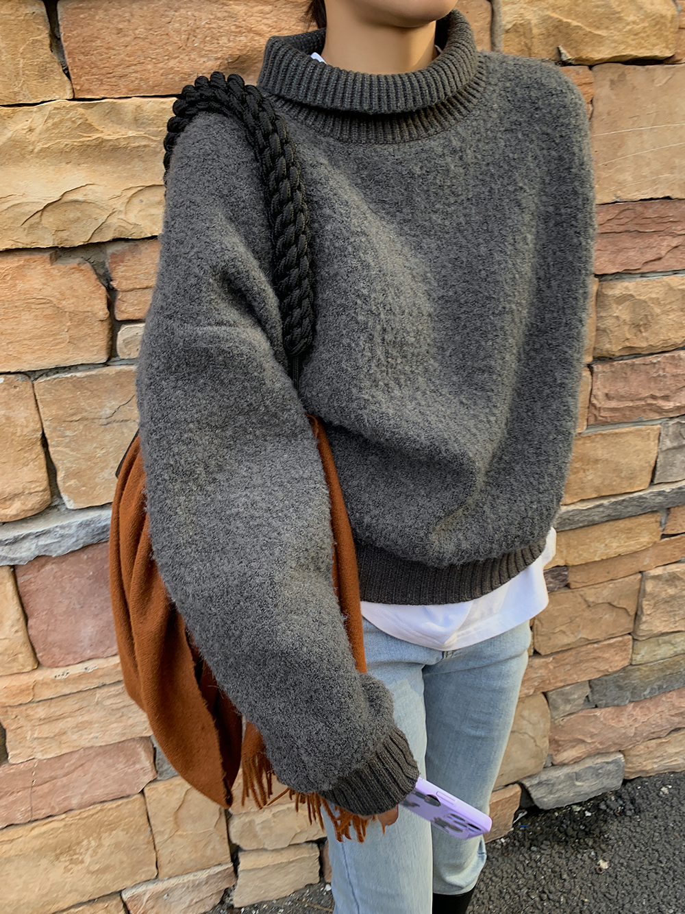 *o-ha-you*【FLCT1741】高領毛衣冬季2023新款寬鬆時尚慵懶風螺紋拼接套頭長袖針織上衣-2色-如有需要請先諮詢