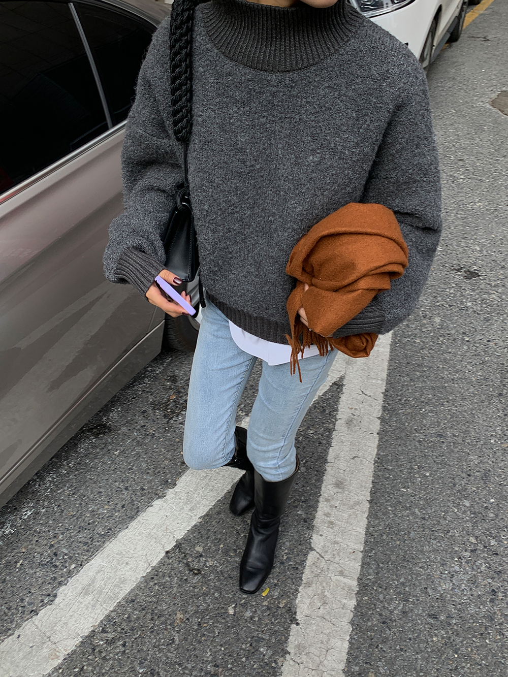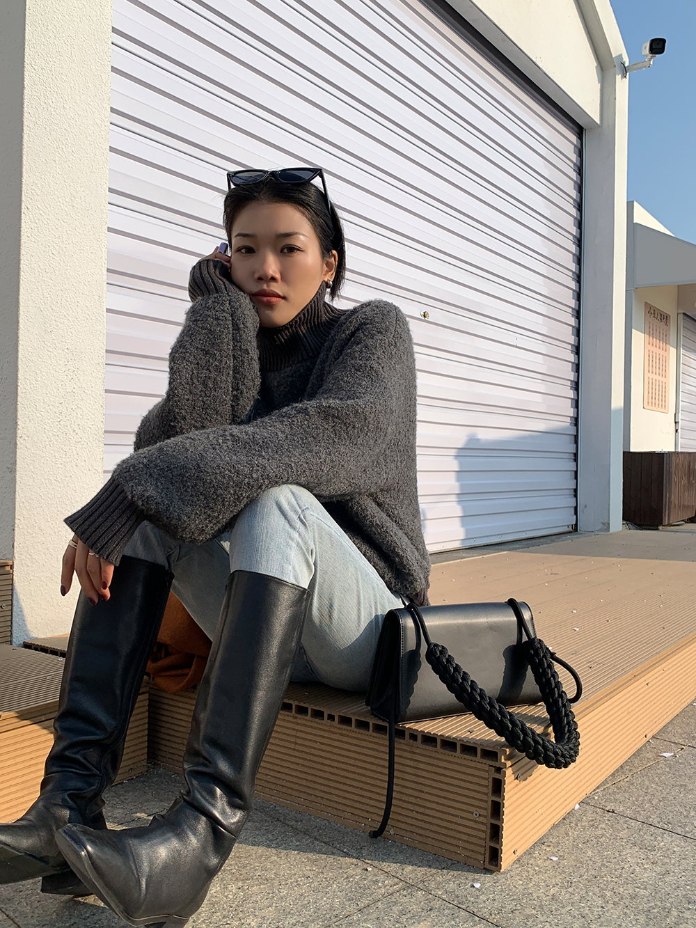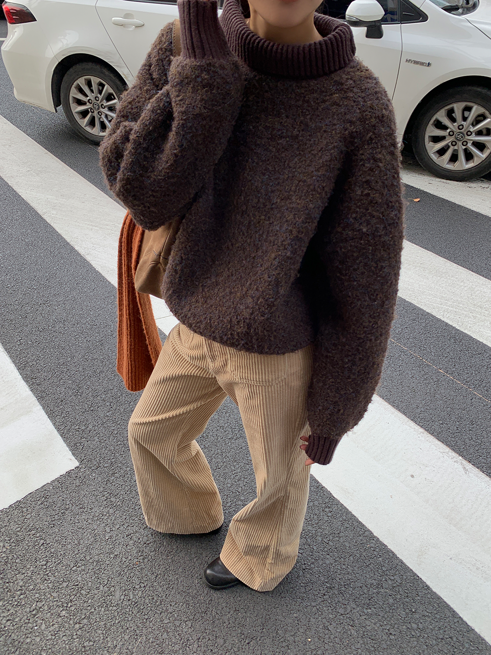 *o-ha-you*【FLCT1741】高領毛衣冬季2023新款寬鬆時尚慵懶風螺紋拼接套頭長袖針織上衣-2色-如有需要請先諮詢