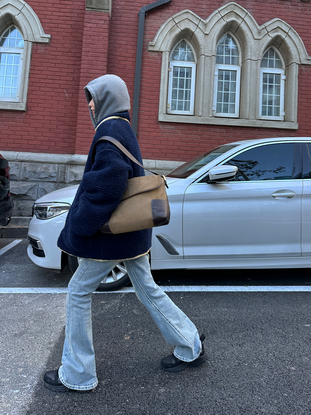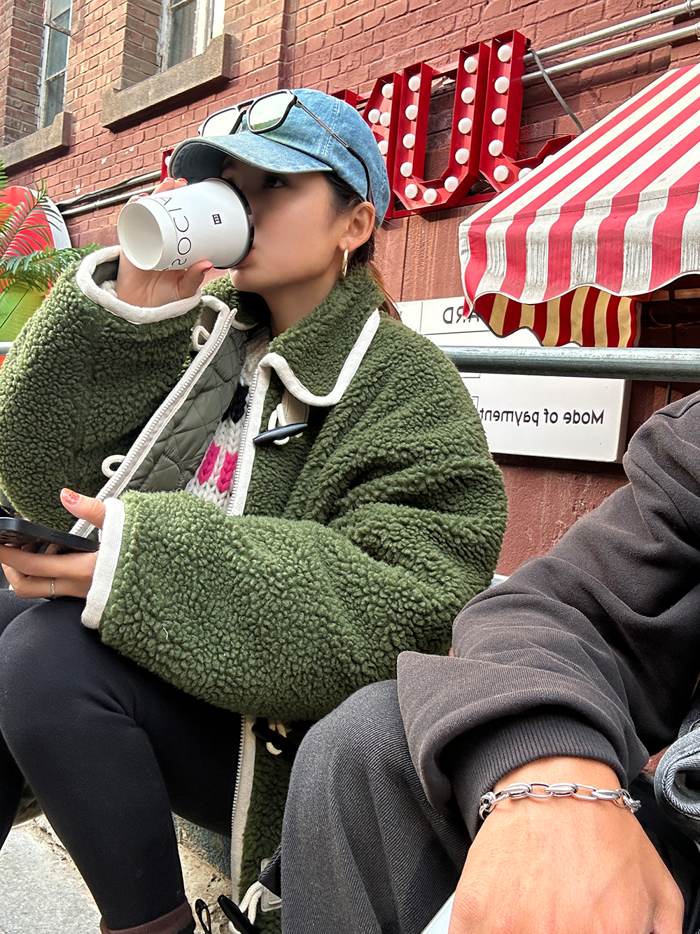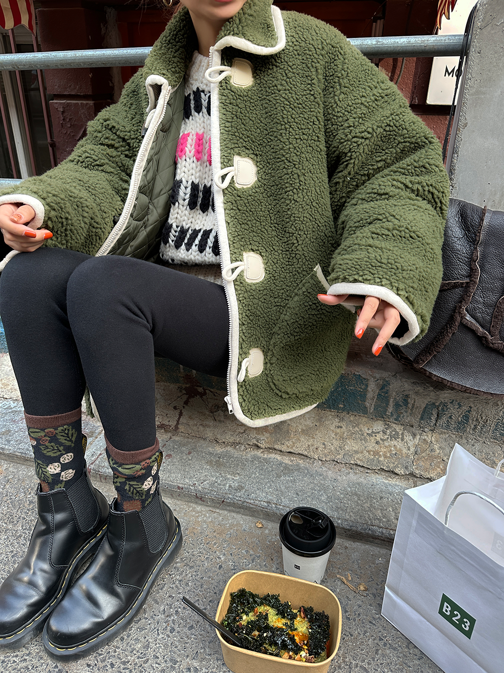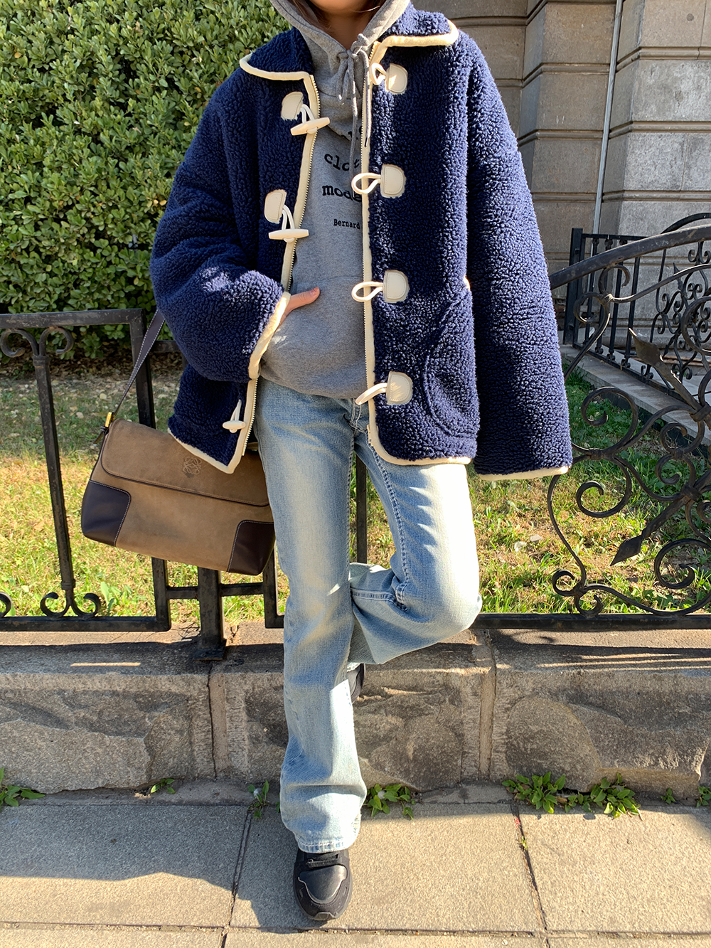 *o-ha-you*【FLCT1784】牛角扣羊羔毛夾棉外套2023新款冬季保暖加厚復古寬鬆棉衣棉服-2色-如有需要請先諮詢
