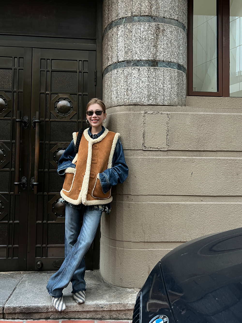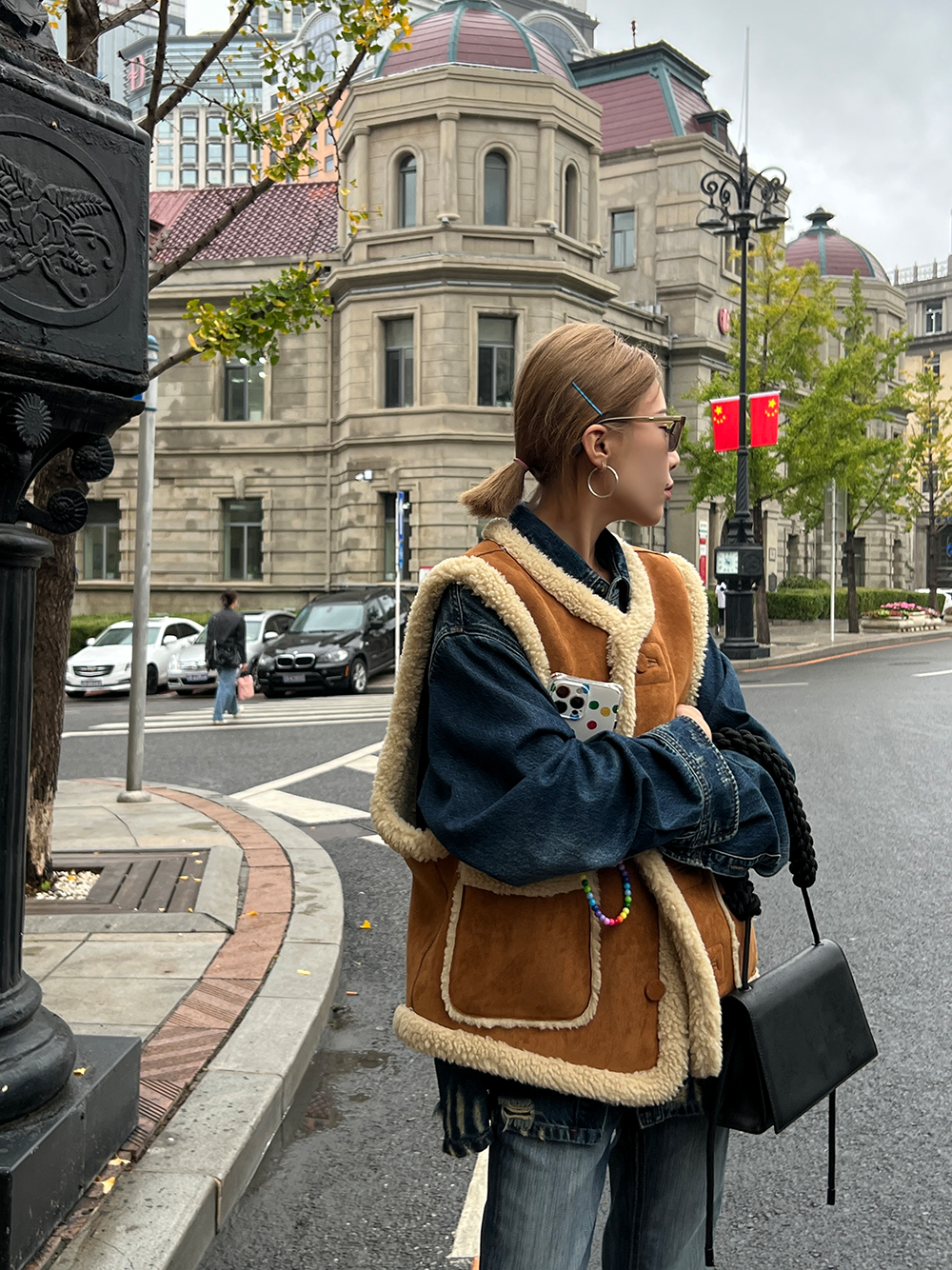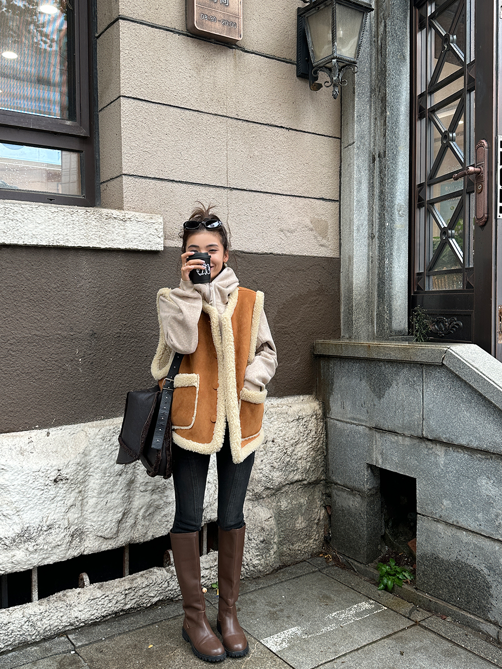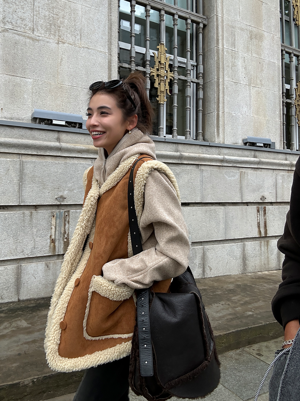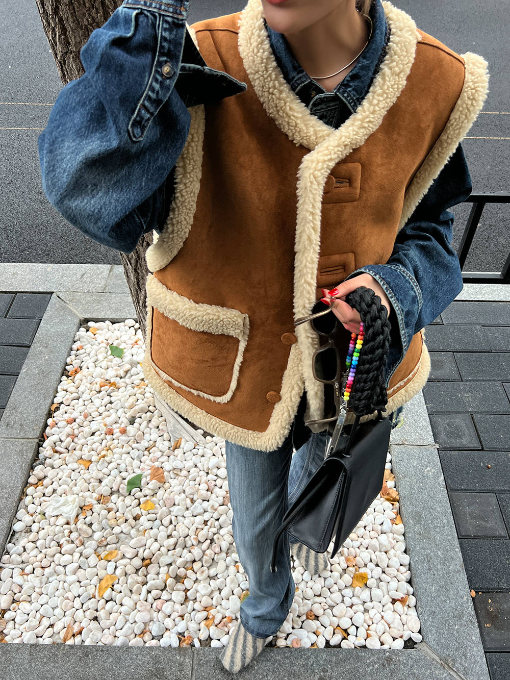 *o-ha-you*【FLCT1790】2023年新款秋冬款馬夾洋氣時髦羊羔毛外搭皮毛一體歐貨馬甲背心