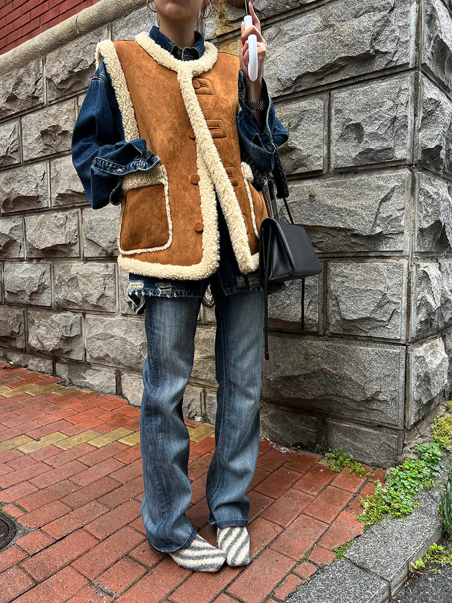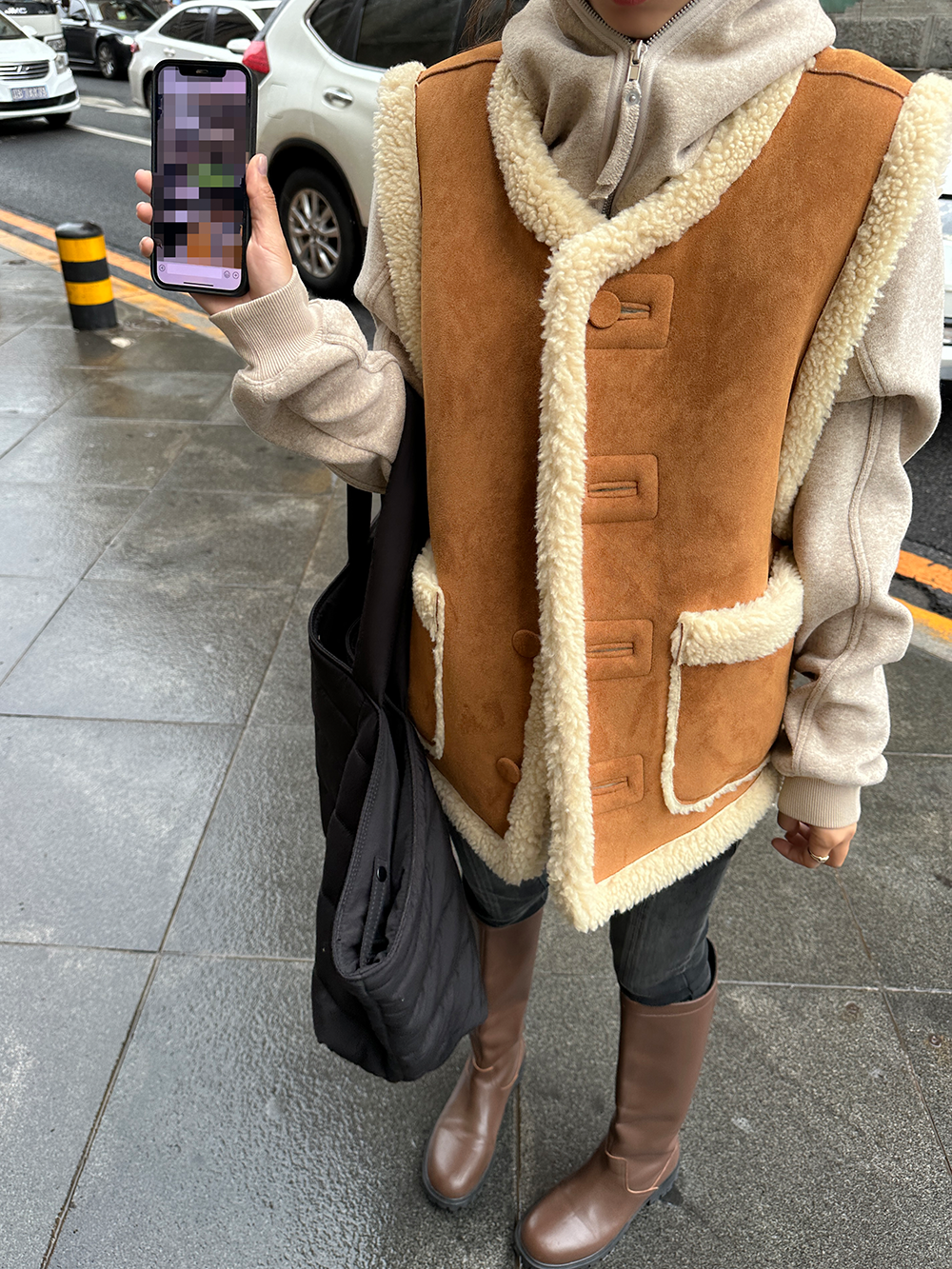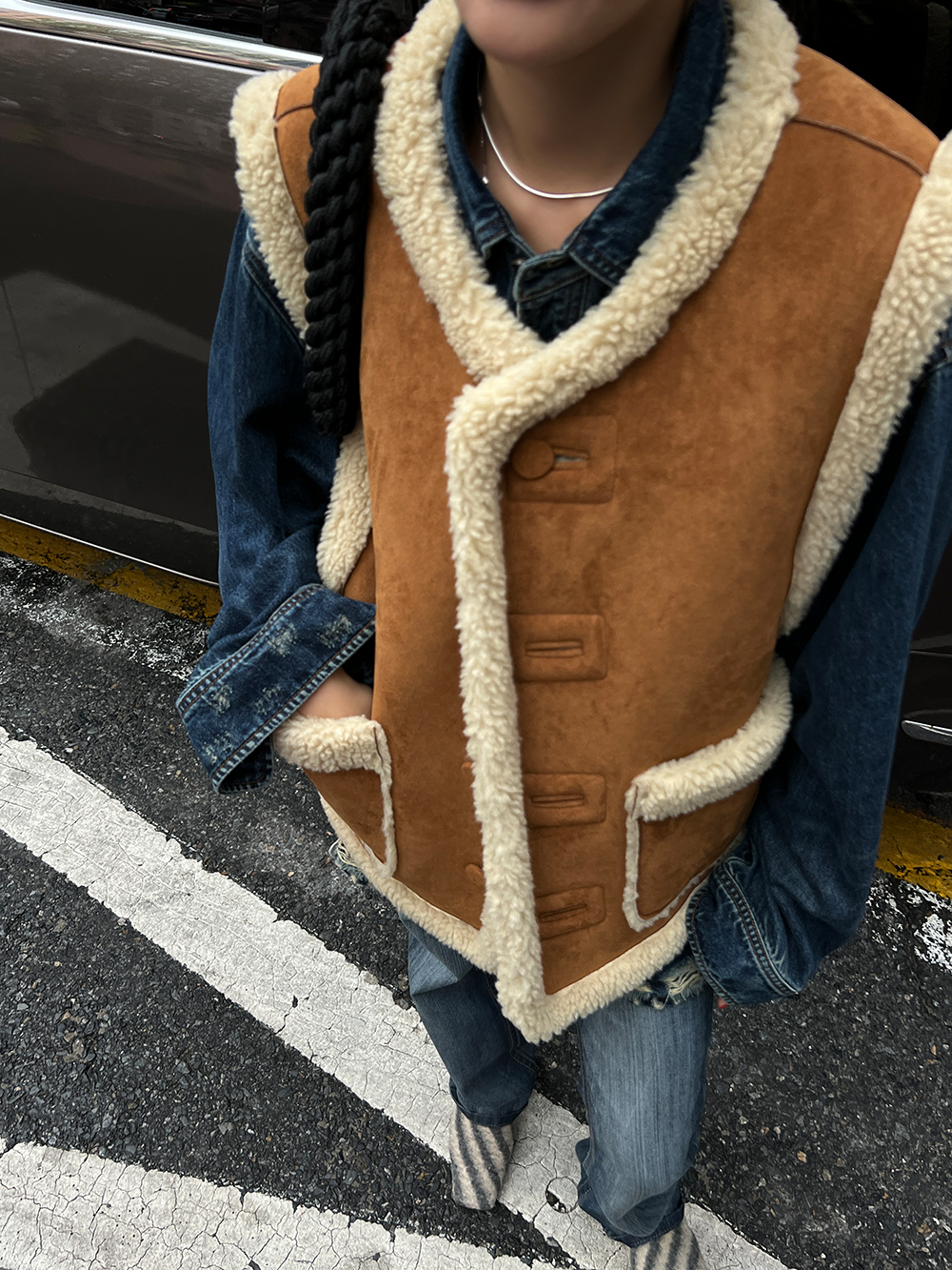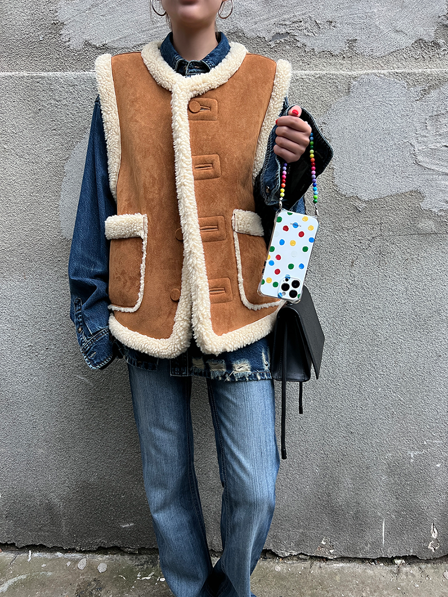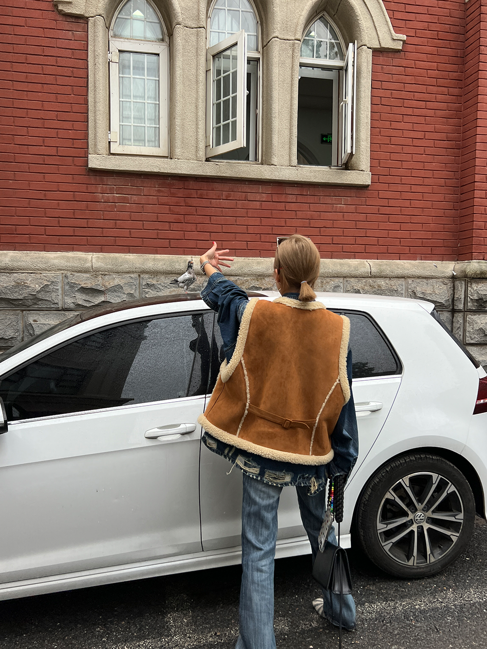 *o-ha-you*【FLCT1790】2023年新款秋冬款馬夾洋氣時髦羊羔毛外搭皮毛一體歐貨馬甲背心