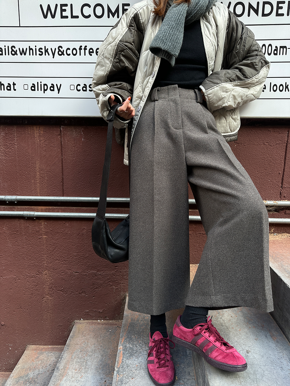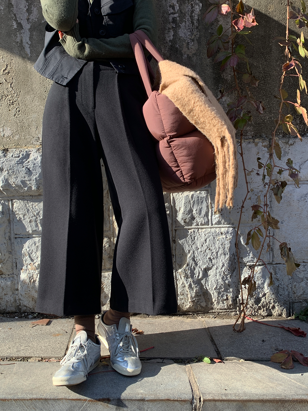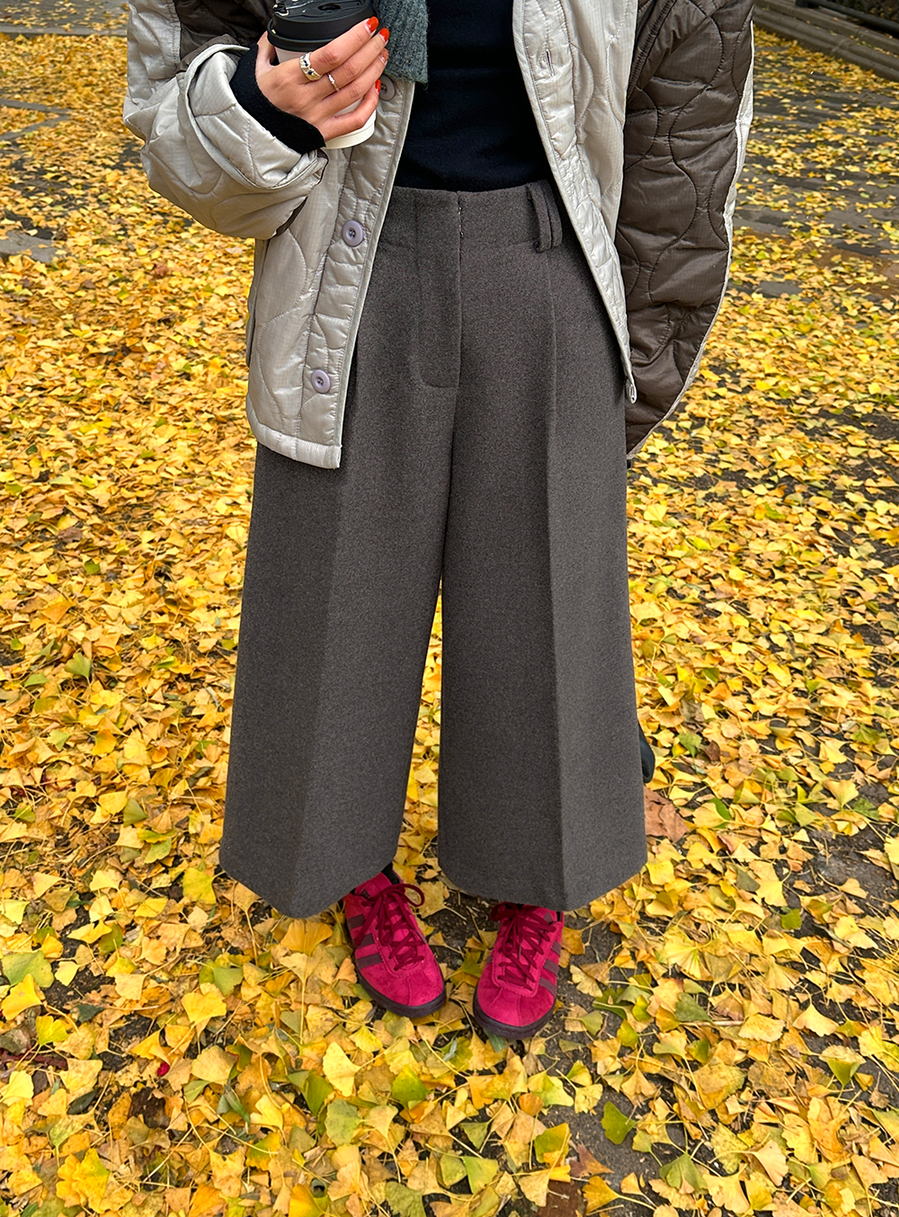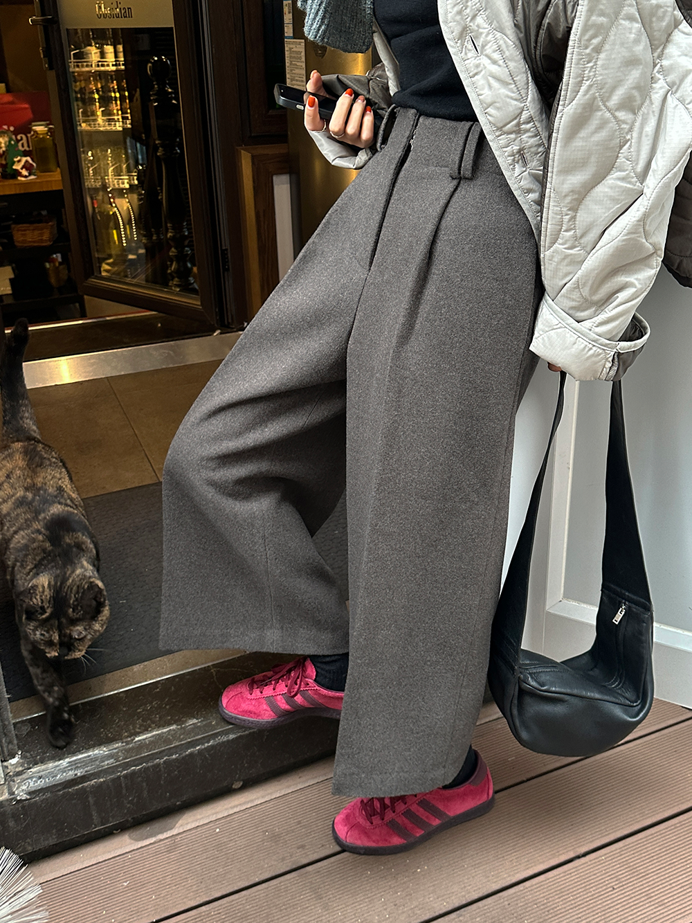 *o-ha-you*【FLCT1802】毛呢西裝褲冬季2023新款高腰顯瘦寬鬆直筒休閒褲時尚八分寬褲-2色-如有需要請先諮詢