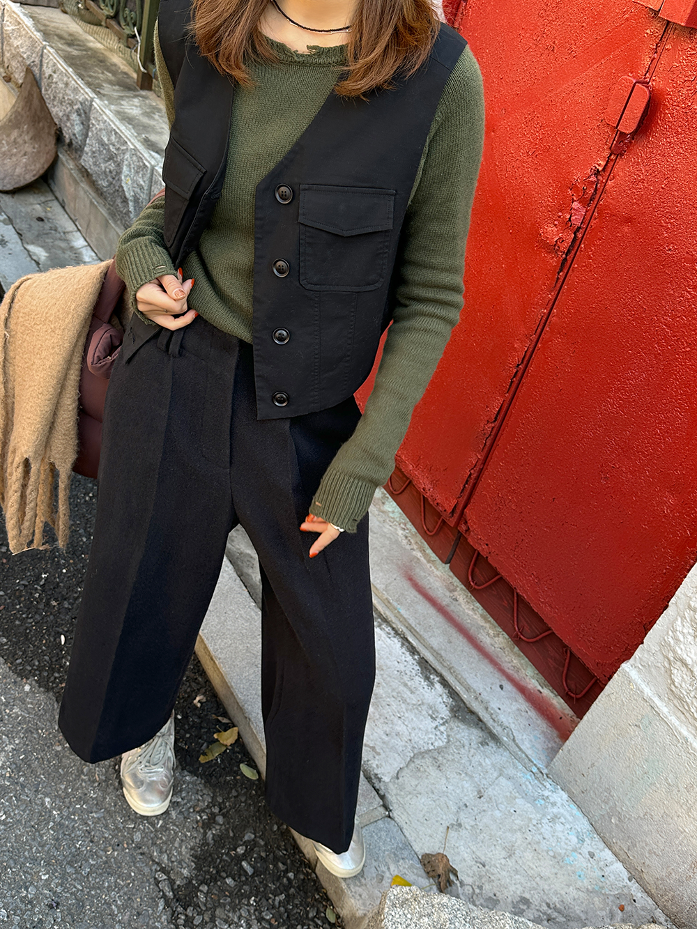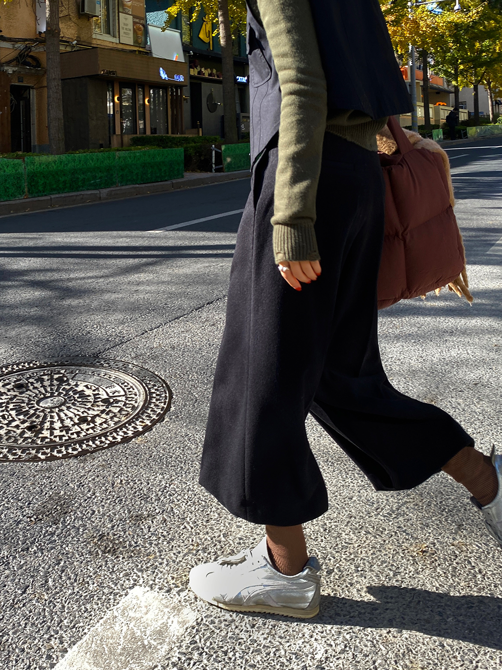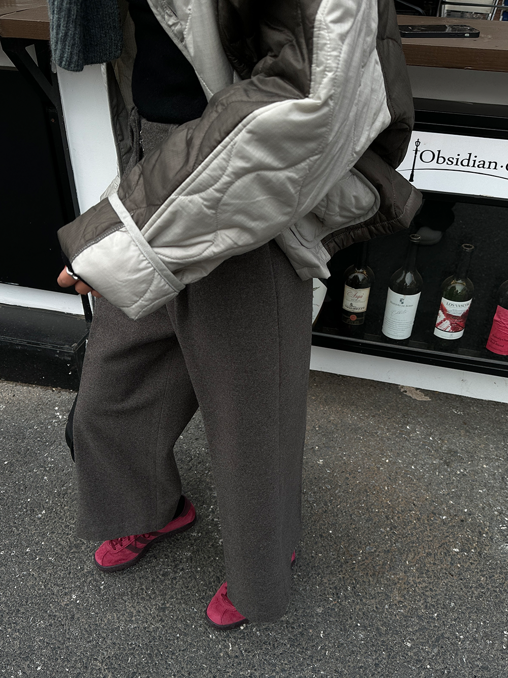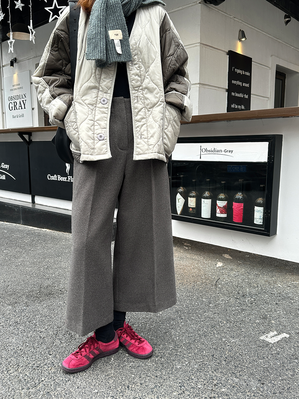 *o-ha-you*【FLCT1802】毛呢西裝褲冬季2023新款高腰顯瘦寬鬆直筒休閒褲時尚八分寬褲-2色-如有需要請先諮詢