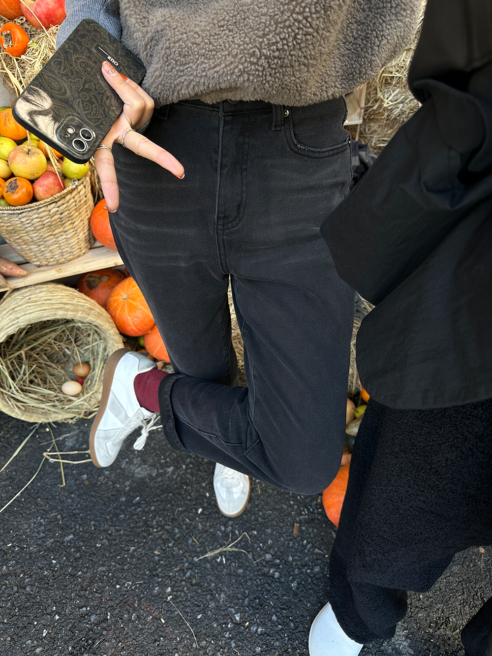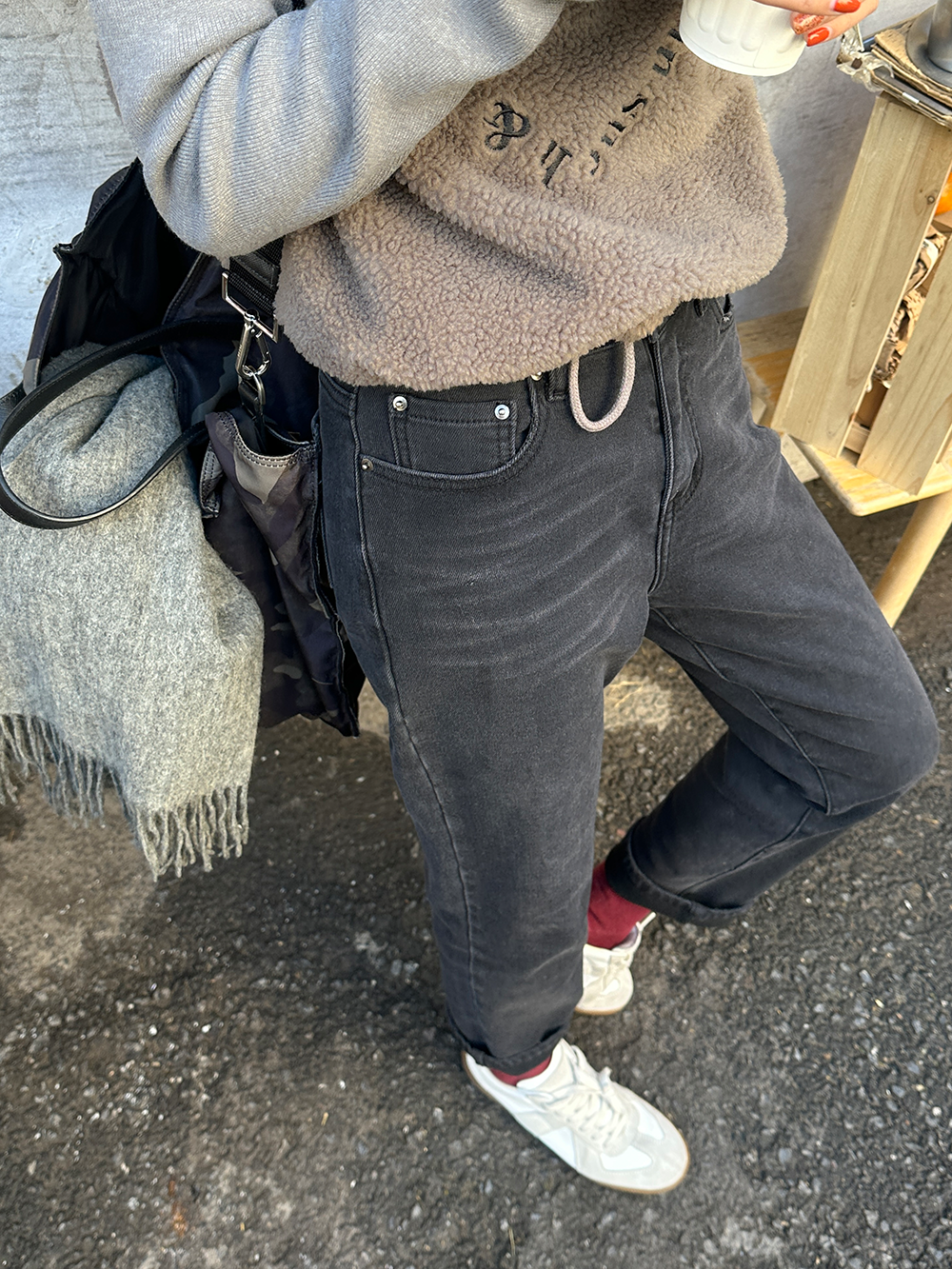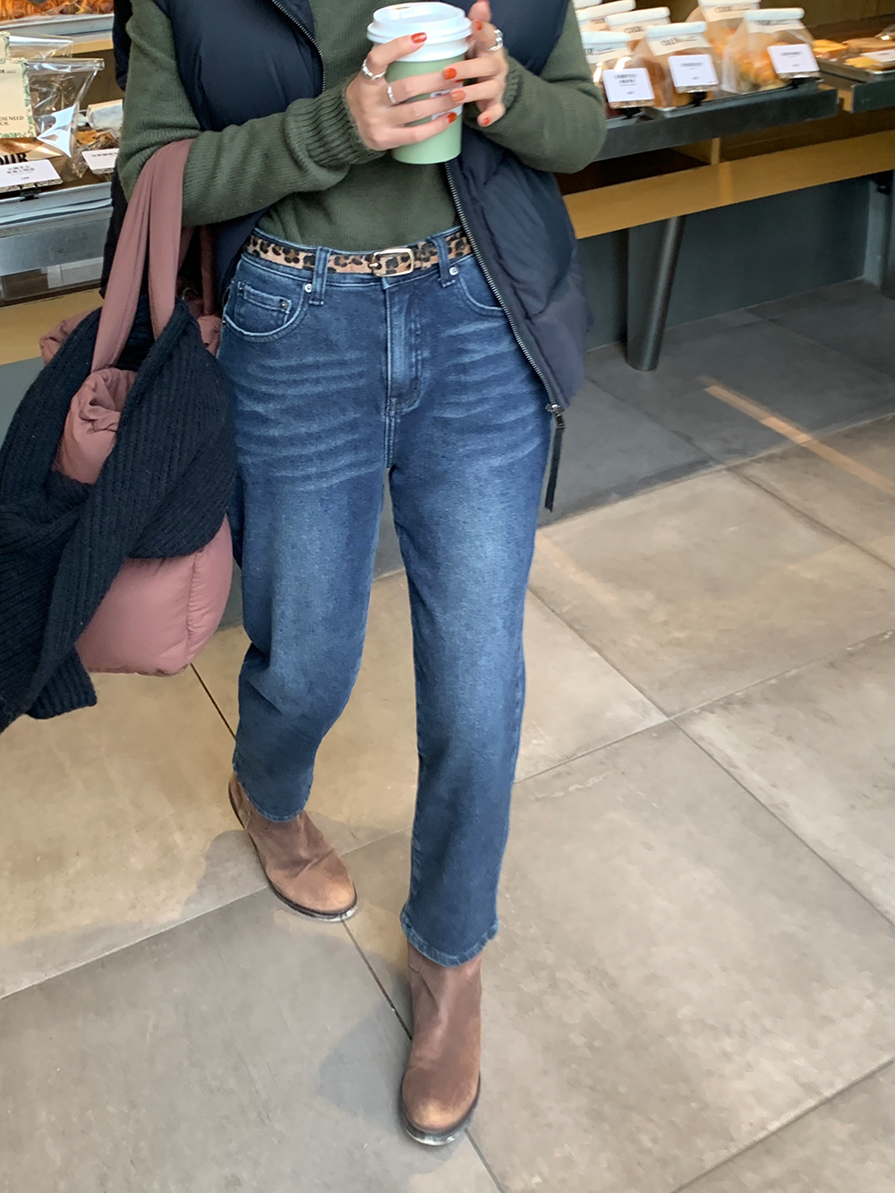 *o-ha-you*【FLCT1812】牛仔褲冬季2023新款復古時尚休閒九分褲高腰顯瘦薄絨窄版直筒褲-2色-如有需要請先諮詢