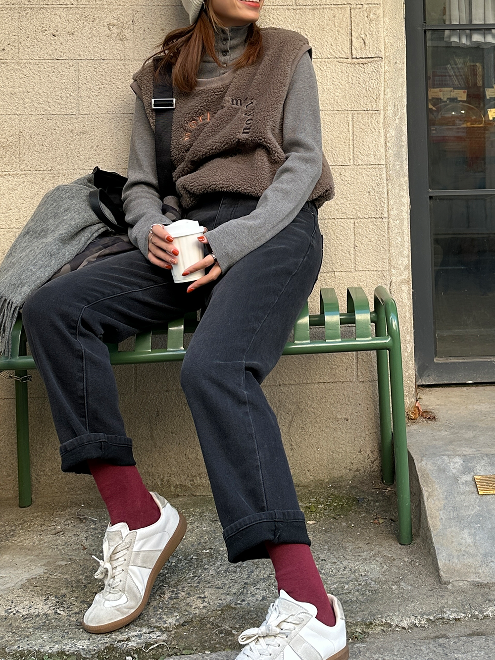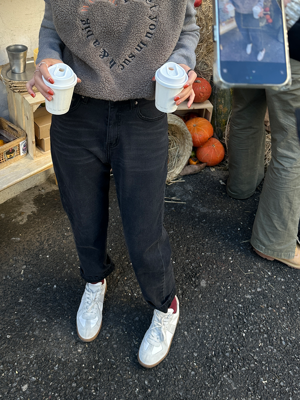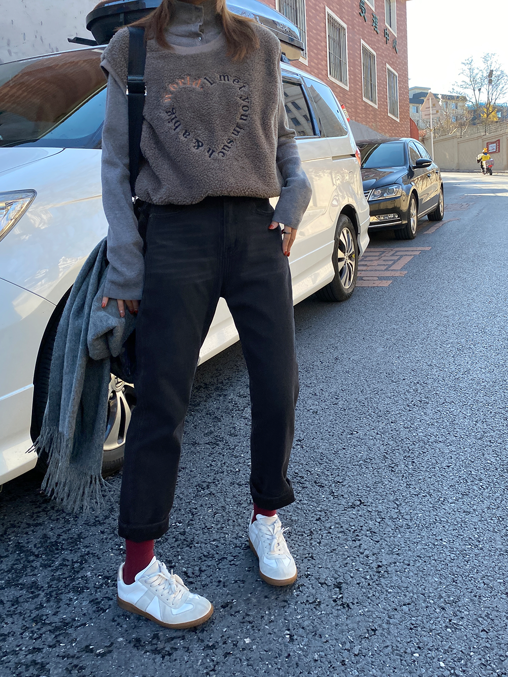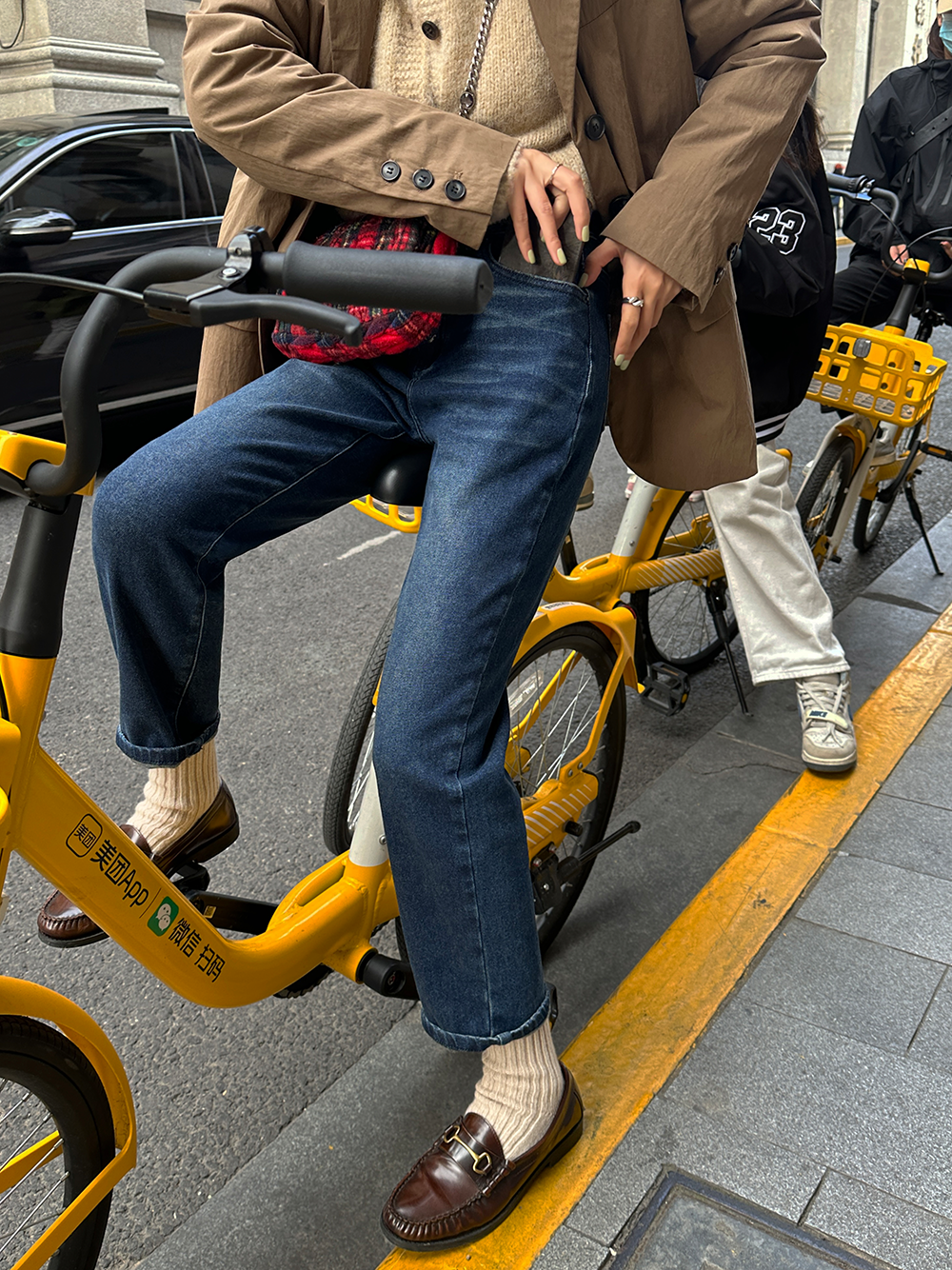 *o-ha-you*【FLCT1812】牛仔褲冬季2023新款復古時尚休閒九分褲高腰顯瘦薄絨窄版直筒褲-2色-如有需要請先諮詢