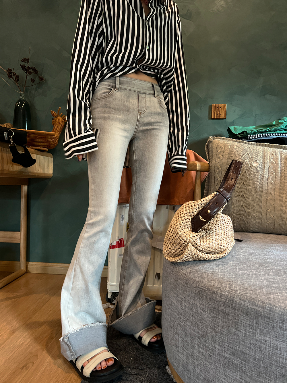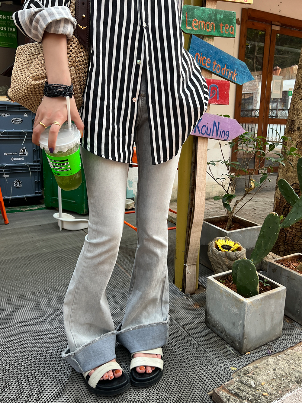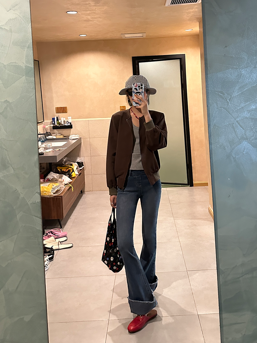 *o-ha-you*【FLCT1917】復古微喇牛仔褲2024年新款春季拖地褲子春秋款緊身顯瘦喇叭褲-2色-藍色L有現貨