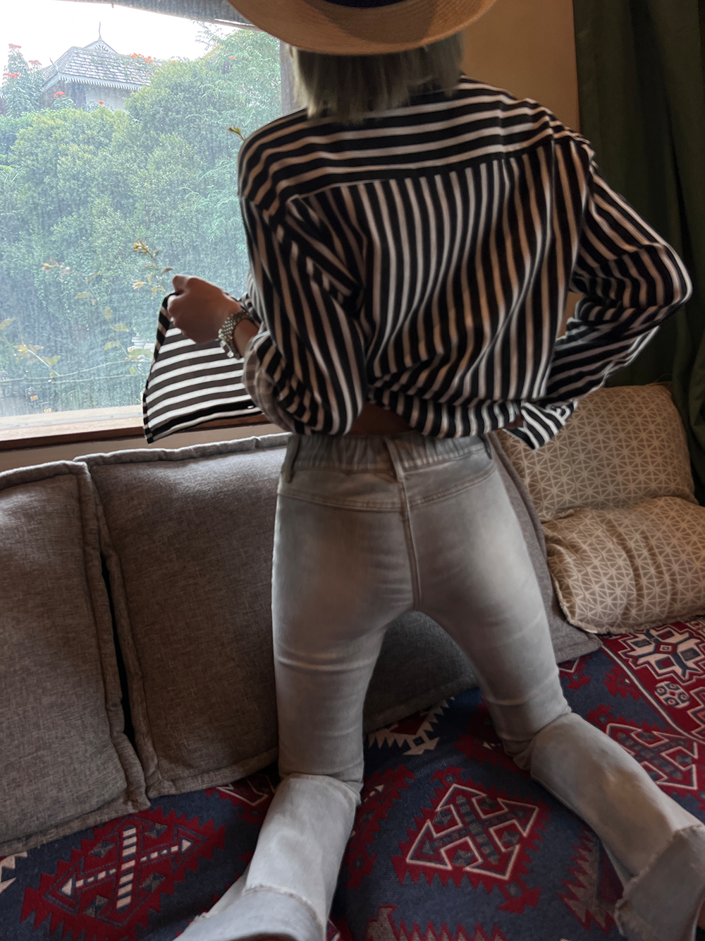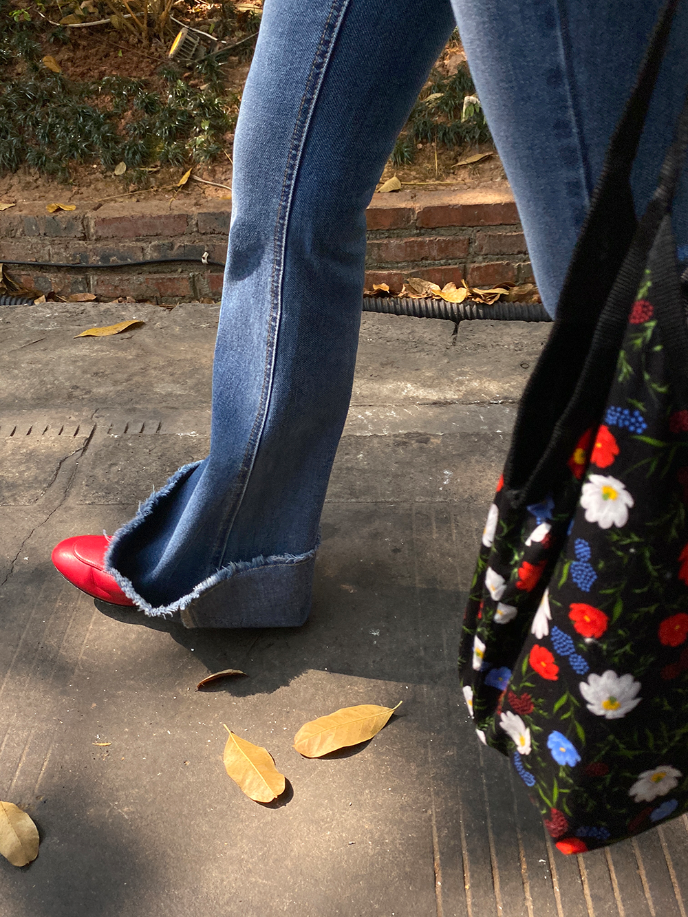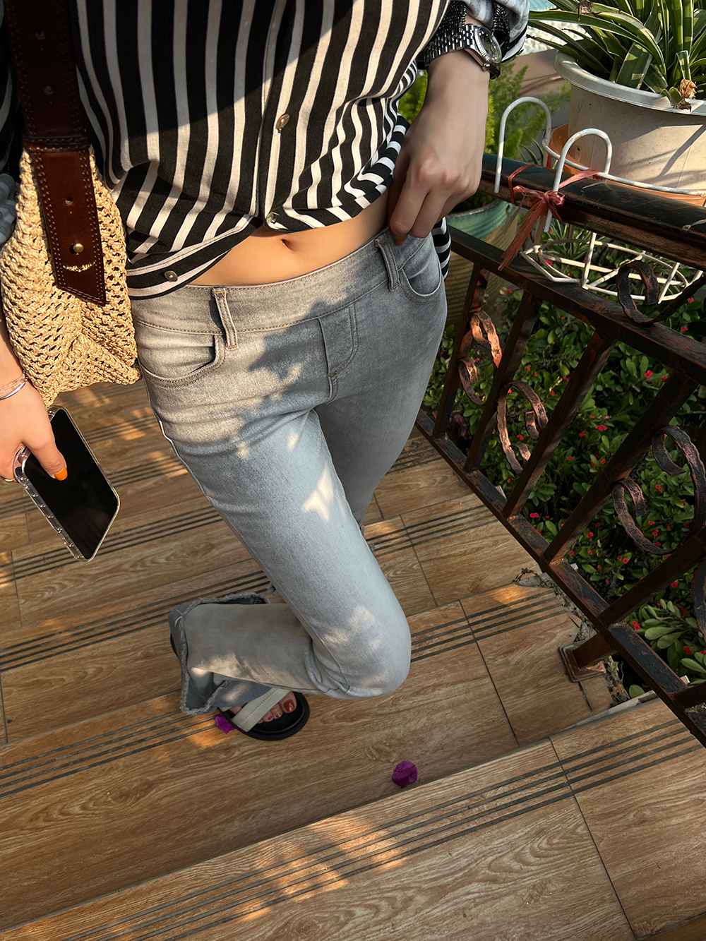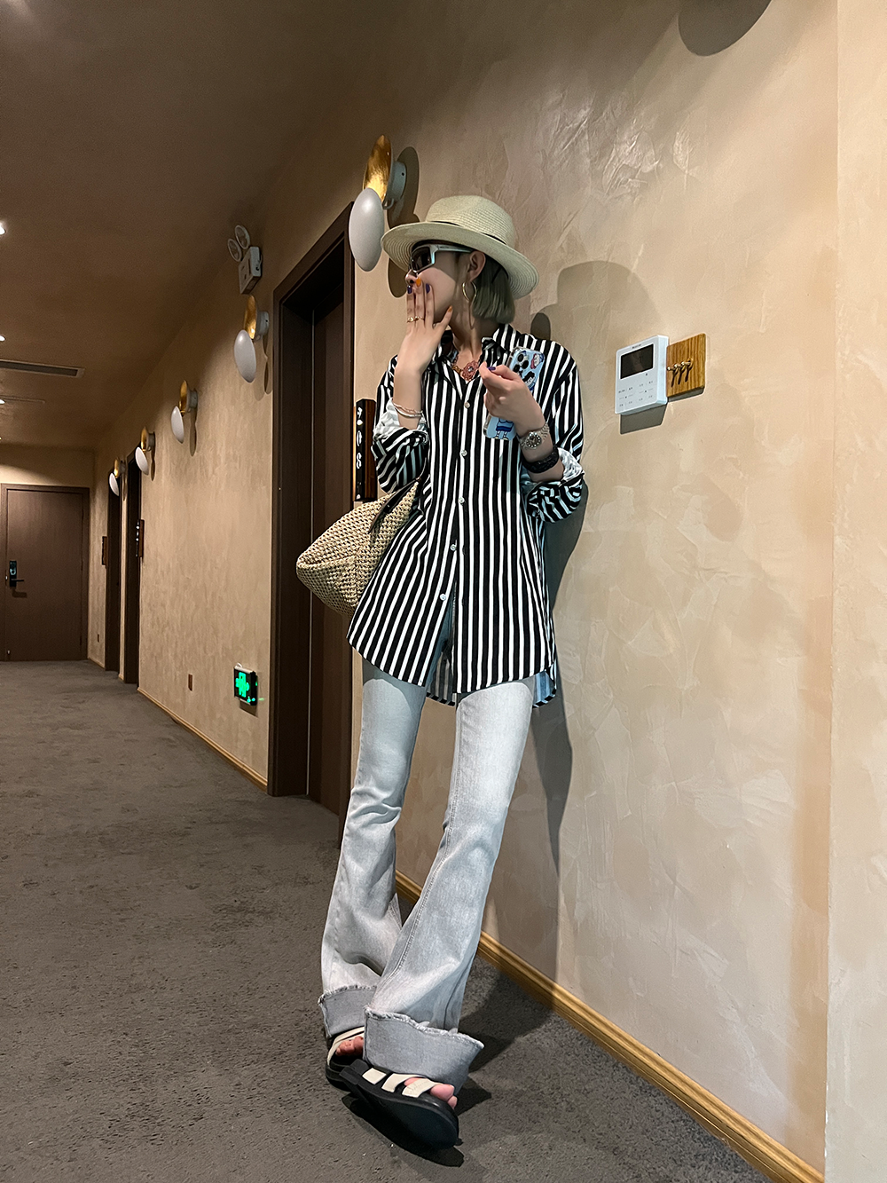 *o-ha-you*【FLCT1917】復古微喇牛仔褲2024年新款春季拖地褲子春秋款緊身顯瘦喇叭褲-2色-藍色L有現貨