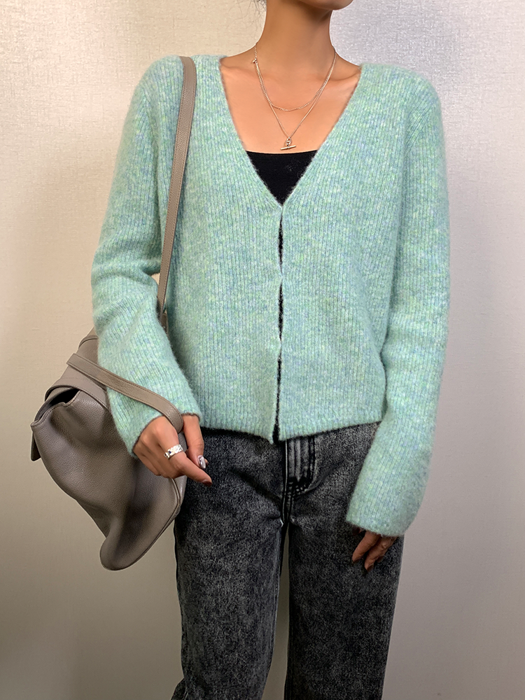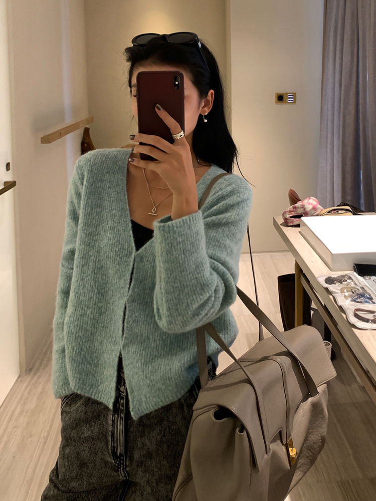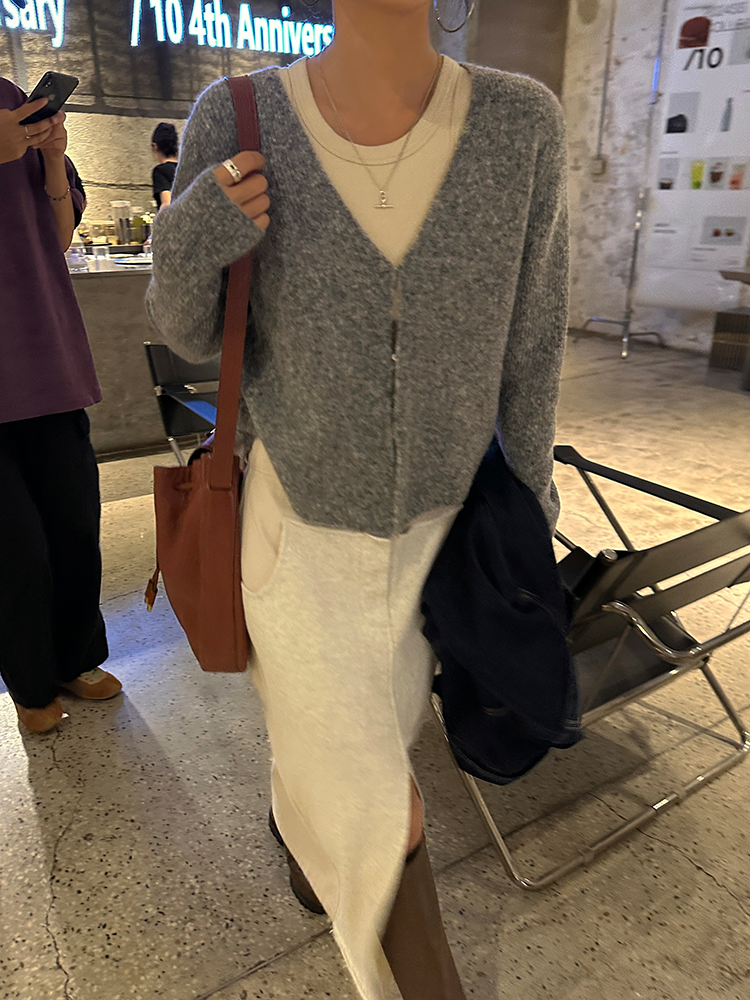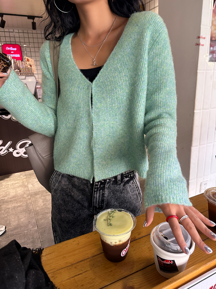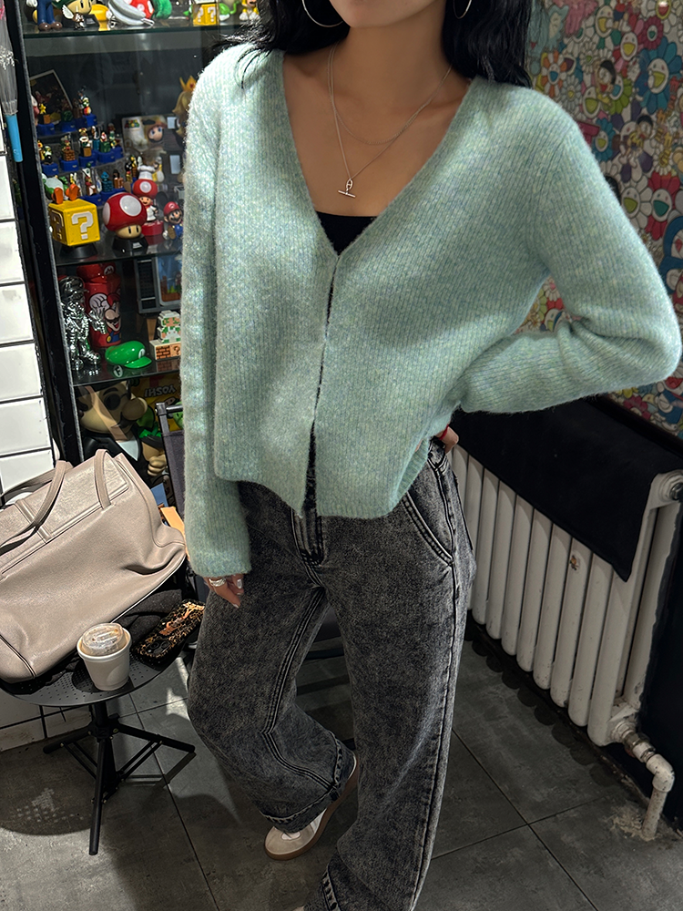 *o-ha-you*【FLCT2256】針織衫2024新款春秋款短版上衣早秋慵懶風V領長袖毛衣開襟外套-2色-如有需要請先諮詢