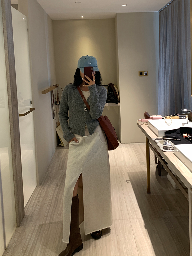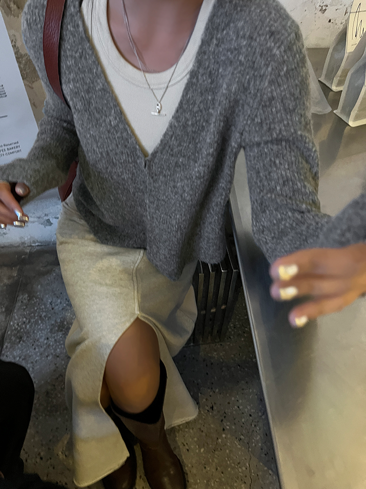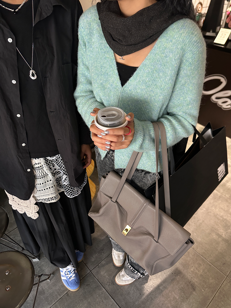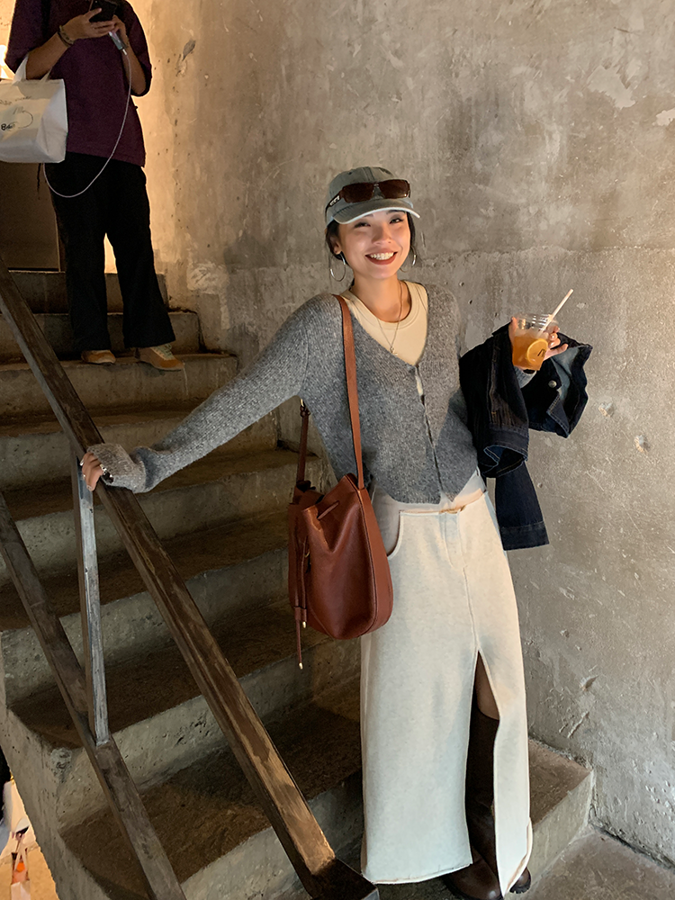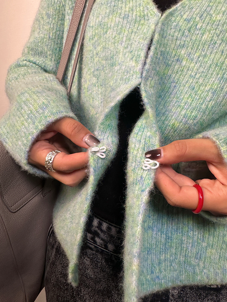 *o-ha-you*【FLCT2256】針織衫2024新款春秋款短版上衣早秋慵懶風V領長袖毛衣開襟外套-2色-如有需要請先諮詢