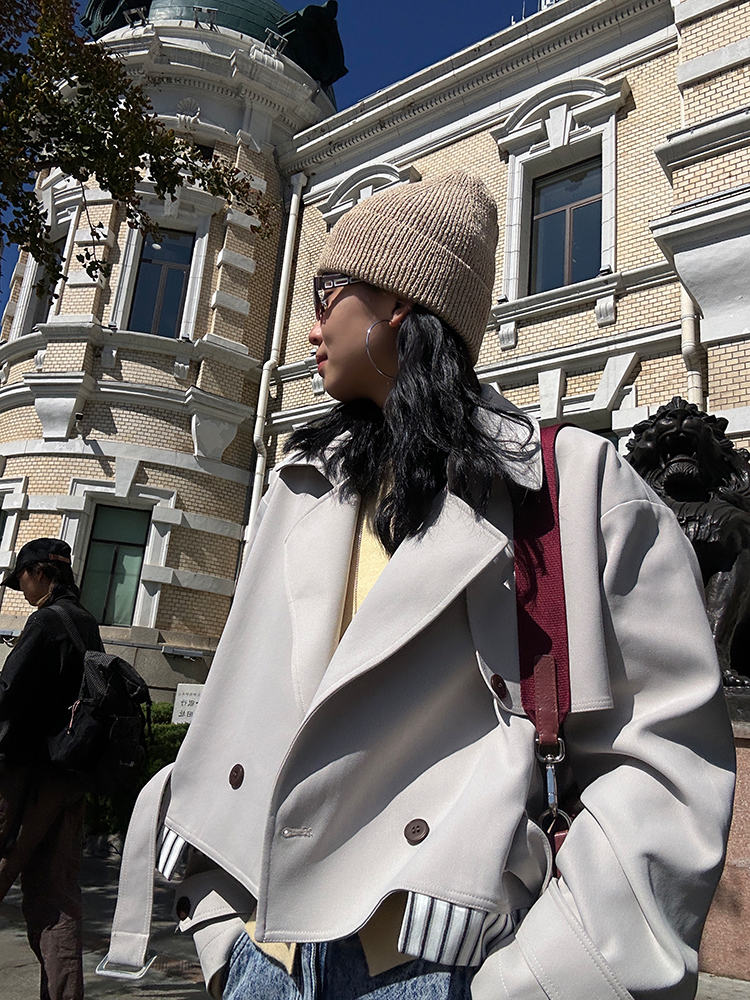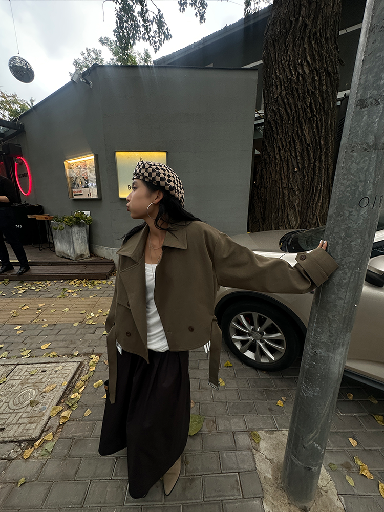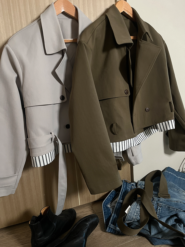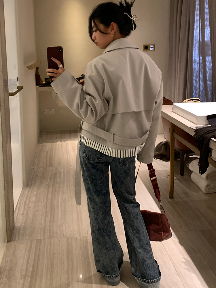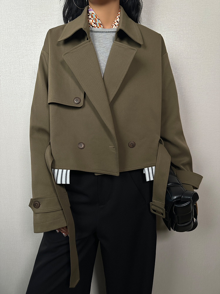 *o-ha-you*【FLCT2263】風衣女款2024年新款春秋寬鬆休閒氣質小個子短款早秋時尚英倫風外套-2色