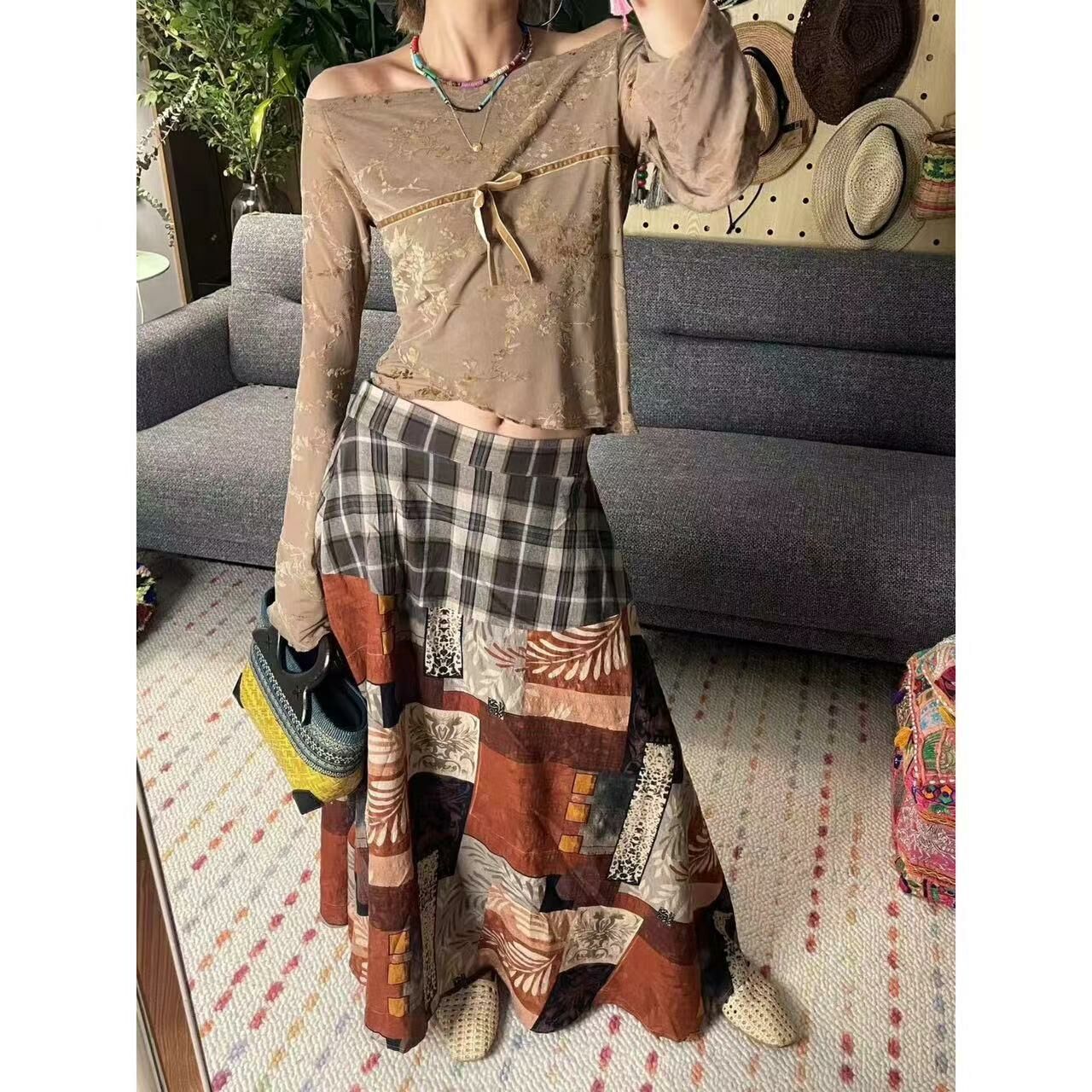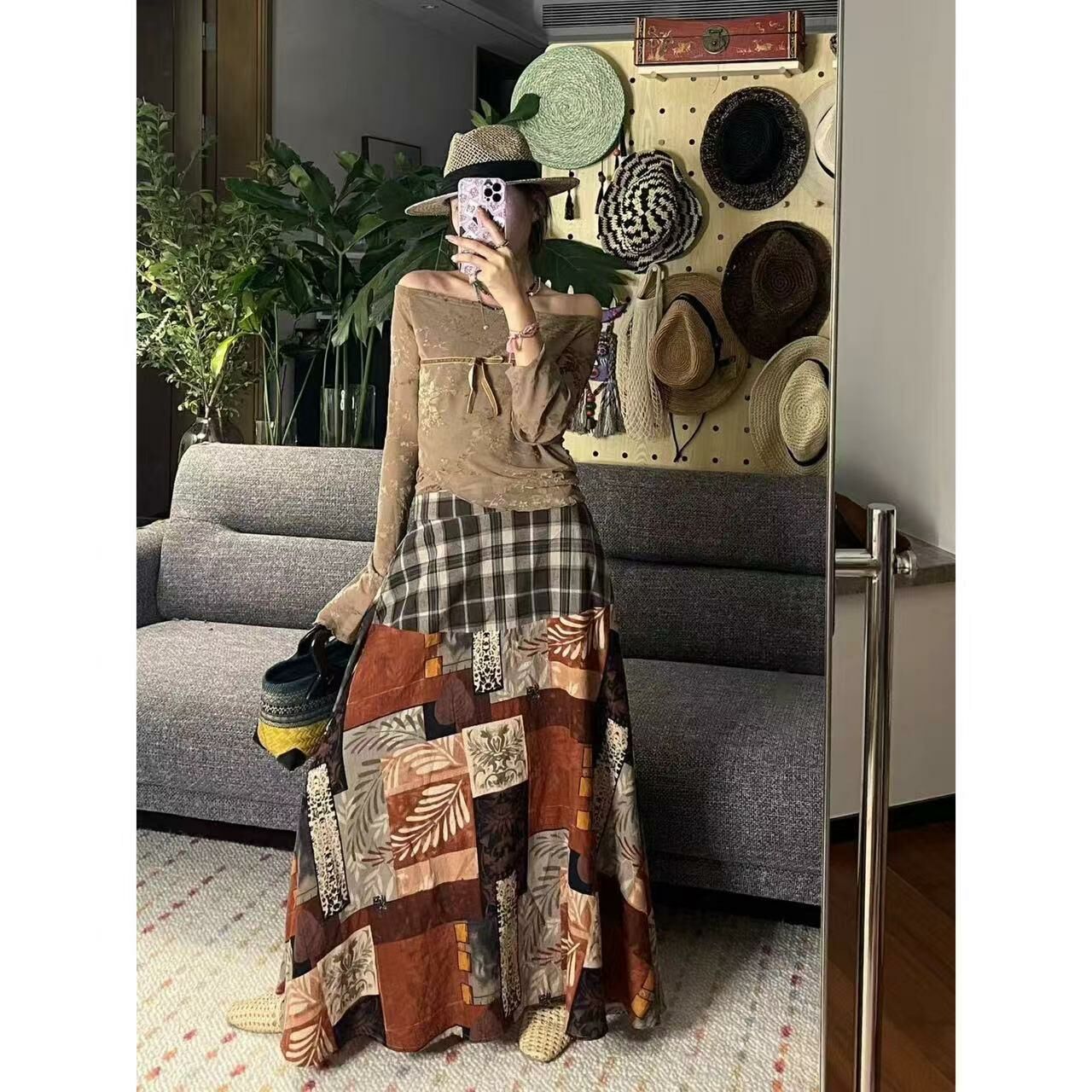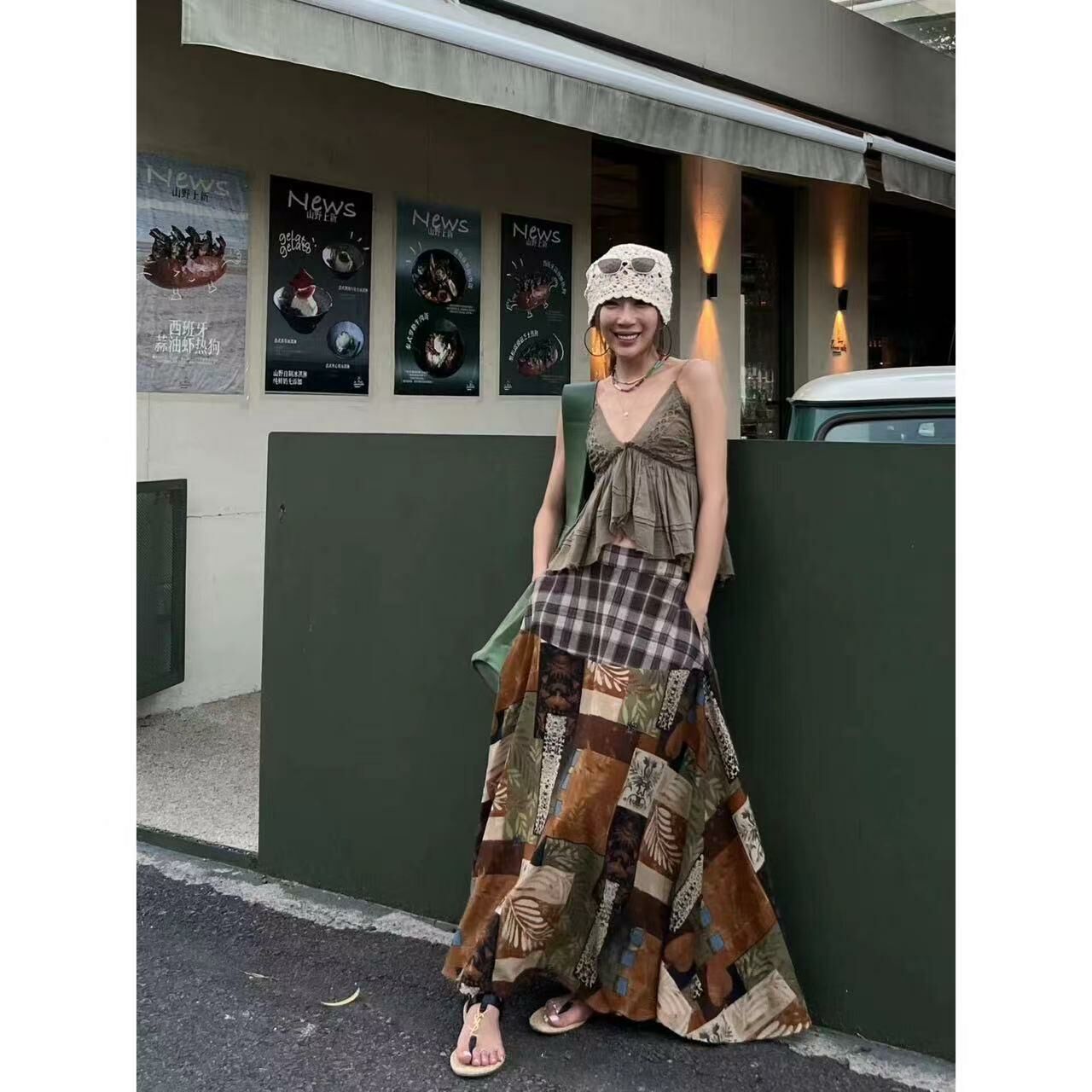 *o-ha-you*【FLCT2281】絕版><隱藏款帶點異域風情!不需要搭配可以​​直接出門的格子拼接半裙-2色-隱藏限量款~下單後盡力搶~搶不到別怪我如有需要請先諮詢