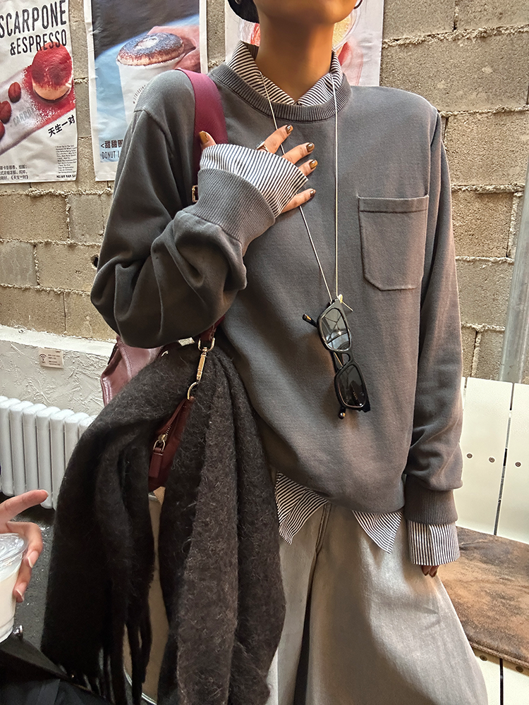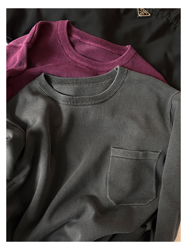 *o-ha-you*【FLCT2299】復古圓領套頭毛衣秋冬2024新款寬鬆慵懶風初冬長袖水洗針織衫-2色-如有需要請先諮詢