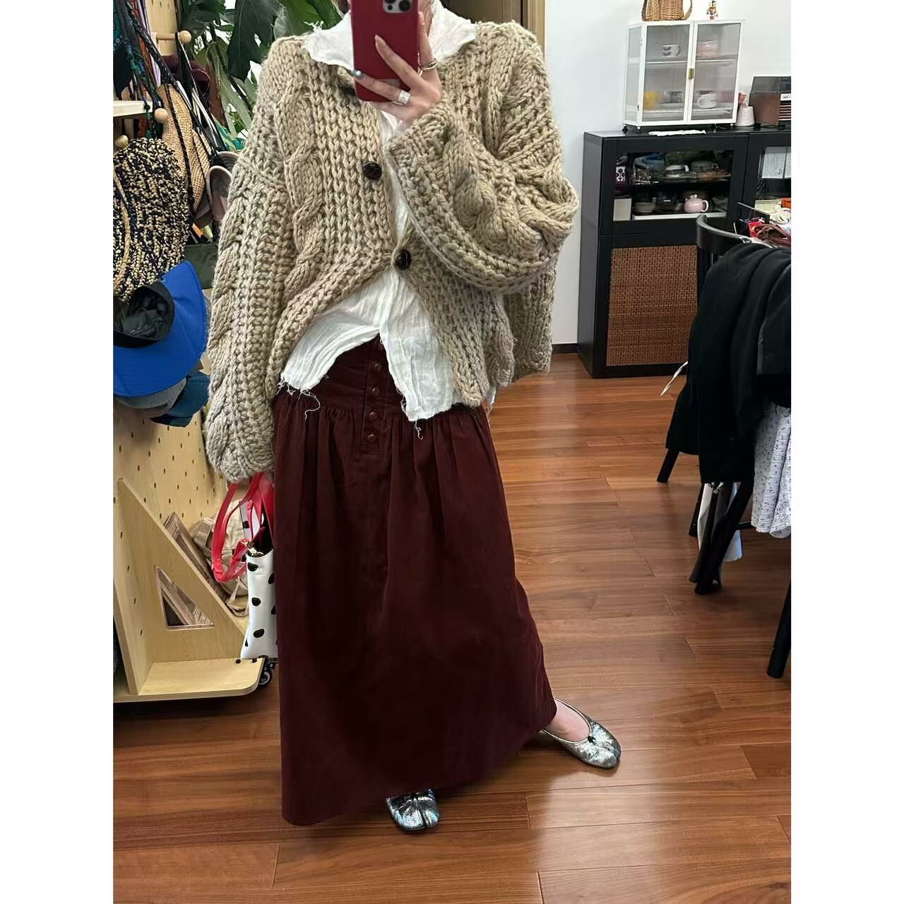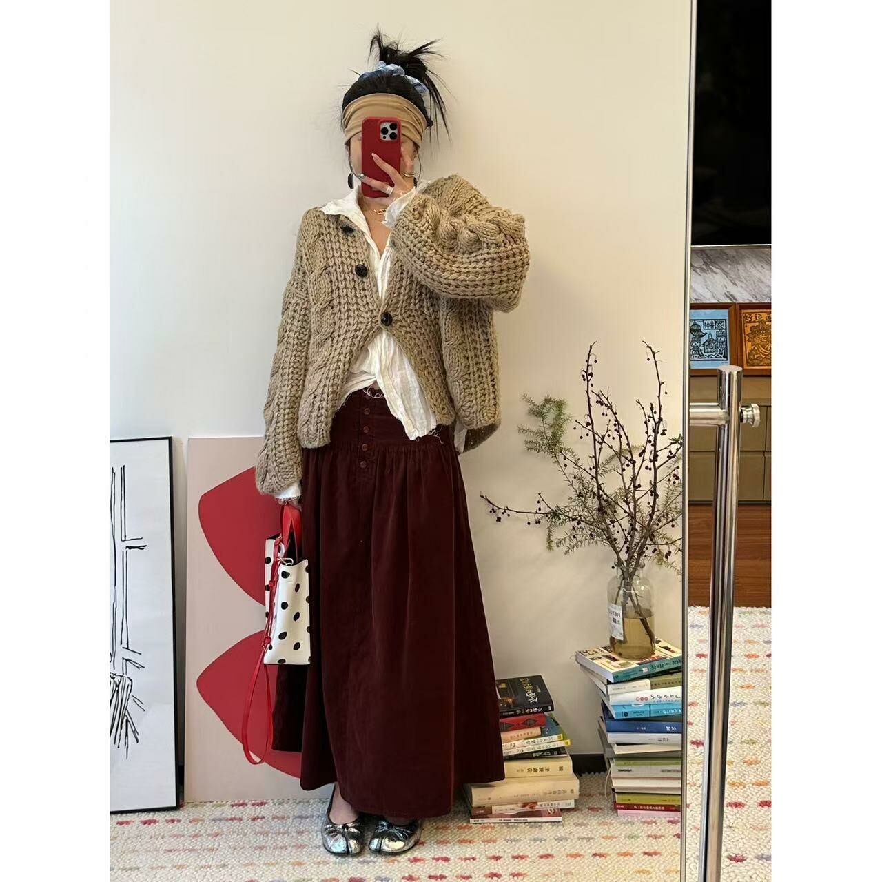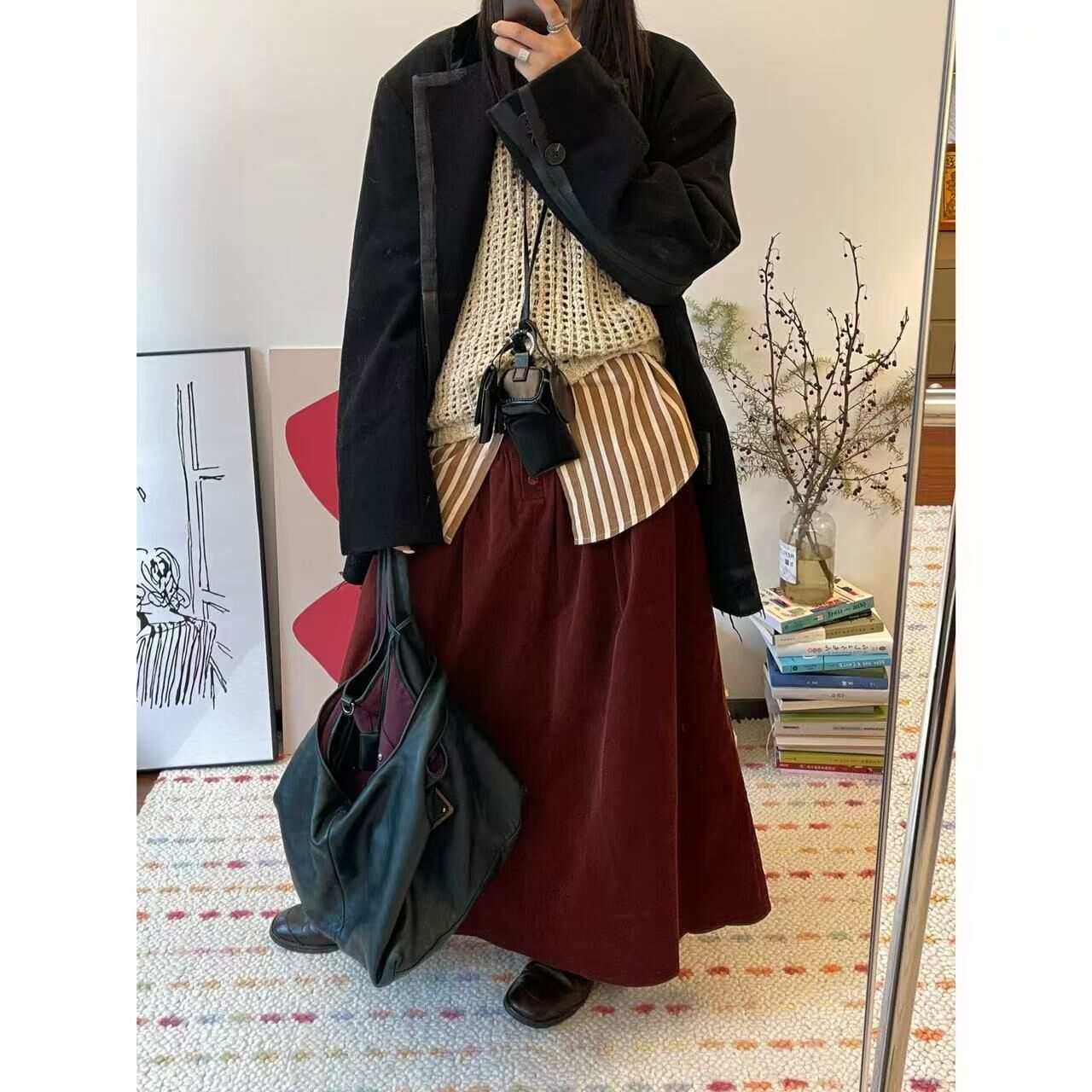 *o-ha-you*【FLCT2341】絕版><秋冬氣氛感少不了小裙裙!極細燈芯絨拼接A字裙-2色-隱藏限量款~下單後盡力搶~搶不到別怪我