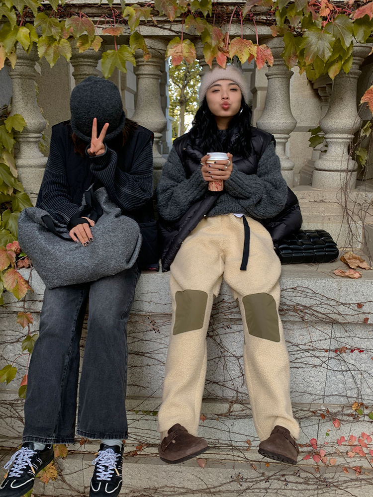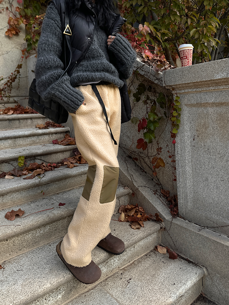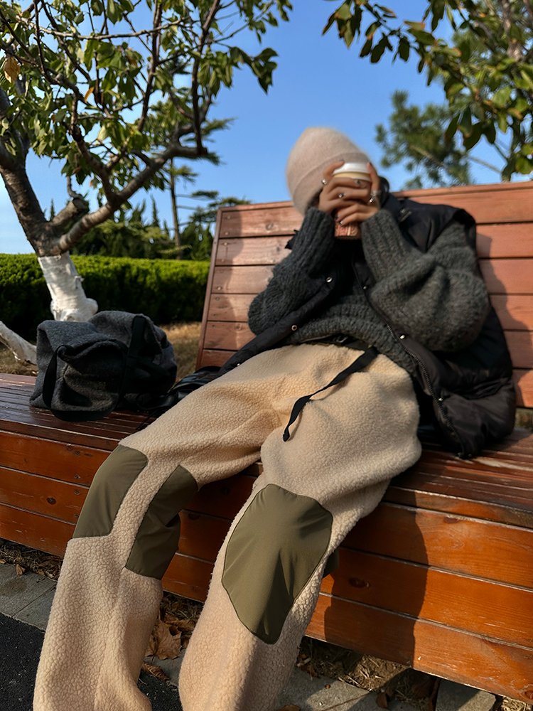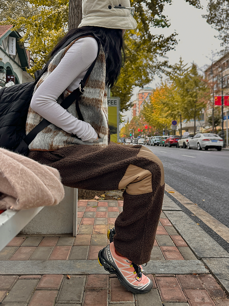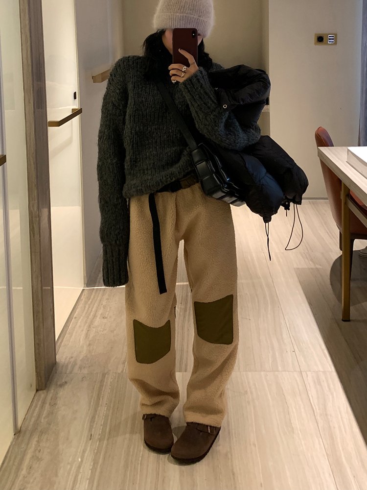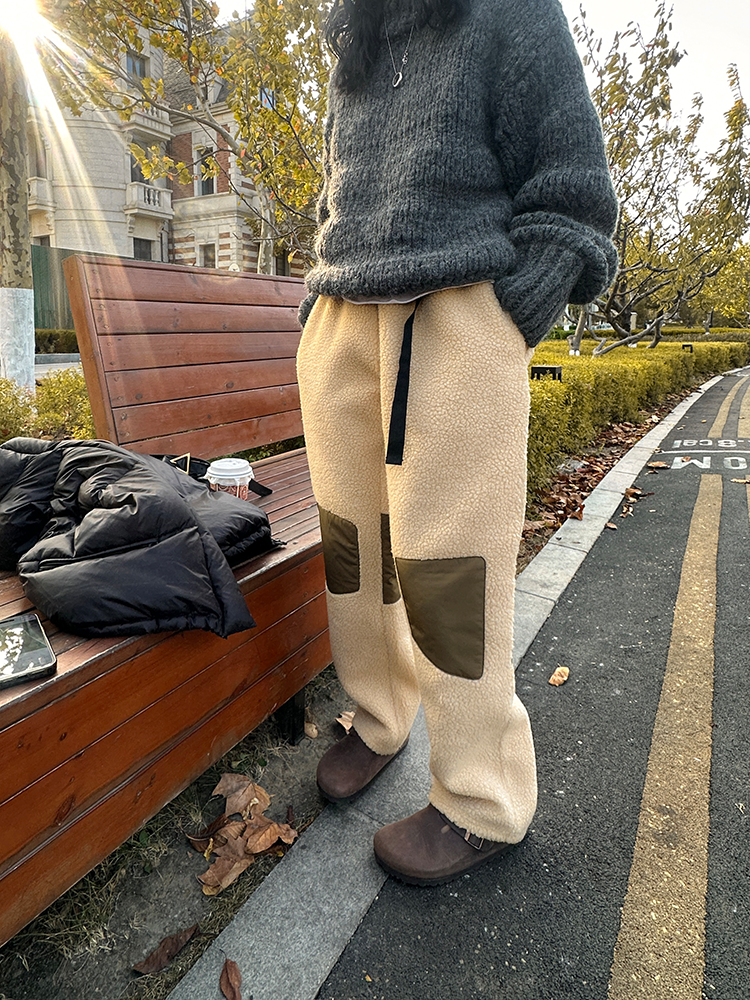*o-ha-you*【FLCT2344】羊羔毛休閒褲2024新款冬季保暖加厚衛褲直筒褲顯瘦戶外運動褲-2色