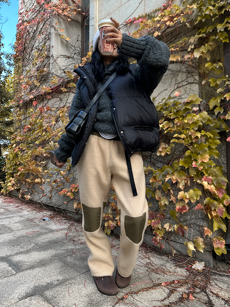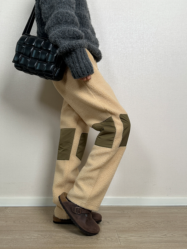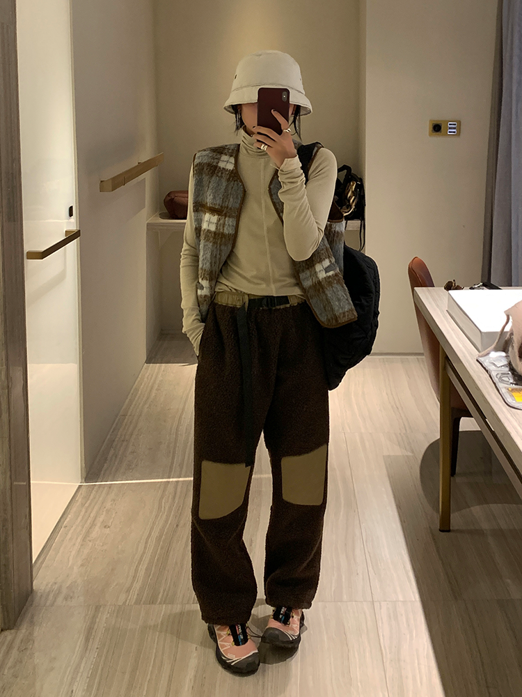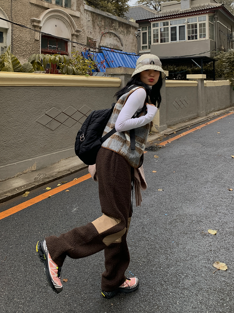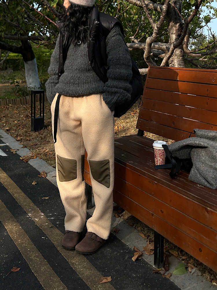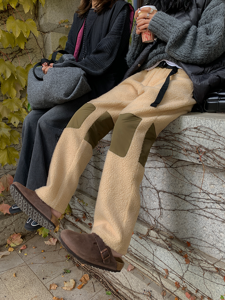 *o-ha-you*【FLCT2344】羊羔毛休閒褲2024新款冬季保暖加厚衛褲直筒褲顯瘦戶外運動褲-2色