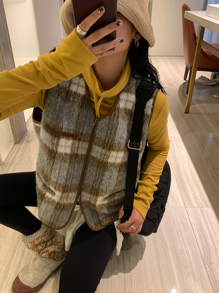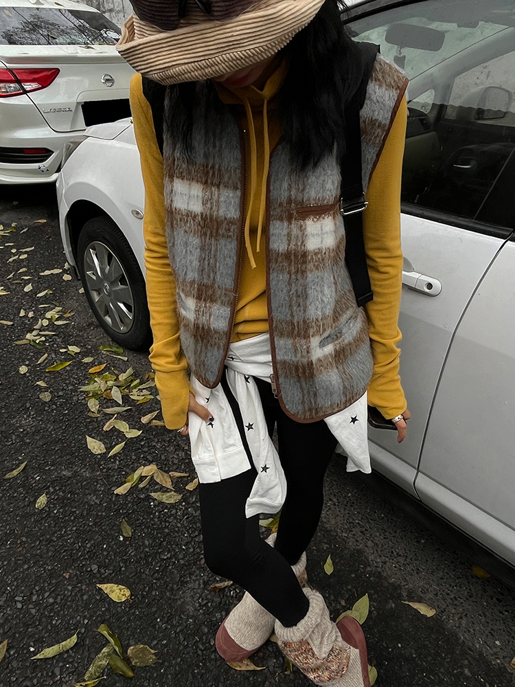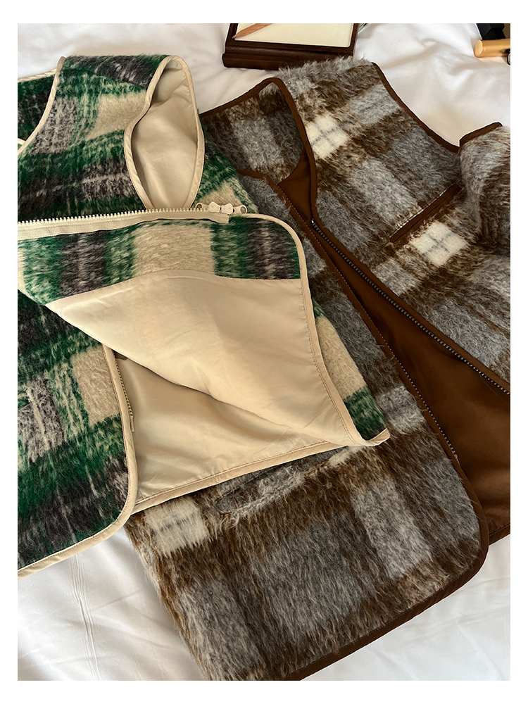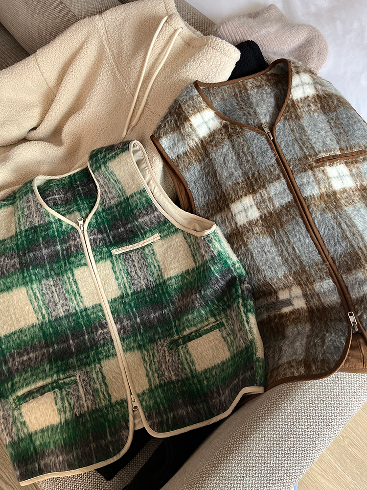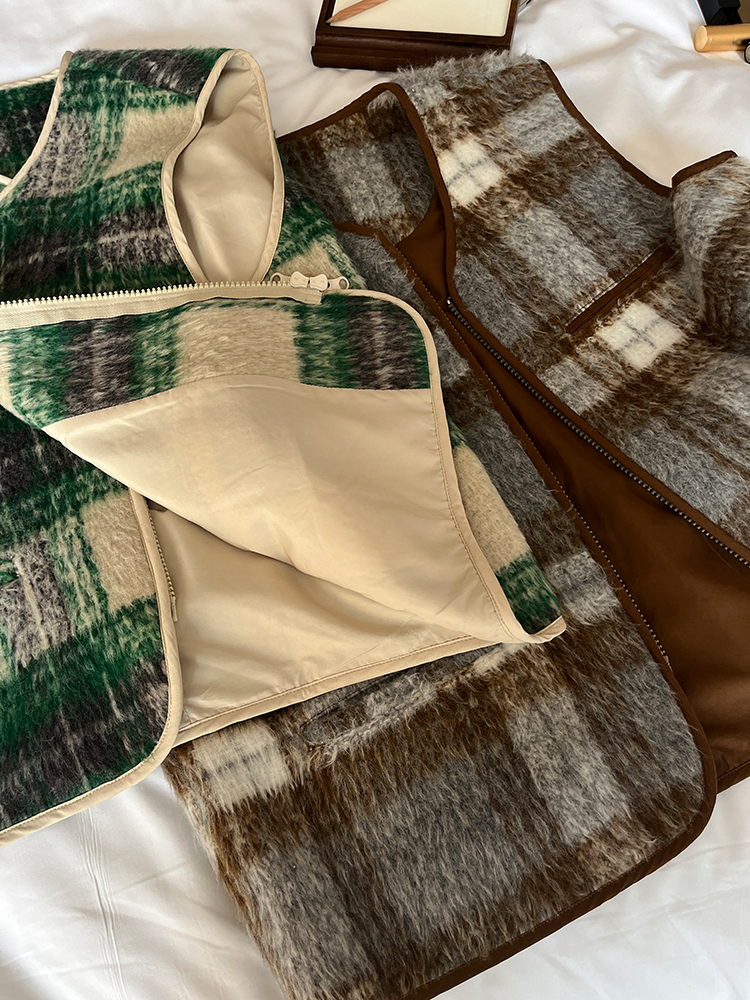 *o-ha-you*【FLCT2345】復古格紋毛呢馬甲2024秋冬新款外穿時尚疊穿呢子坎肩背心馬夾-2色-如有需要請先諮詢