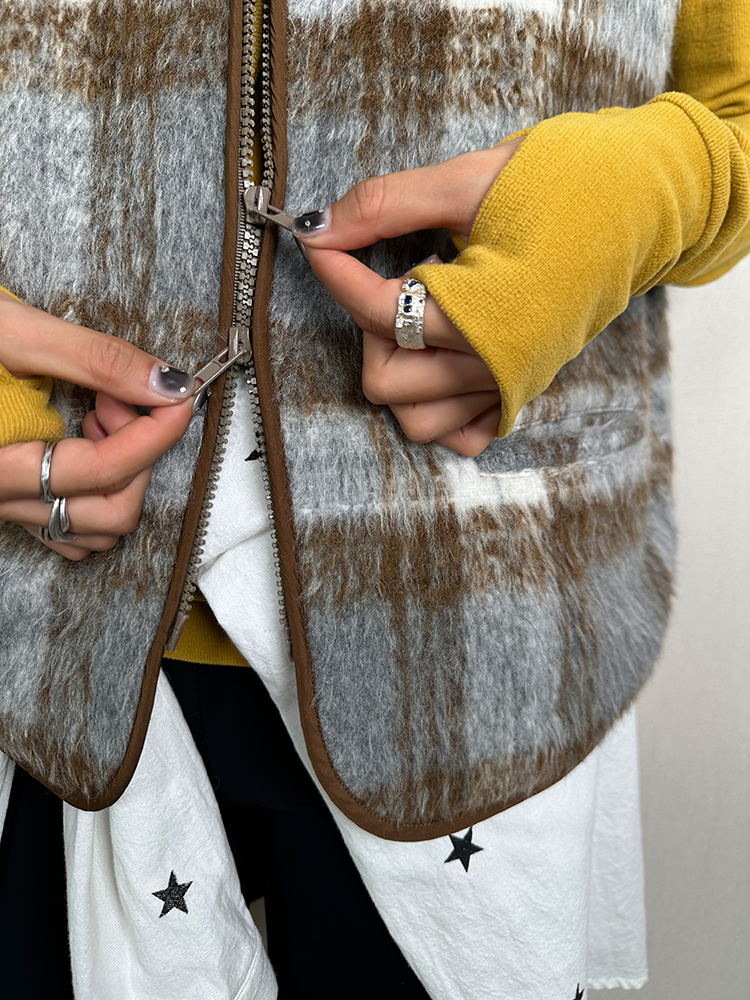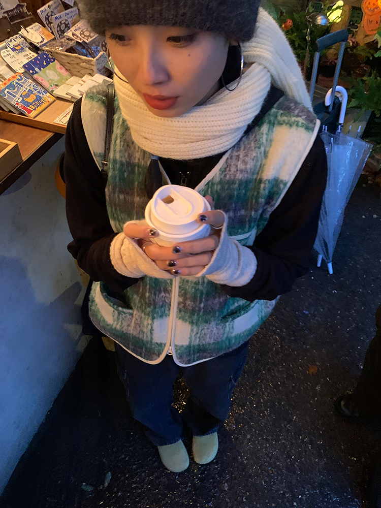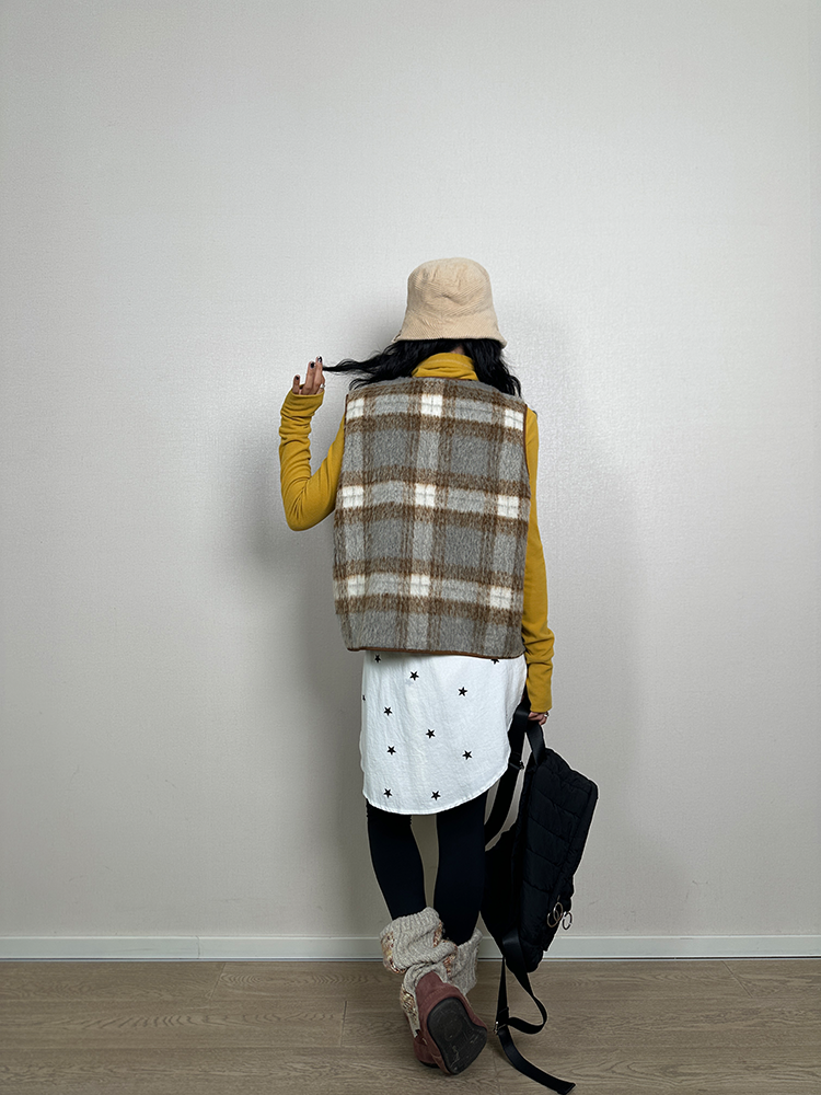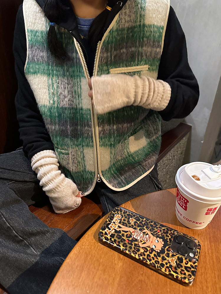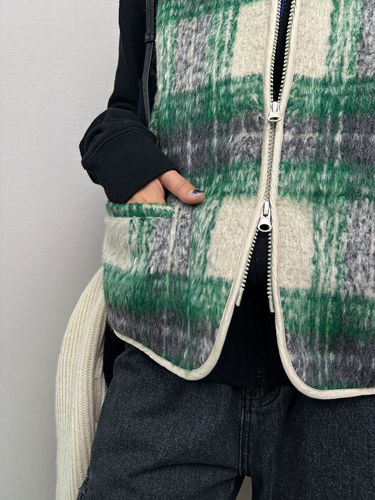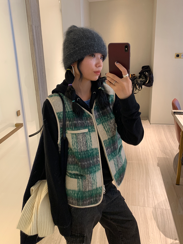 *o-ha-you*【FLCT2345】復古格紋毛呢馬甲2024秋冬新款外穿時尚疊穿呢子坎肩背心馬夾-2色-如有需要請先諮詢