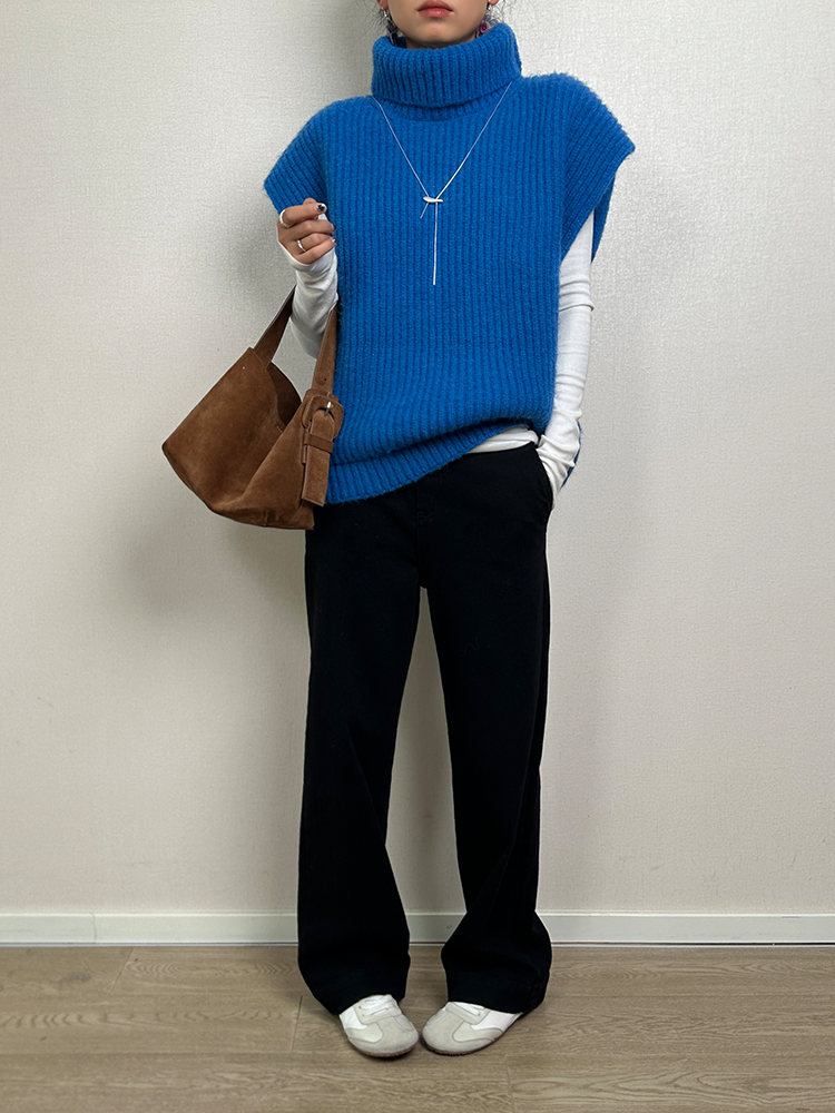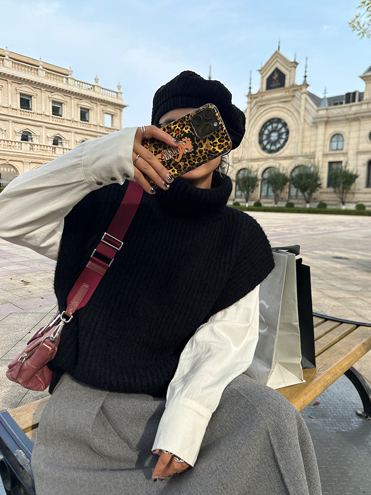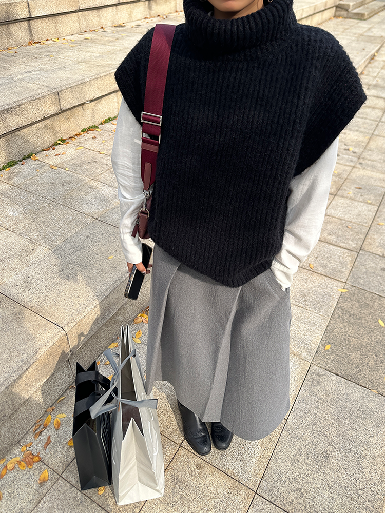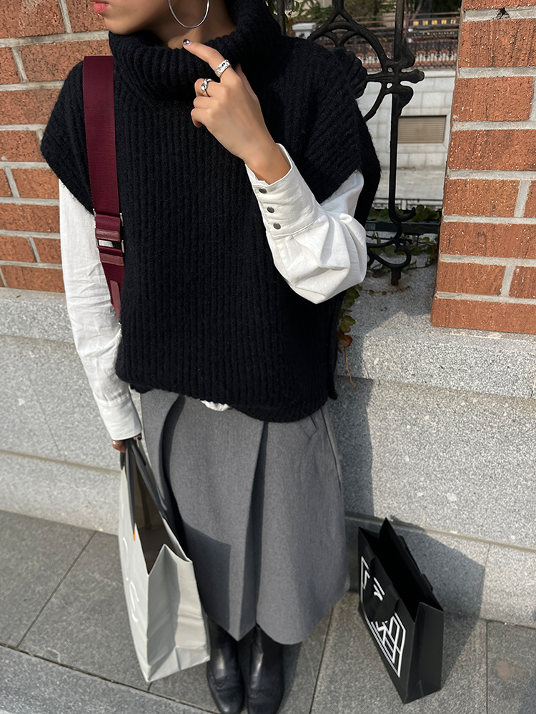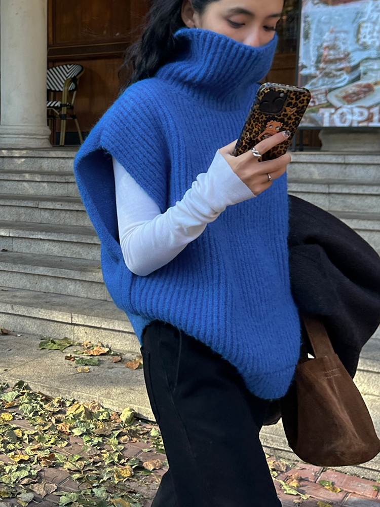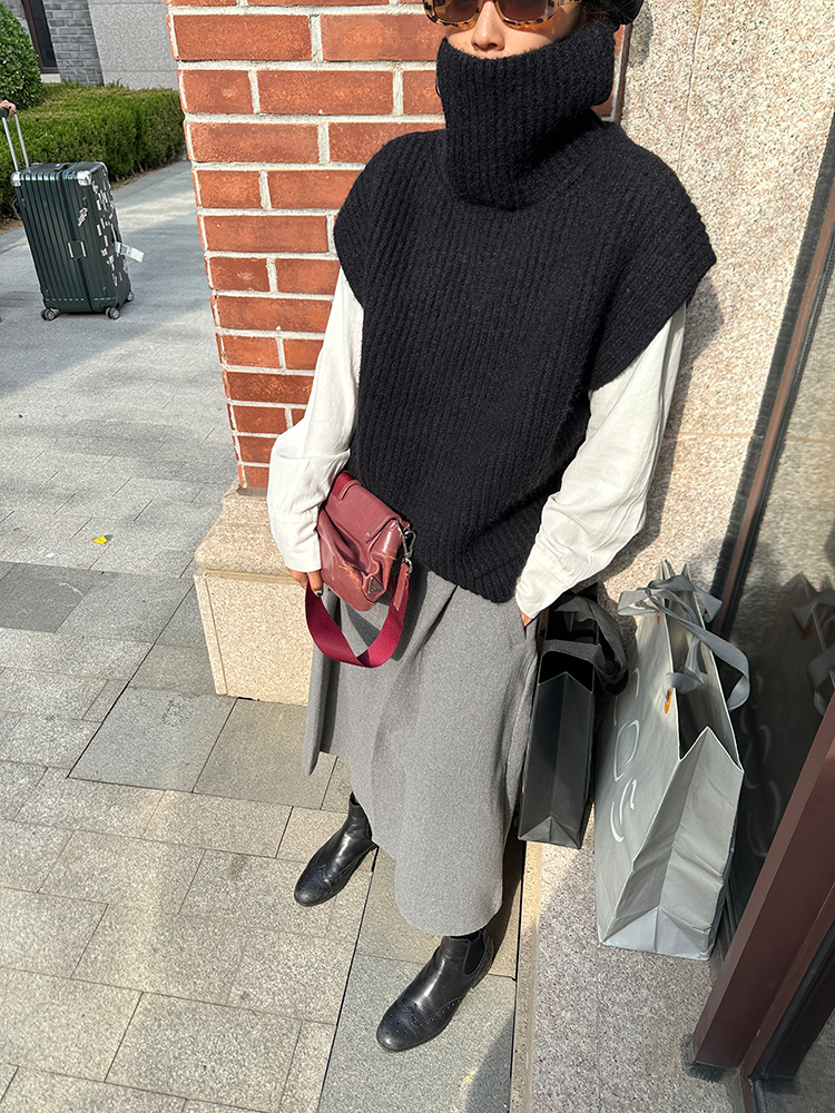 *o-ha-you*【FLCT2348】高領針織馬甲背心冬季2024新款外穿坎肩疊穿秋冬無袖毛衣馬夾-2色