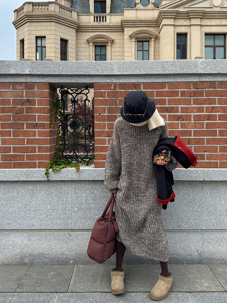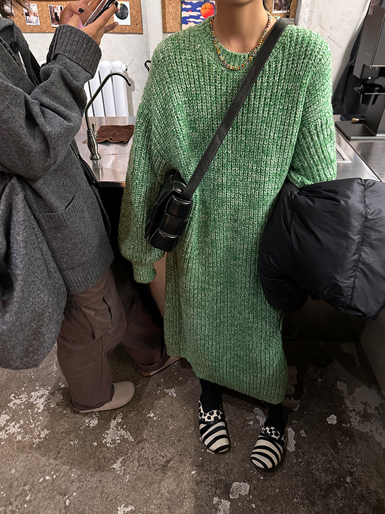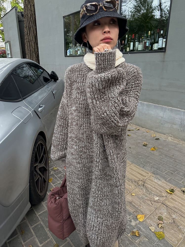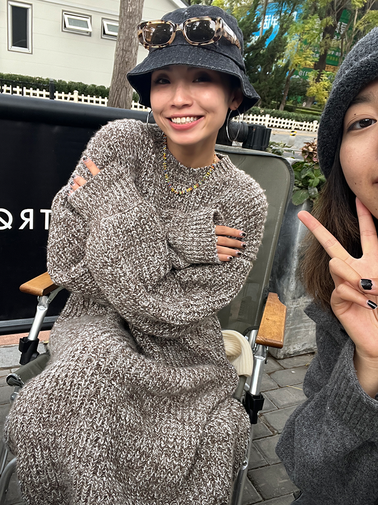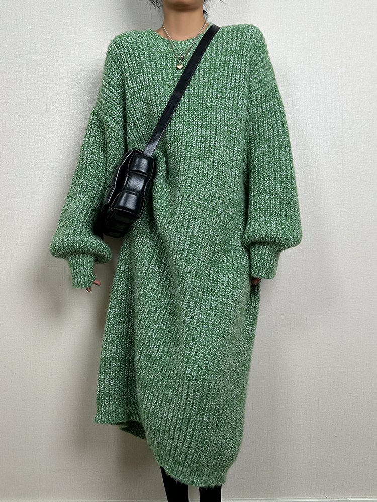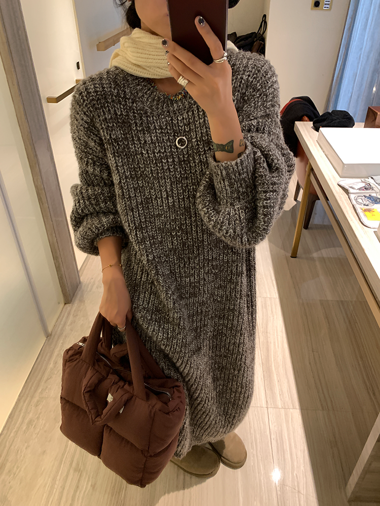 *o-ha-you*【FLCT2353】雜色毛衣裙2024新款秋冬寬鬆加厚長袖連衣裙冬季慵懶針織長裙洋裝-2色-如有需要請先諮詢