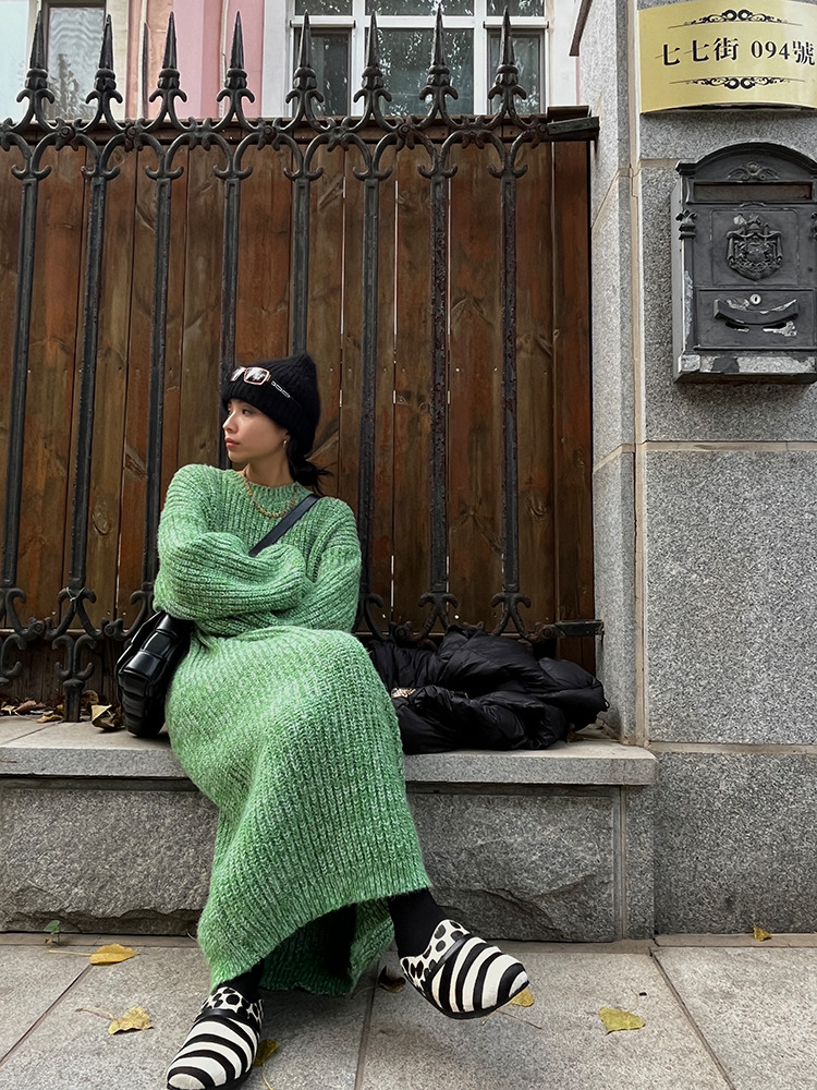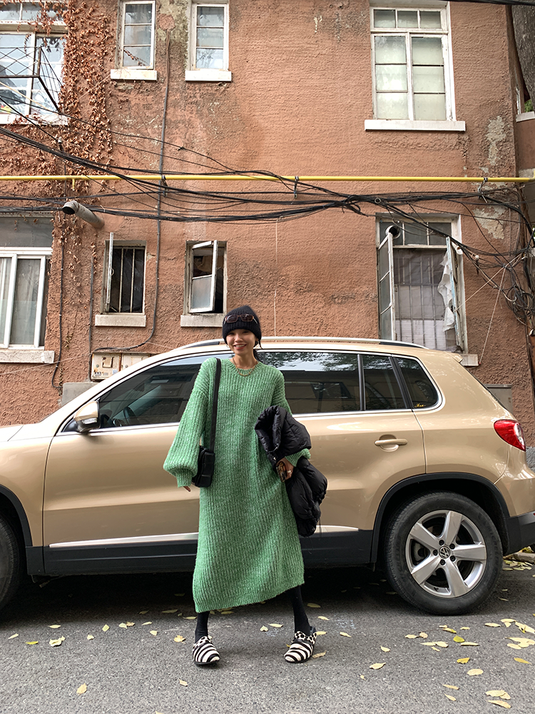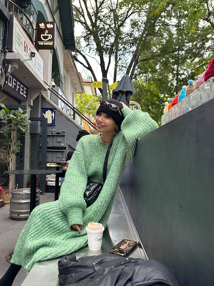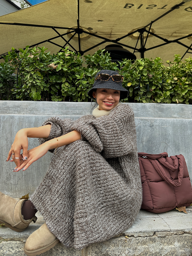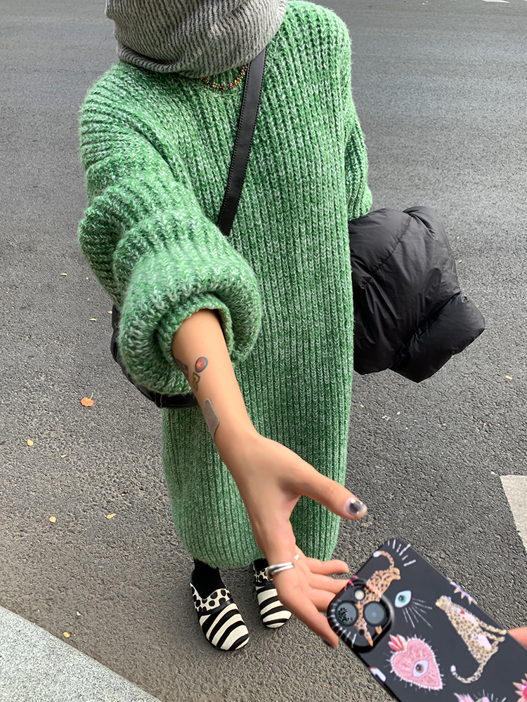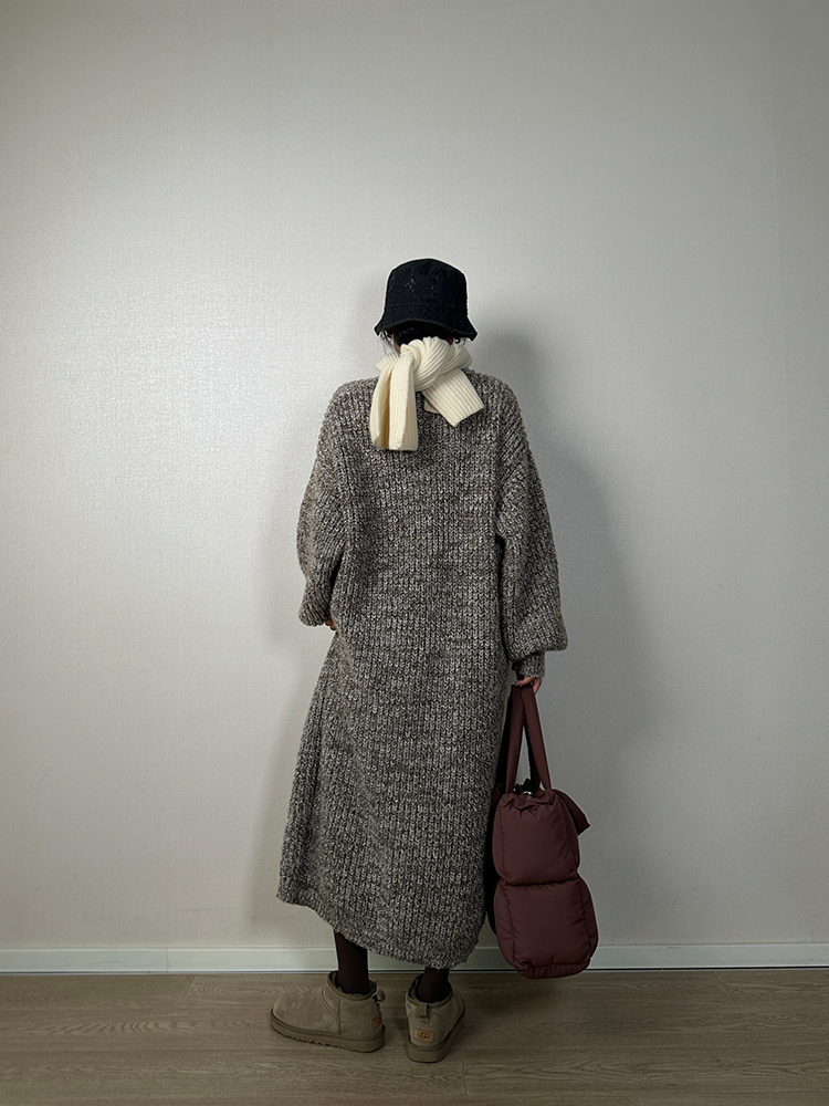 *o-ha-you*【FLCT2353】雜色毛衣裙2024新款秋冬寬鬆加厚長袖連衣裙冬季慵懶針織長裙洋裝-2色-如有需要請先諮詢
