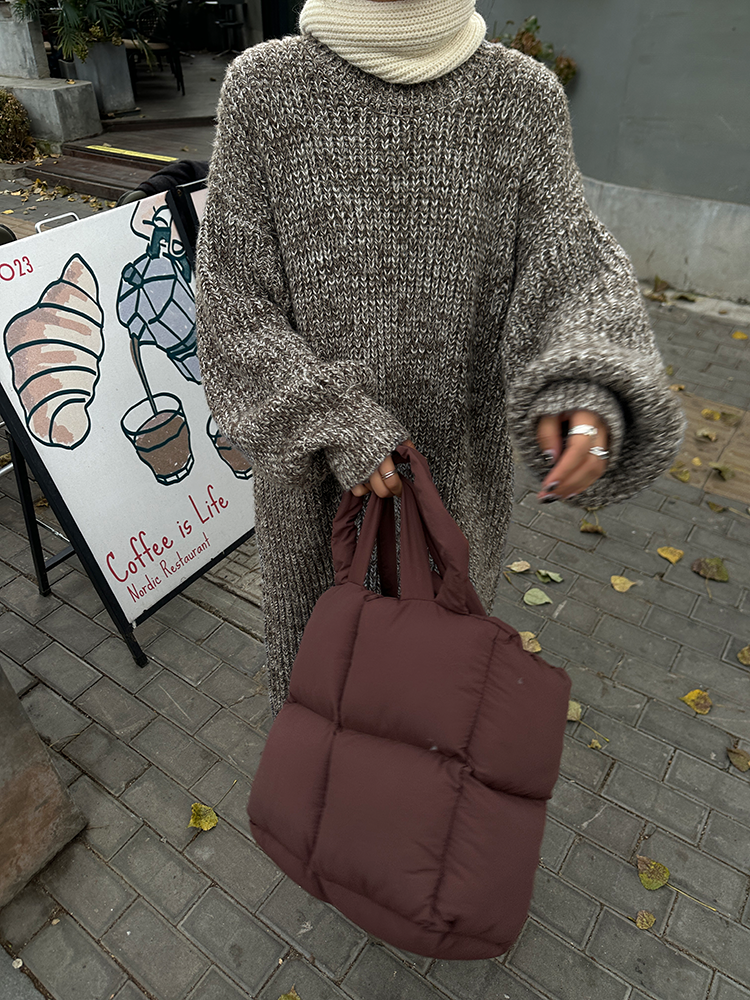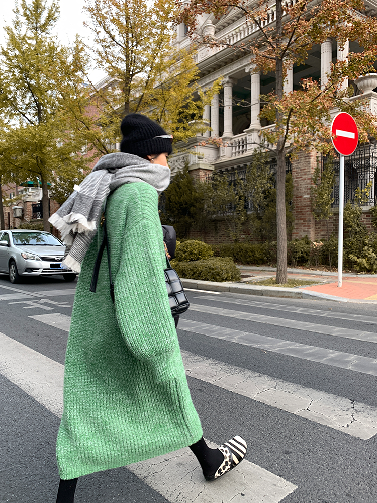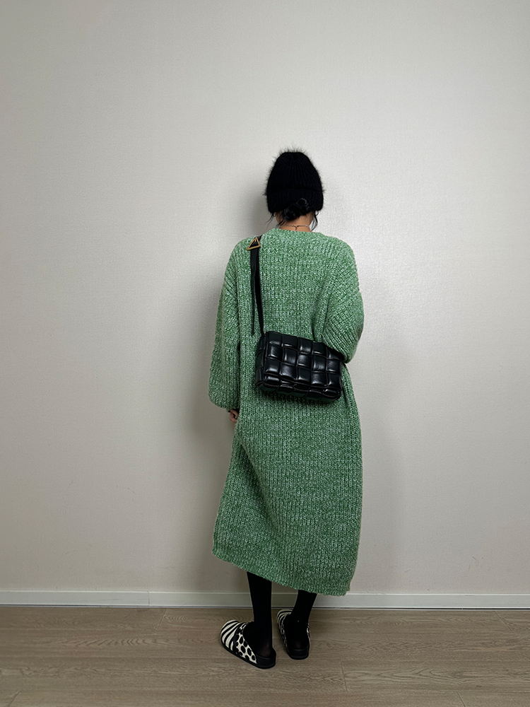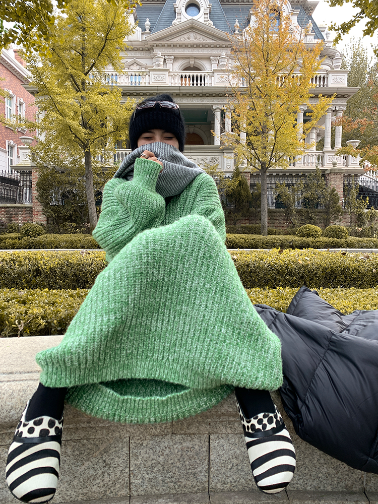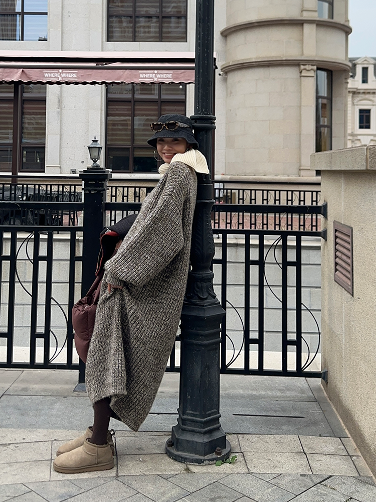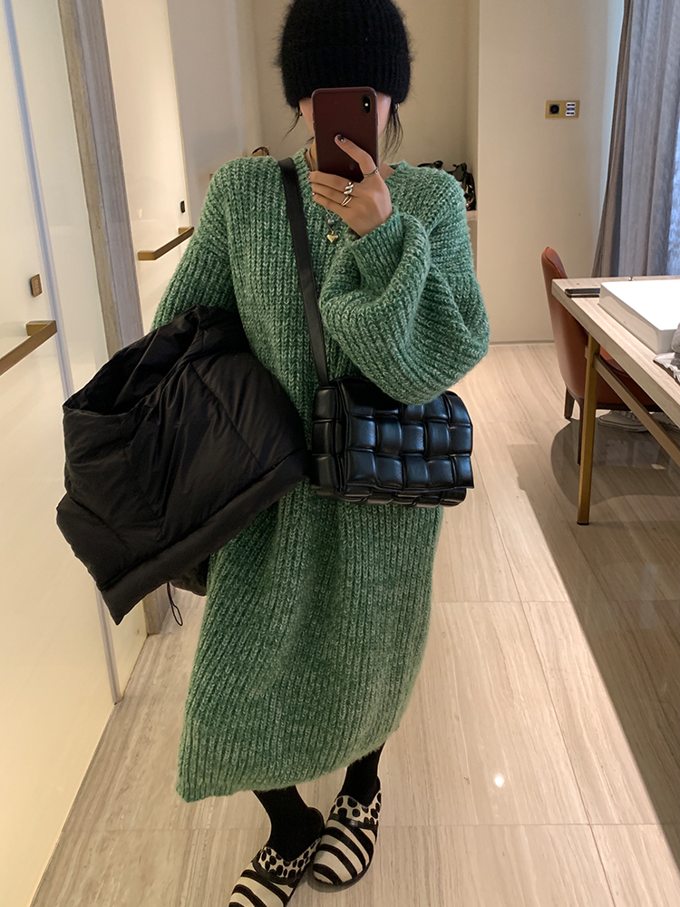 *o-ha-you*【FLCT2353】雜色毛衣裙2024新款秋冬寬鬆加厚長袖連衣裙冬季慵懶針織長裙洋裝-2色-如有需要請先諮詢