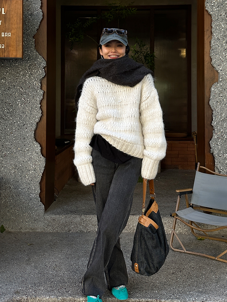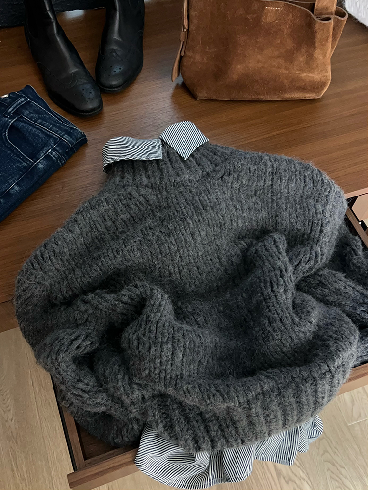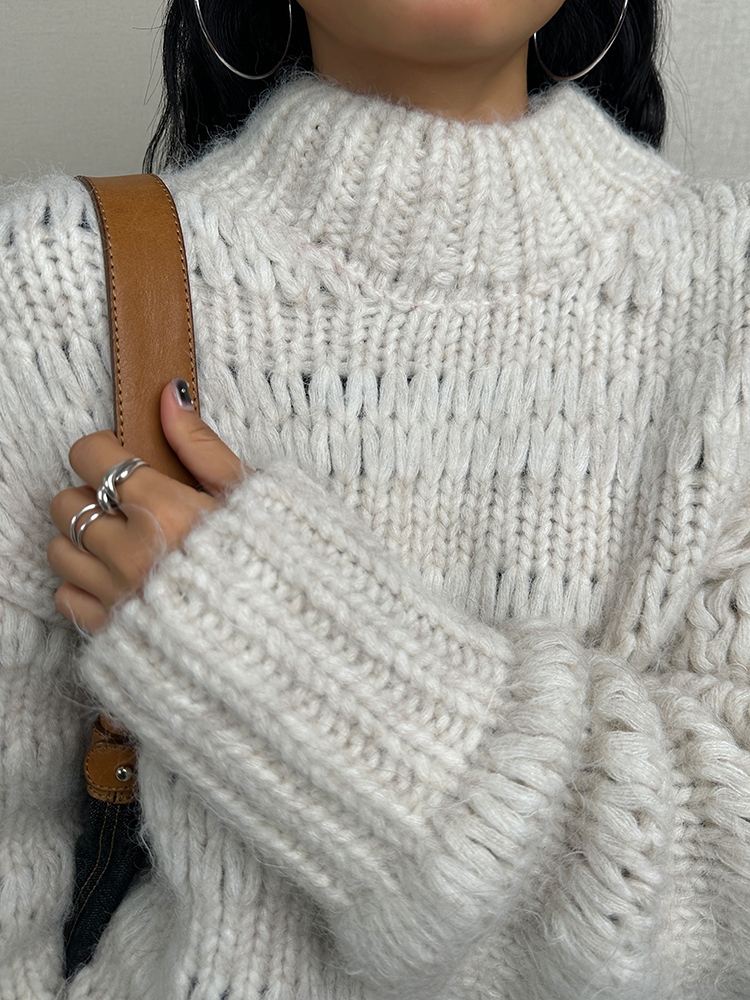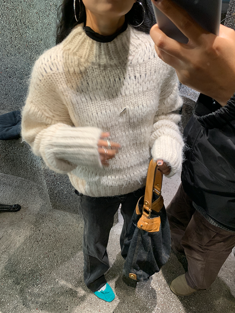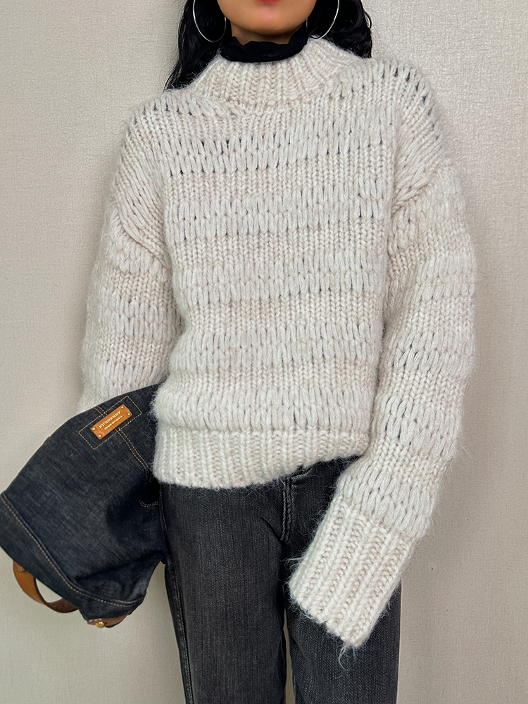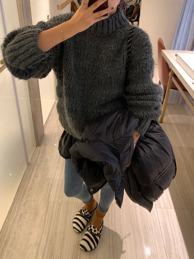 *o-ha-you*【FLCT2356】2024年新款冬季套頭半高領秋冬慵懶高級感寬鬆外穿加厚粗針織毛衣-2色-如有需要請先諮詢