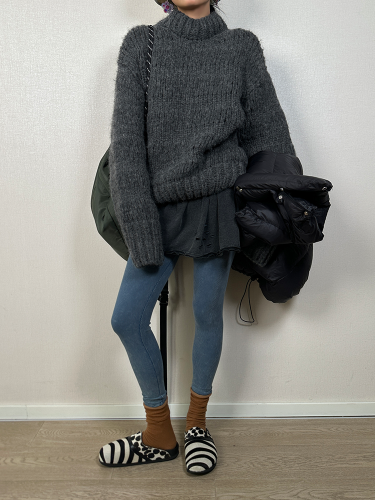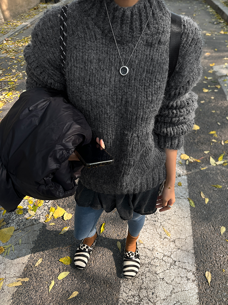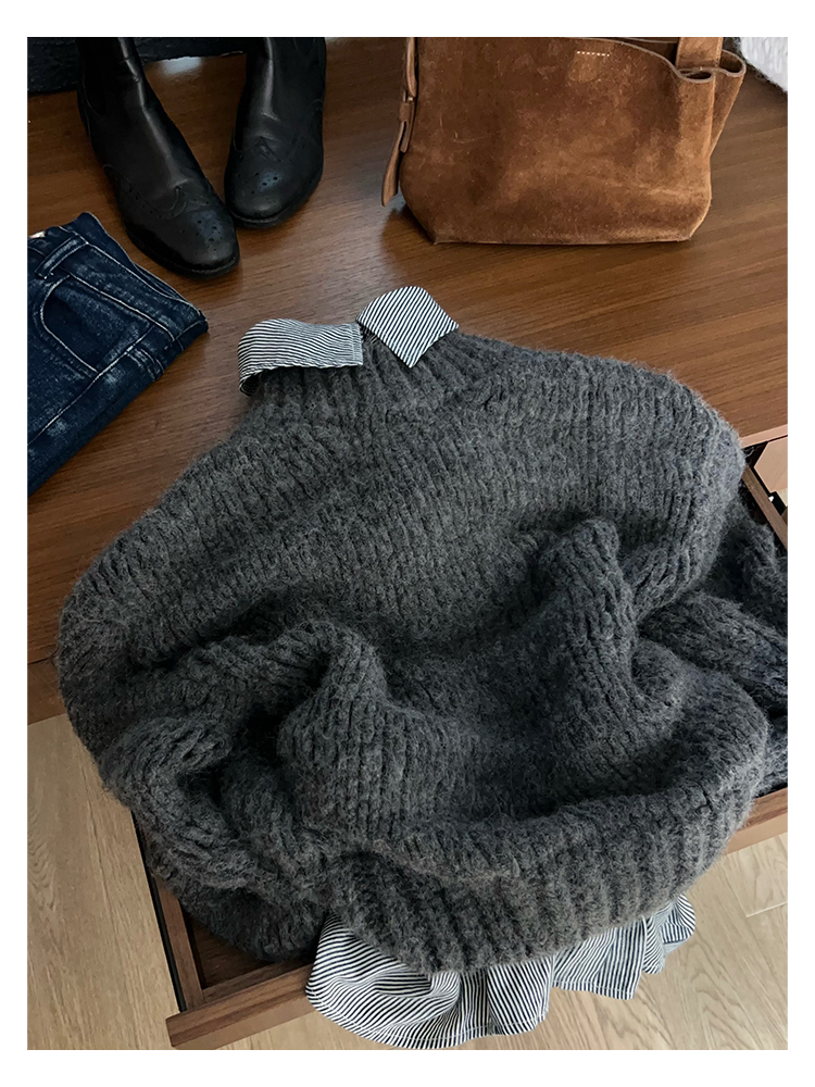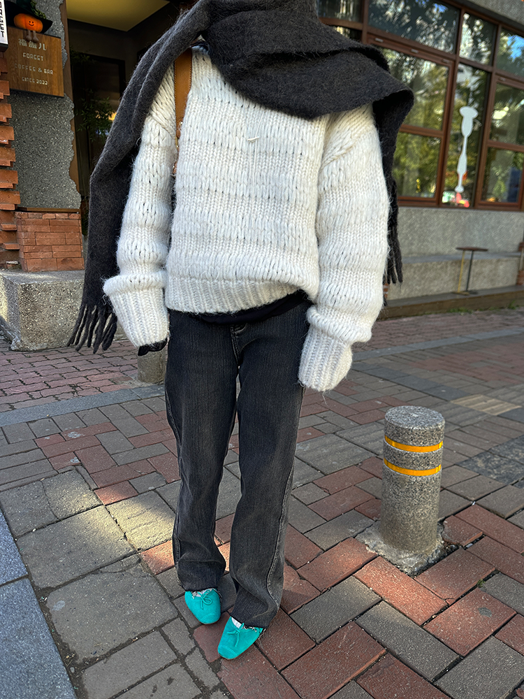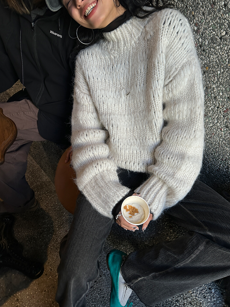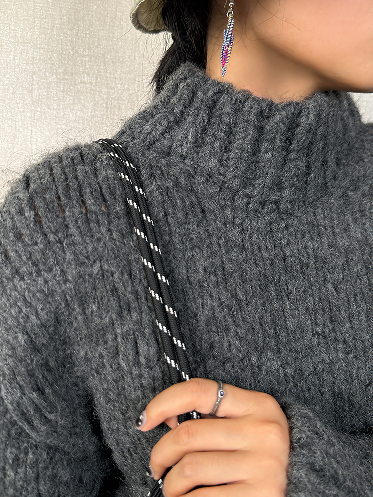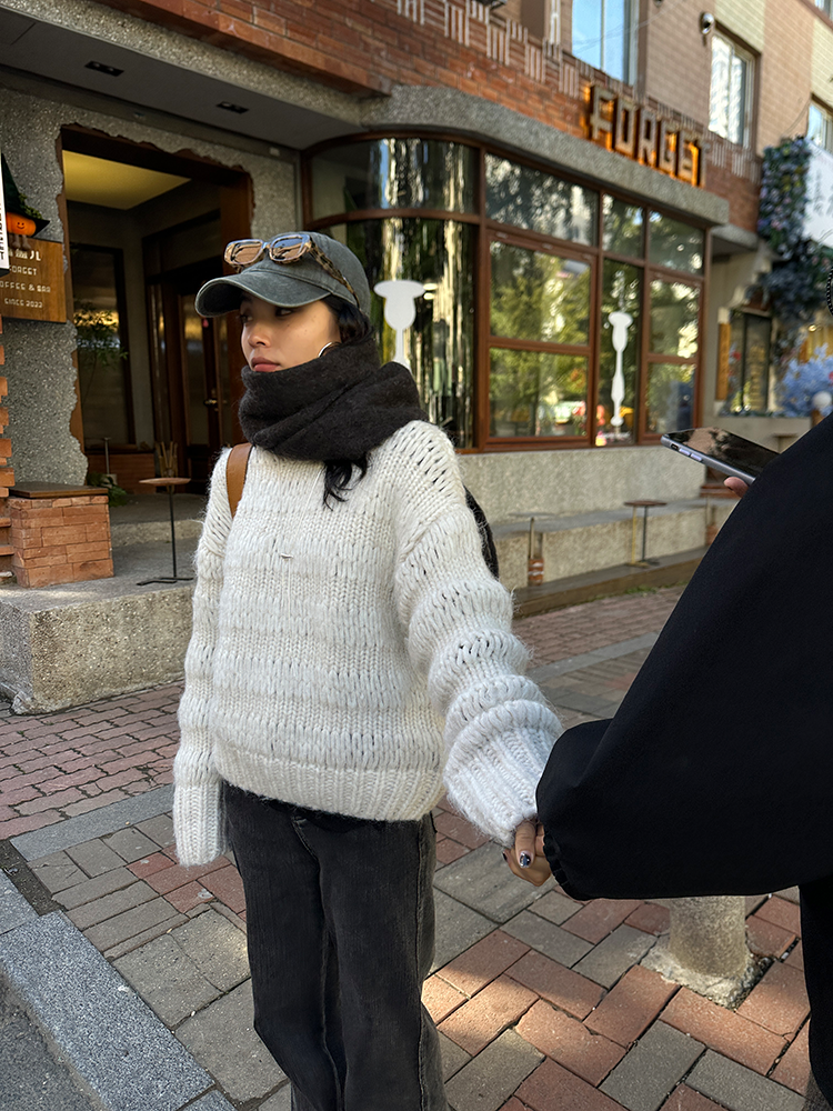 *o-ha-you*【FLCT2356】2024年新款冬季套頭半高領秋冬慵懶高級感寬鬆外穿加厚粗針織毛衣-2色-如有需要請先諮詢