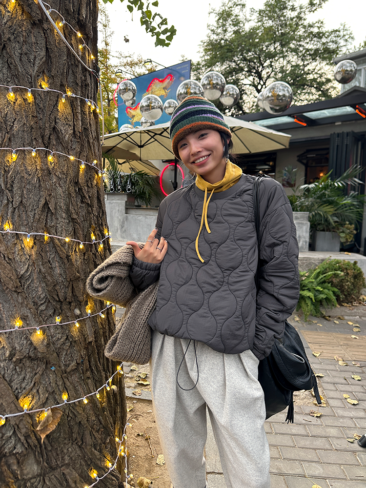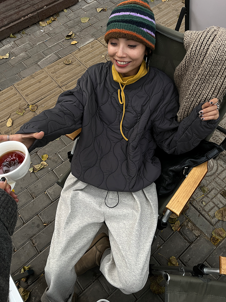 *o-ha-you*【FLCT2365】葫蘆絎棉棉服2024年新款冬季寬鬆夾棉套頭外套洋氣保暖棉襖棉衣-2色-如有需要請先諮詢