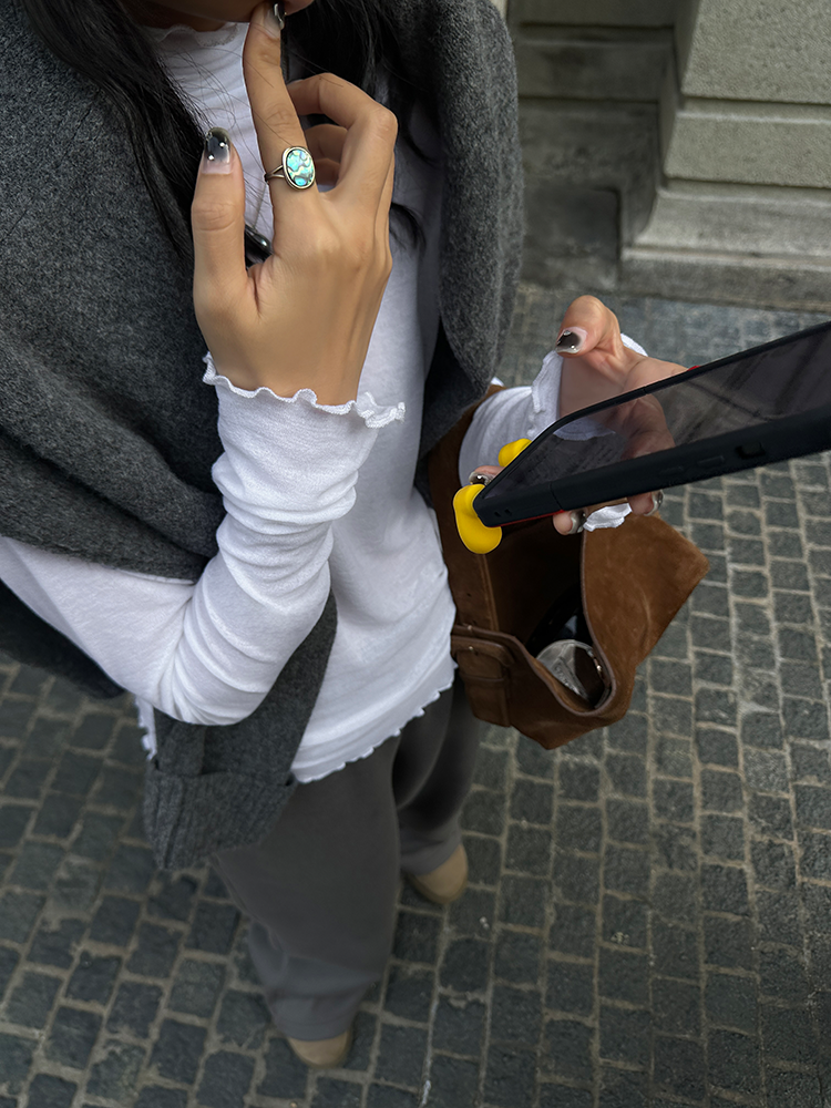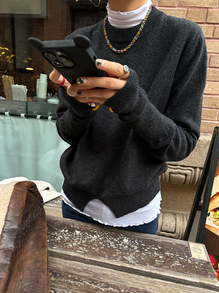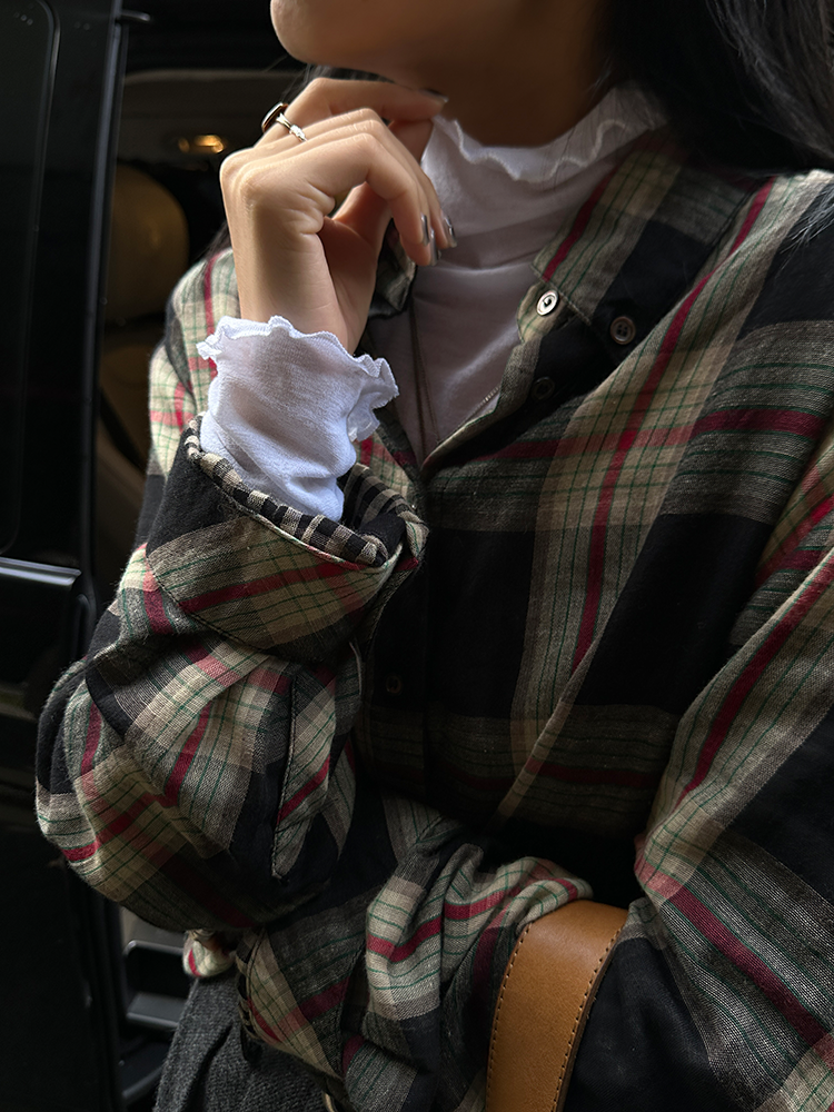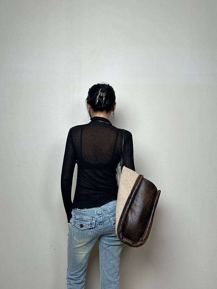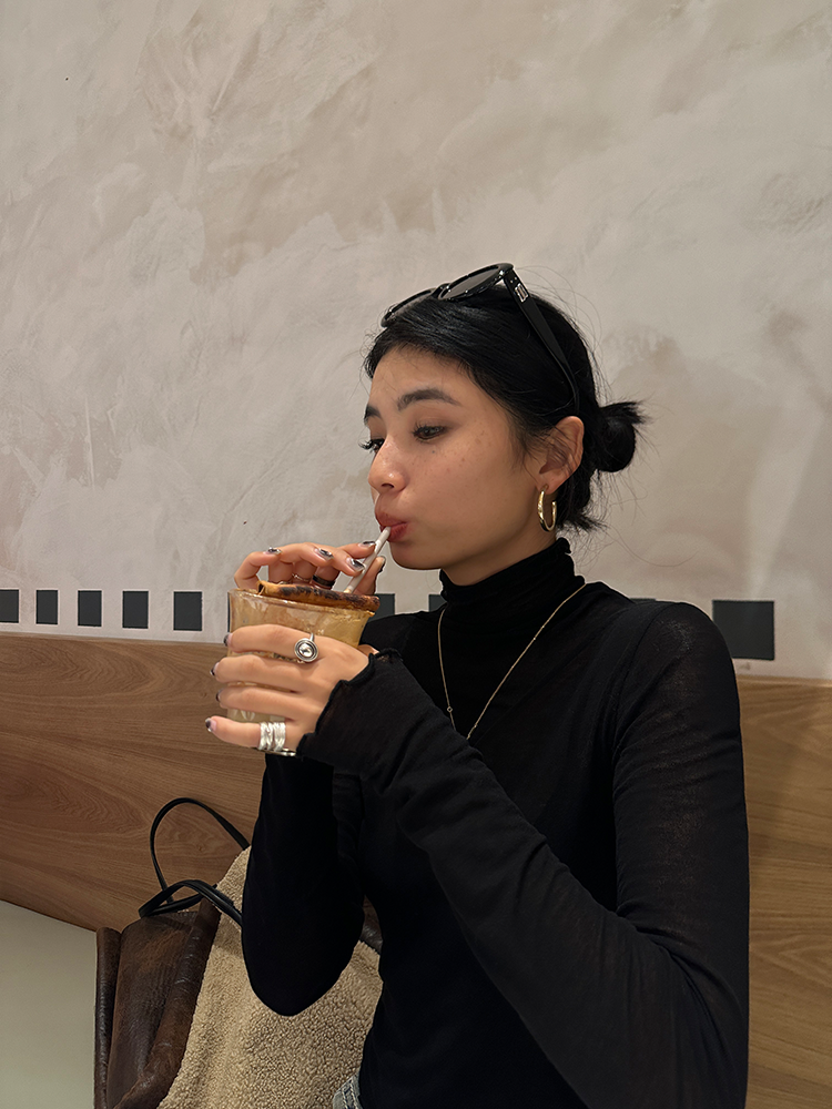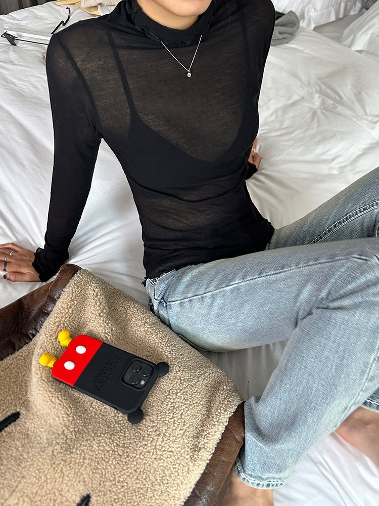*o-ha-you*【FLCT2395】木耳邊高領打底衫2024新款秋冬高級感上衣修身洋氣內搭長袖T恤-2色-如有需要請先諮詢