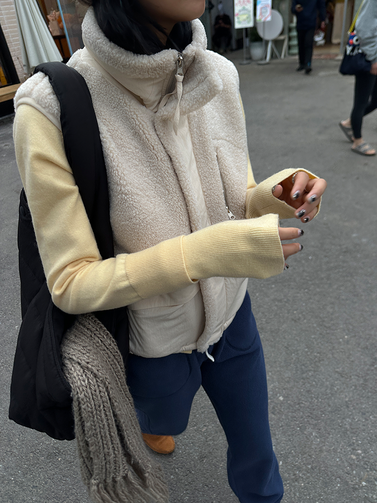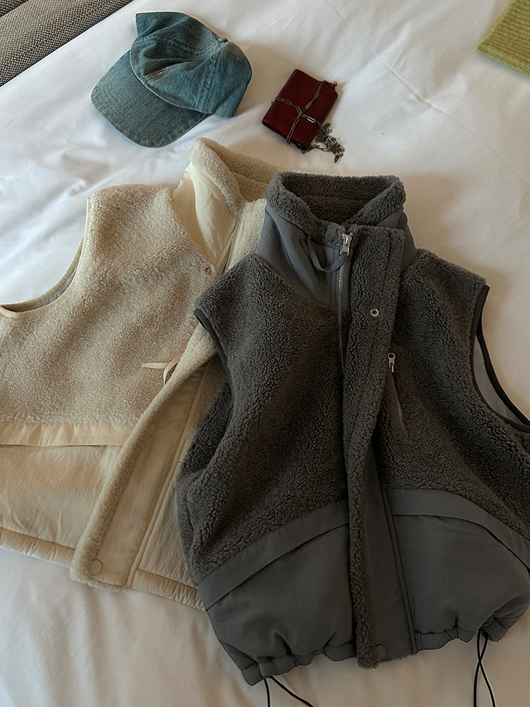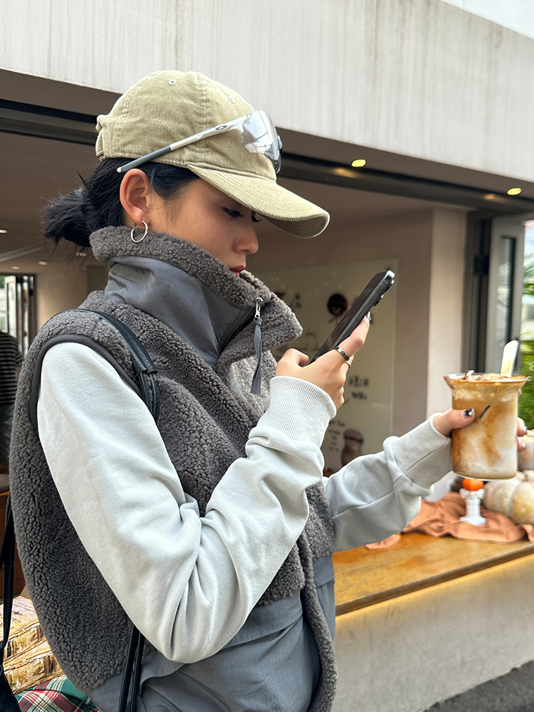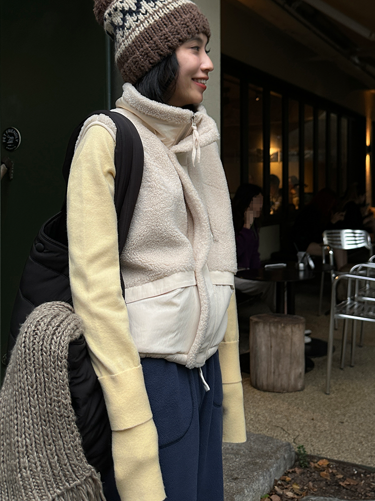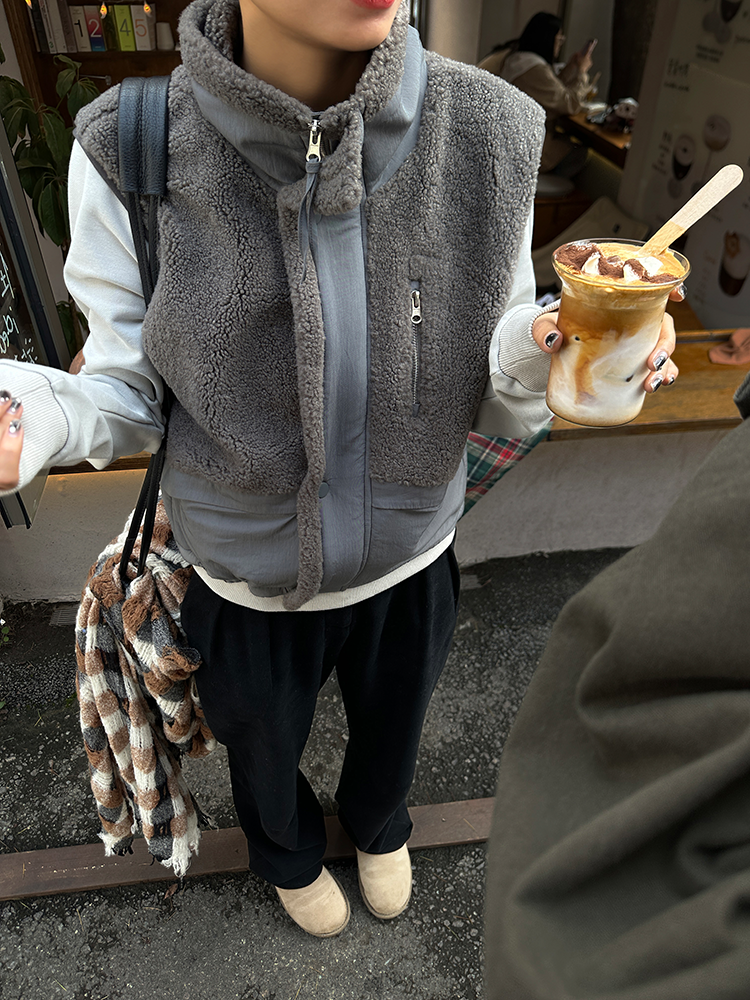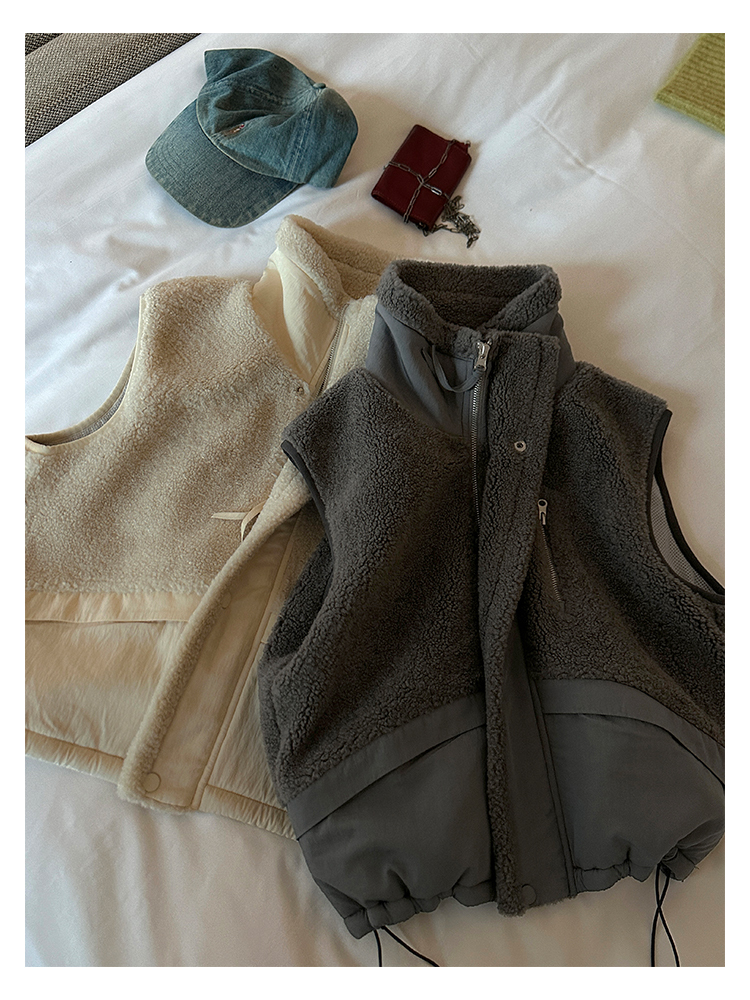 *o-ha-you*【FLCT2403-1】羊羔毛馬甲背心秋冬2024新款外穿保暖洋氣寬鬆冬季疊穿無袖外套