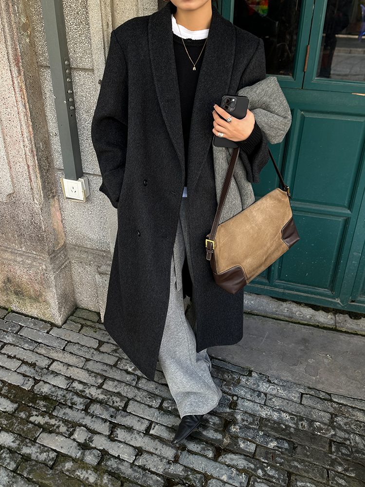 *o-ha-you*【FLCT2410】赫本風雙面呢大衣女款2024新款秋冬高級感長款冬季高端雙面呢外套-2色-如有需要請先諮詢
