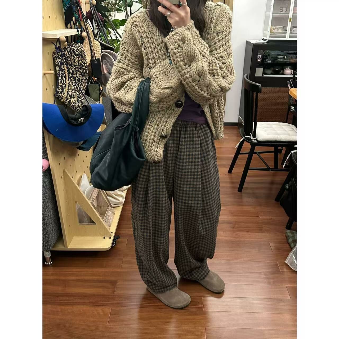 *o-ha-you*【FLCT2424】絕版><秋冬不顯臃腫的50毛呢格紋哈倫褲 自製100分好版型! -2色-隱藏限量款~下單後盡力搶~搶不到別怪我-如有需要請先諮詢