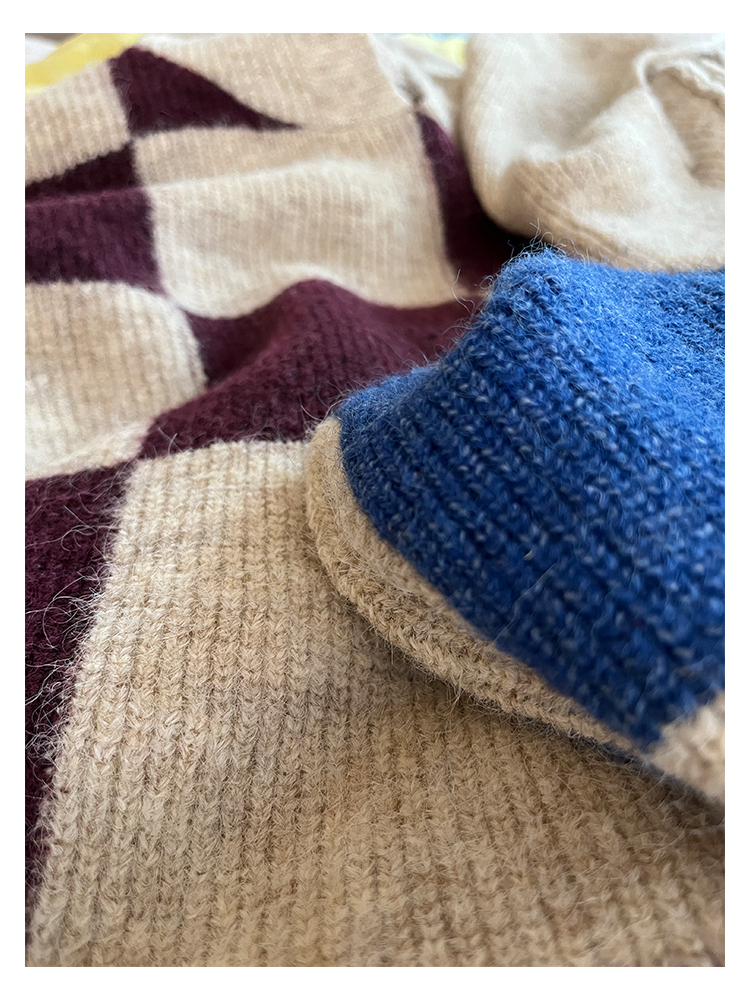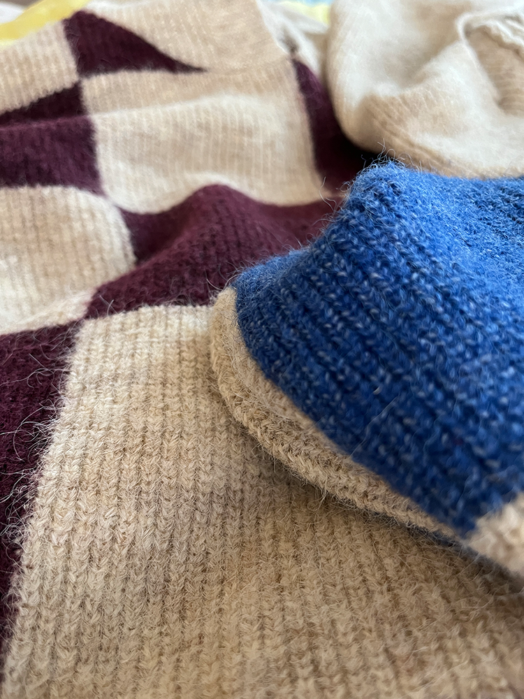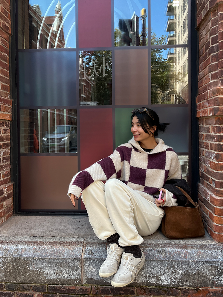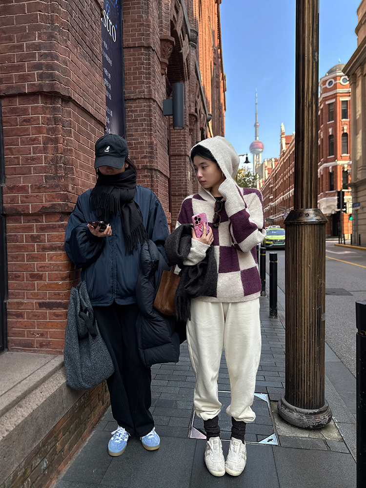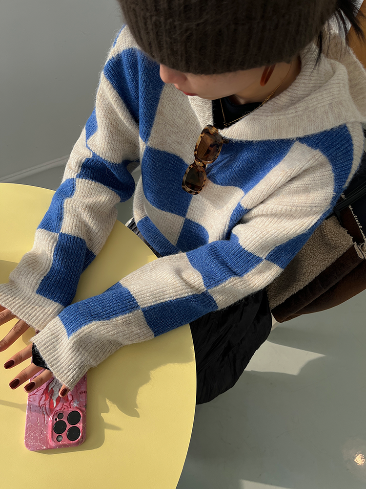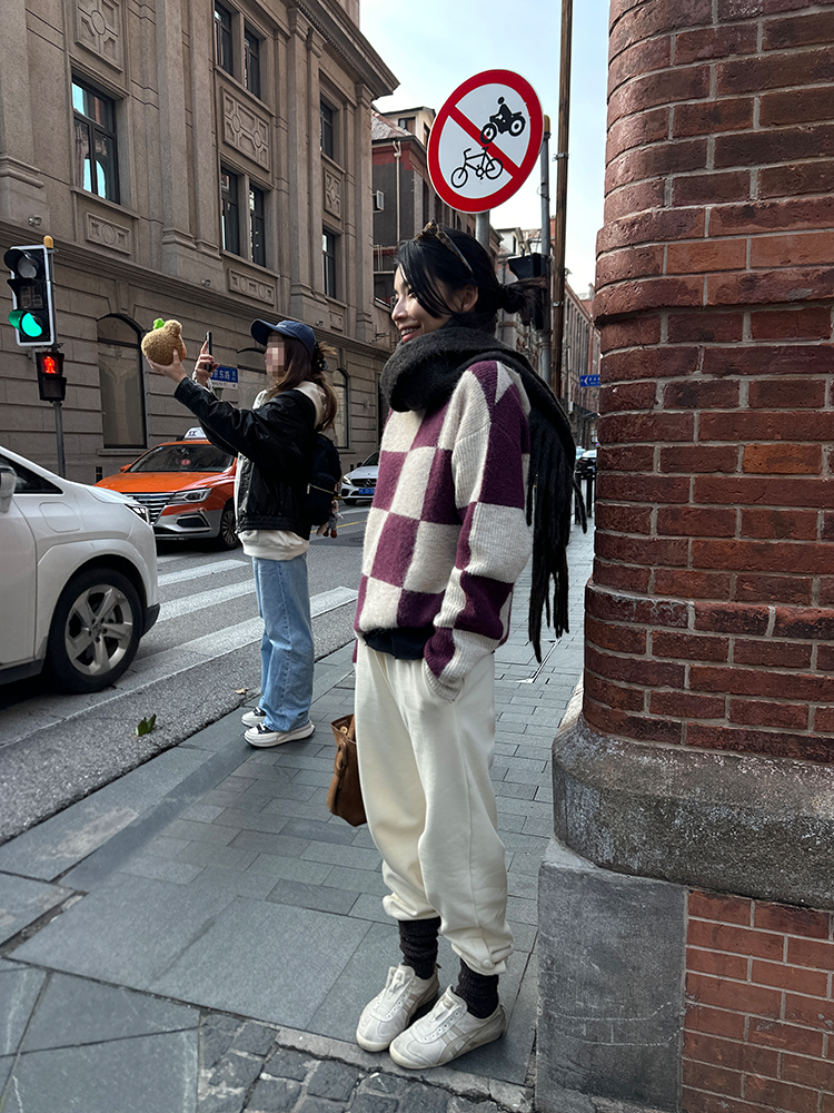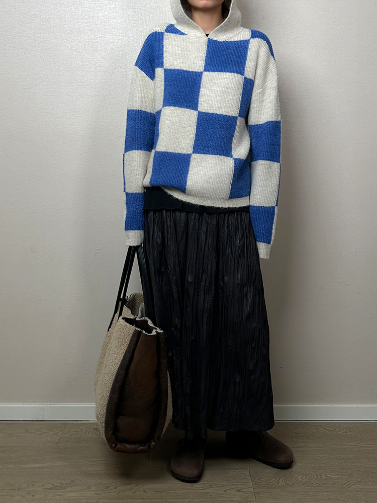 *o-ha-you*【FLCT2429】撞色格紋格子連帽毛衣冬季2024新款慵懶風寬鬆復古秋冬保暖針織上衣-2色