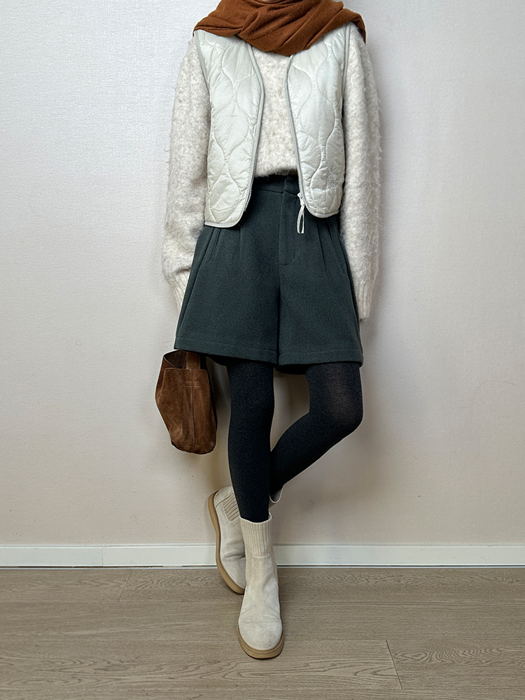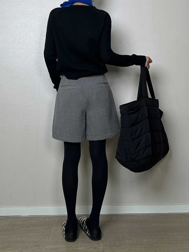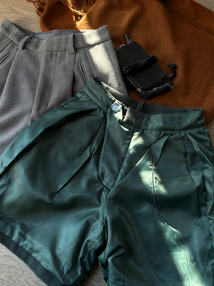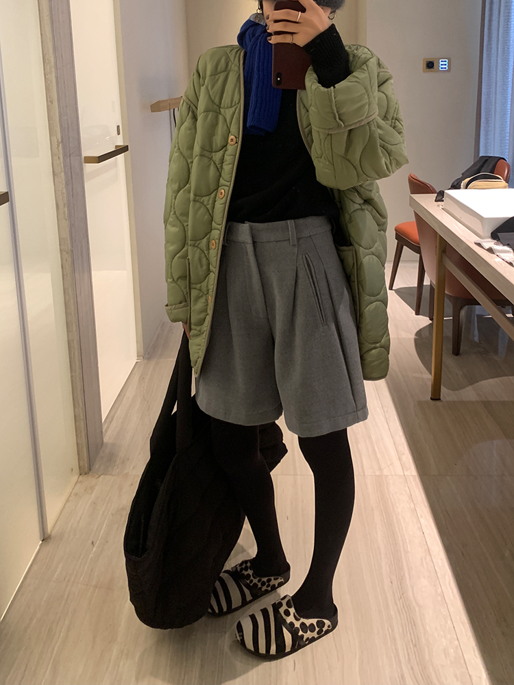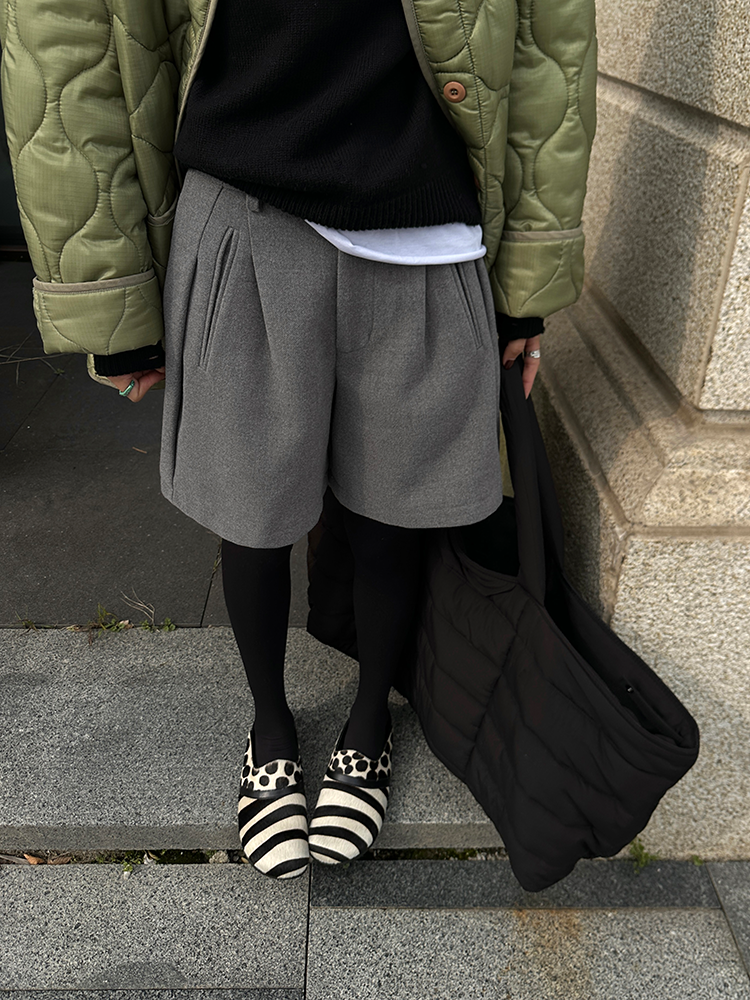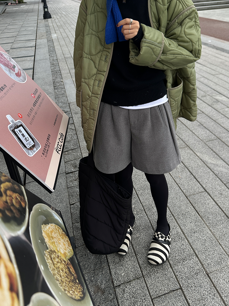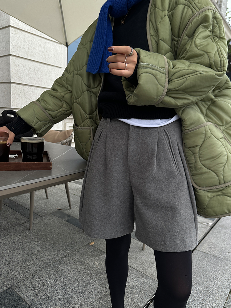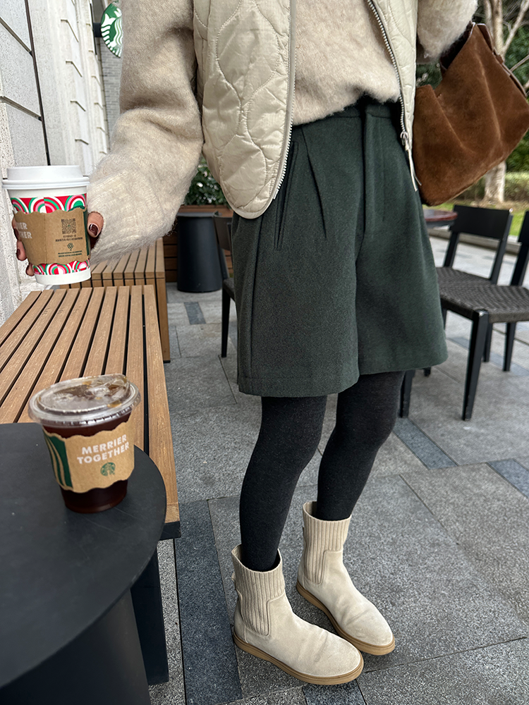 *o-ha-you*【FLCT2432】毛呢短褲秋冬2024新款外穿小個子顯瘦寬鬆高腰A字中褲直筒褲-2色