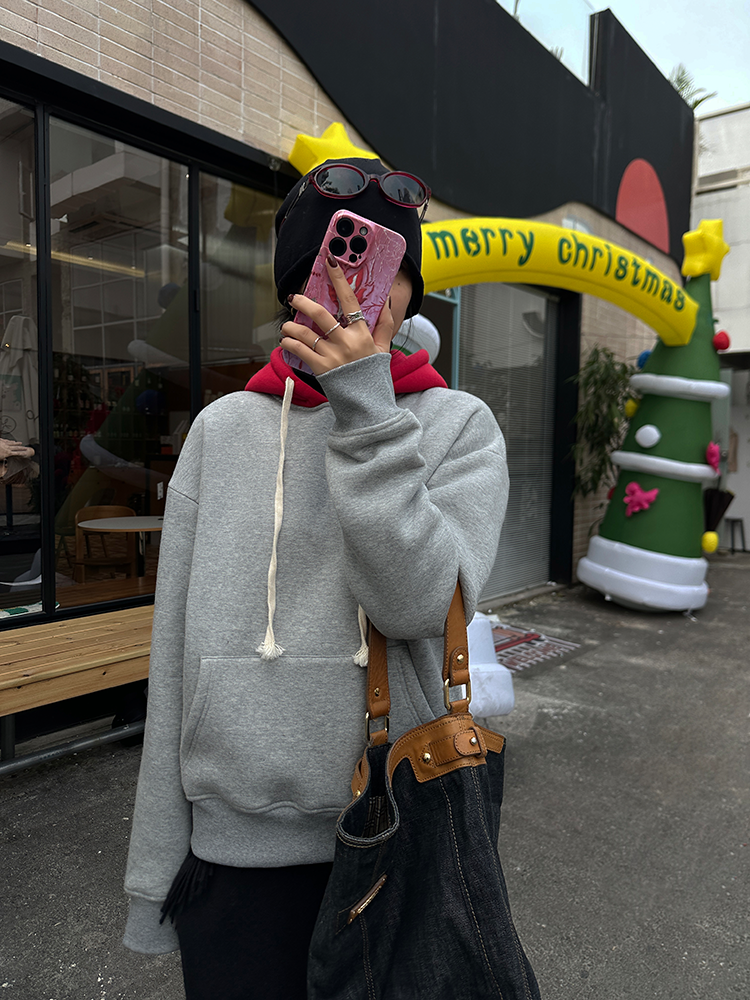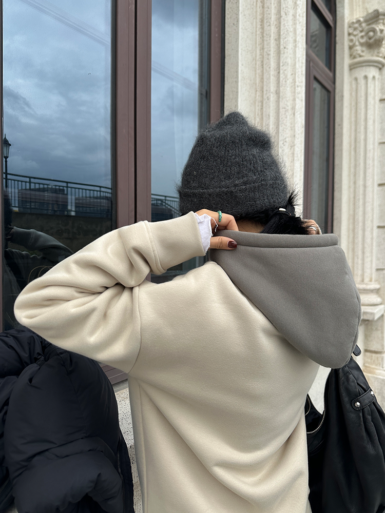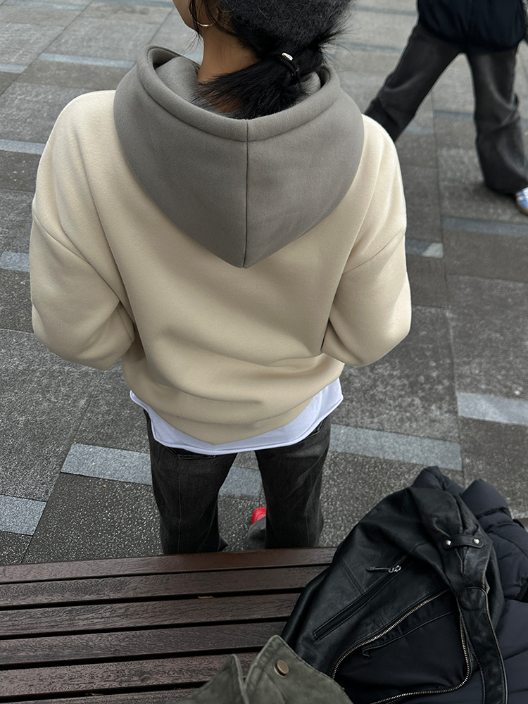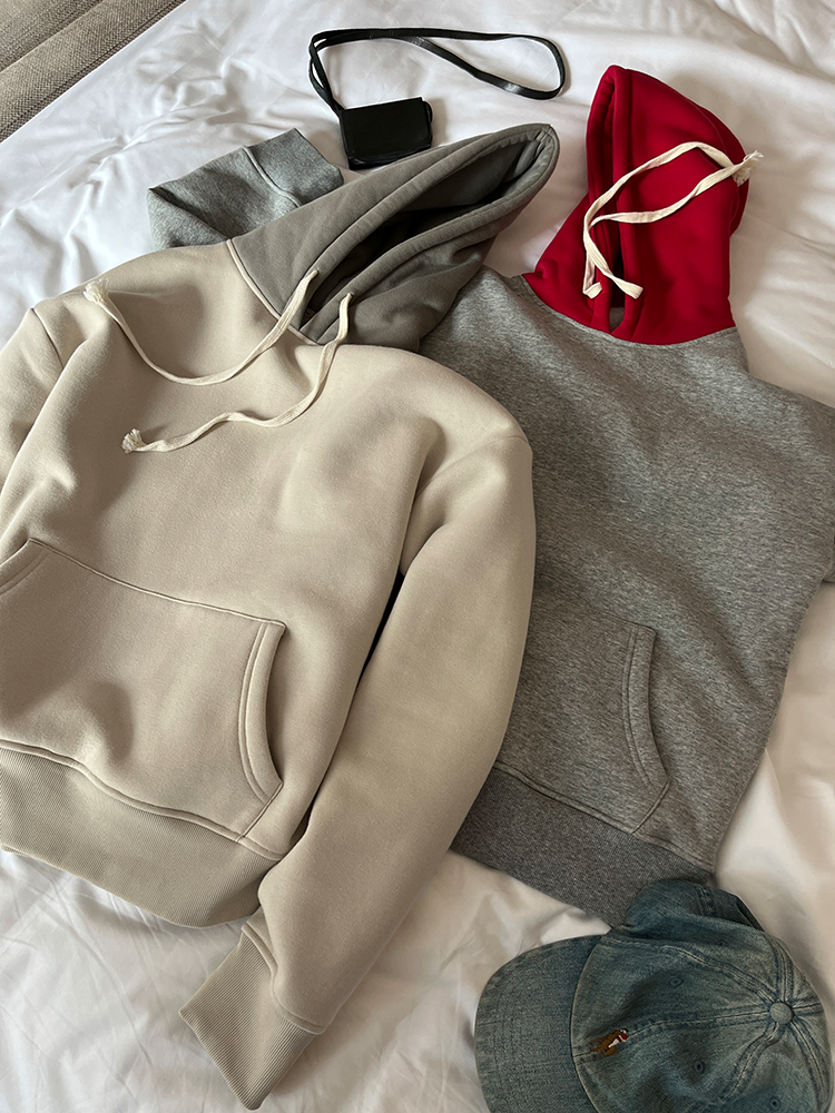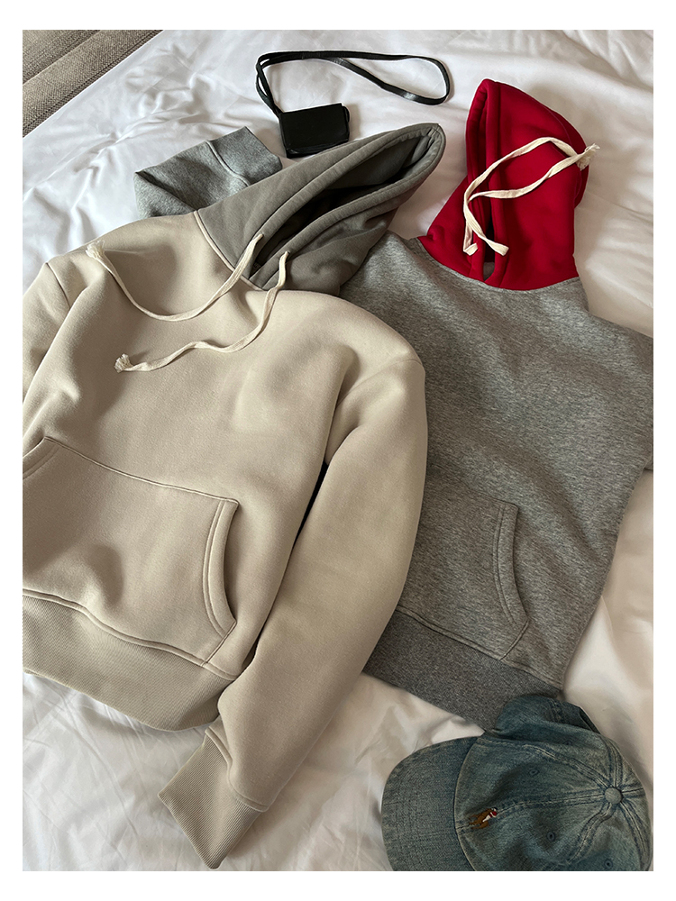 *o-ha-you*【FLCT2437】撞色連帽衛衣秋冬2024新款洋氣寬鬆保暖套頭上衣加絨加厚外套-2色-如有需要請先諮詢