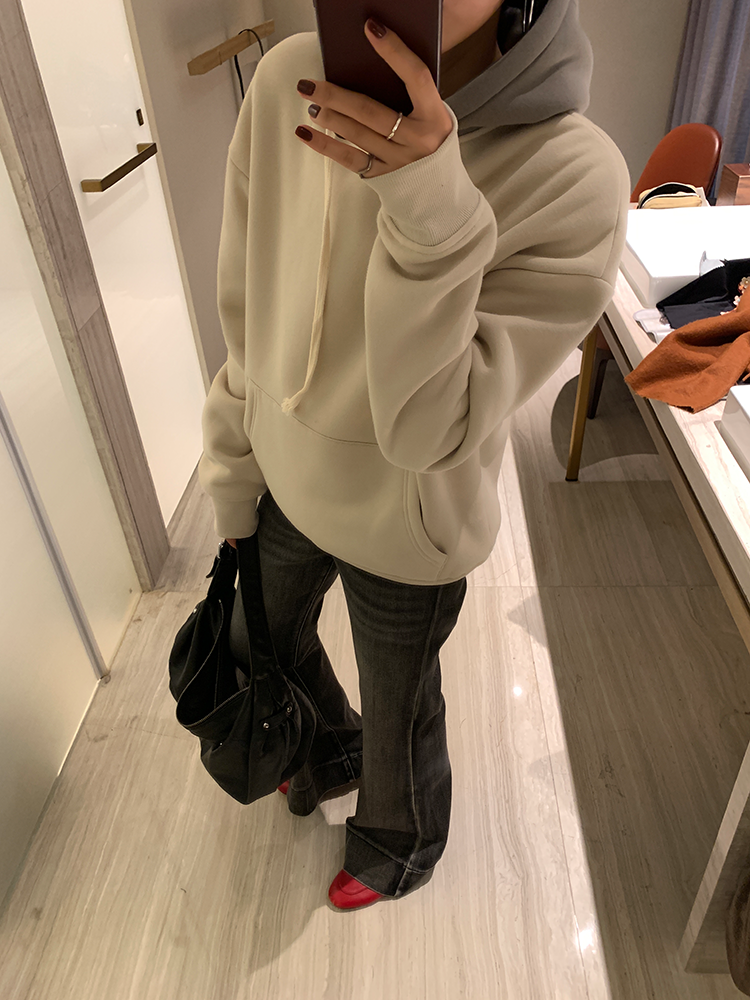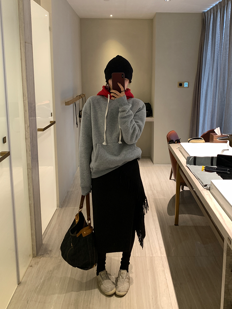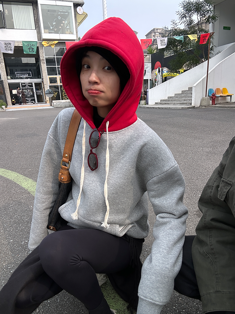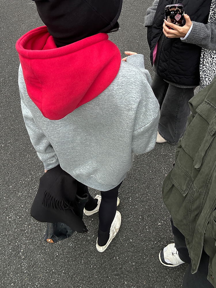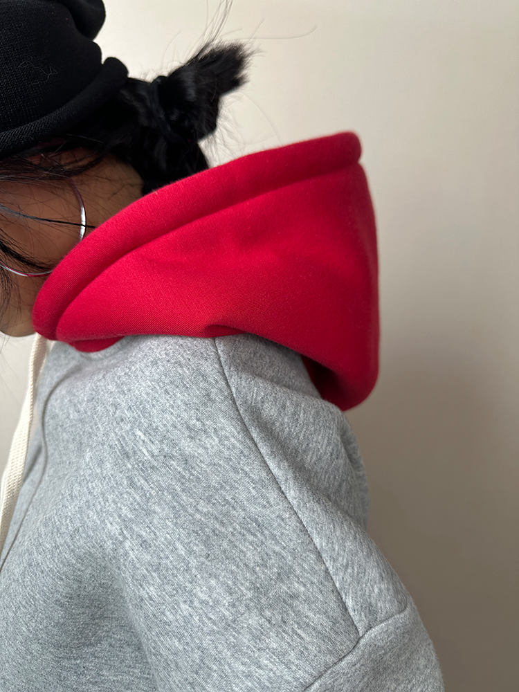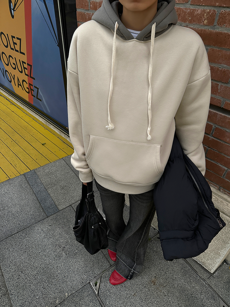 *o-ha-you*【FLCT2437】撞色連帽衛衣秋冬2024新款洋氣寬鬆保暖套頭上衣加絨加厚外套-2色-如有需要請先諮詢