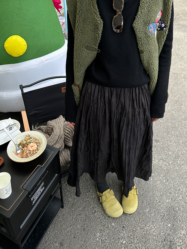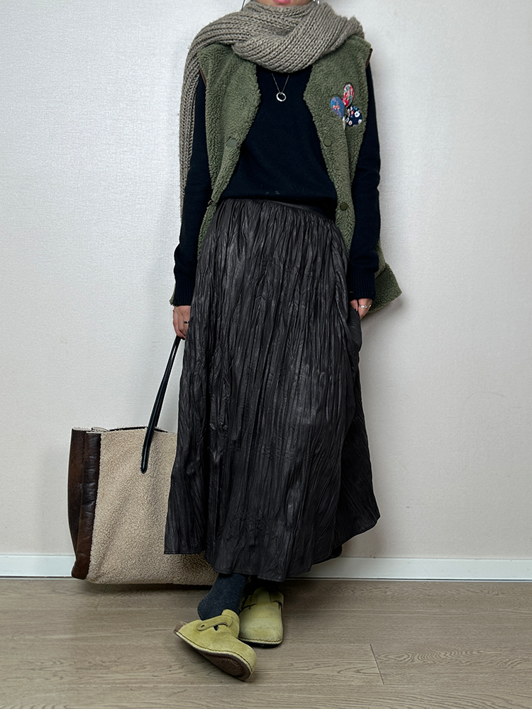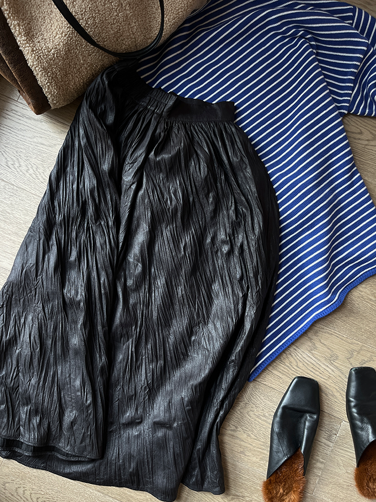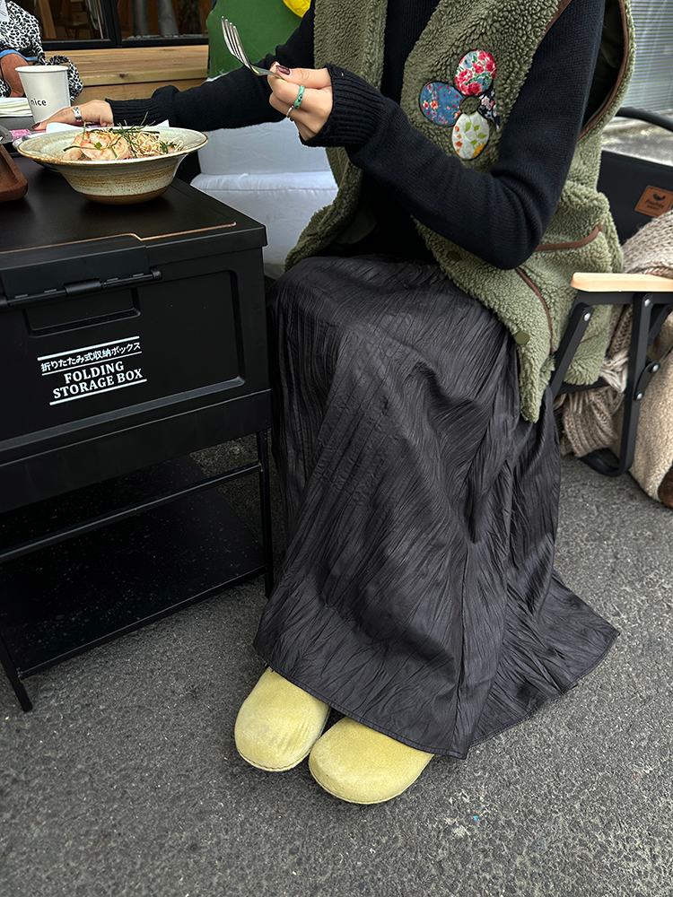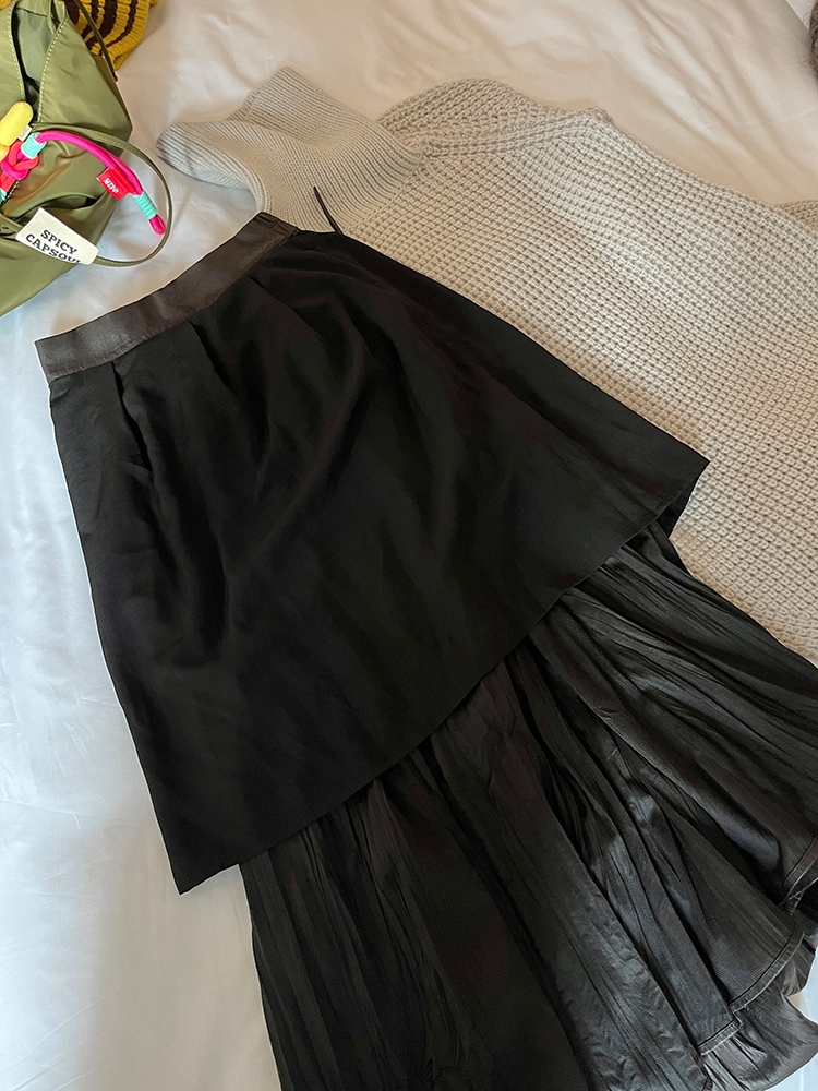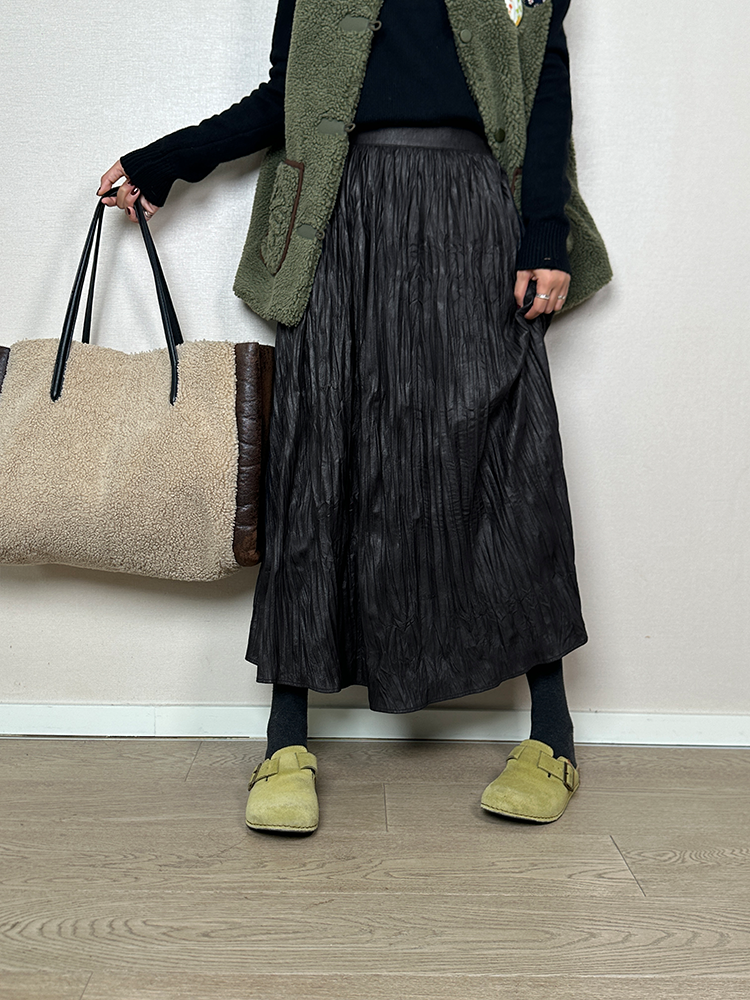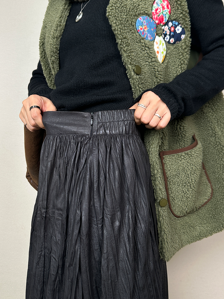 *o-ha-you*【FLCT2448】黑色PU皮裙半身裙秋冬2024新款高級感氣質時尚高腰壓皺A字裙-如有需要請先諮詢