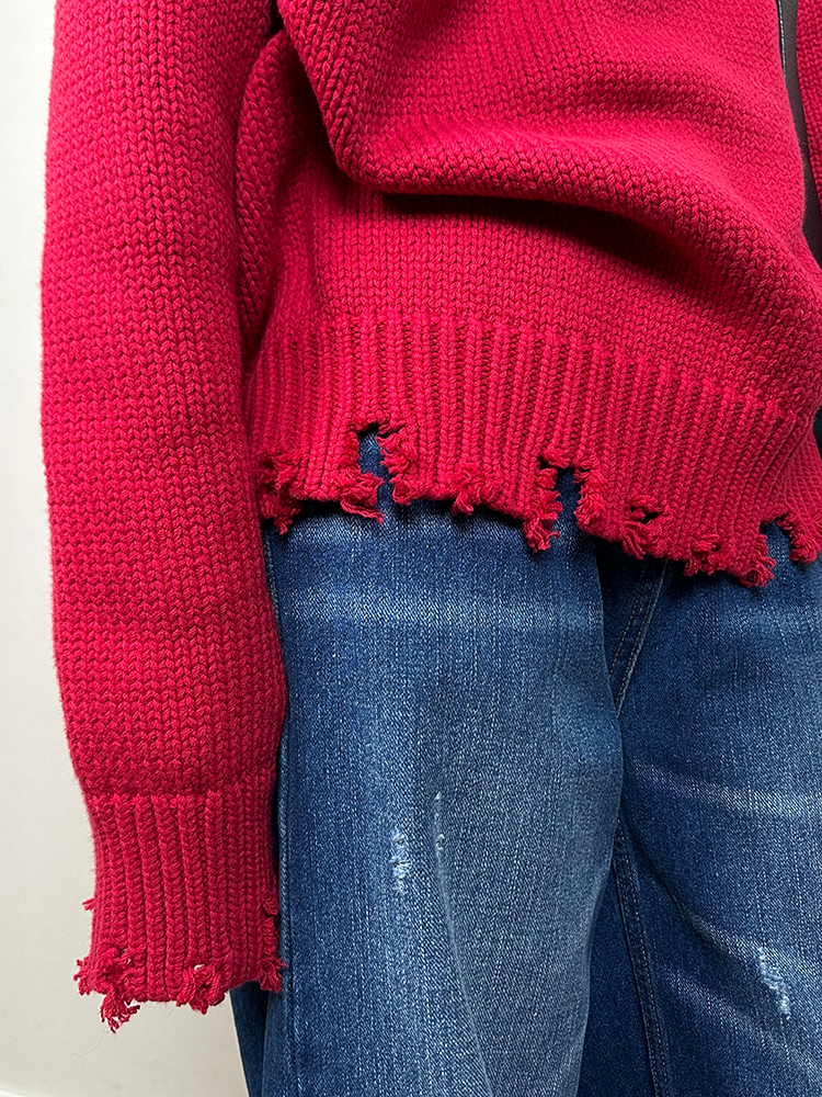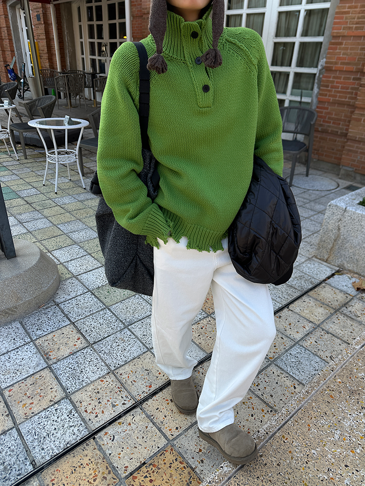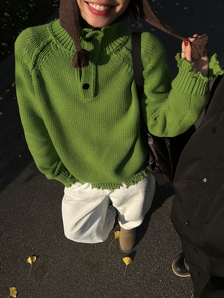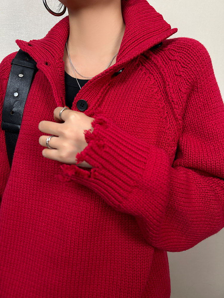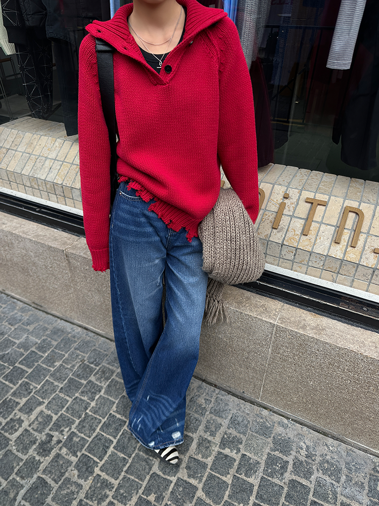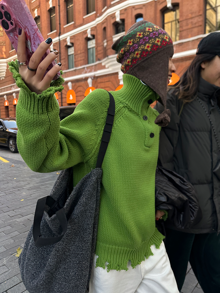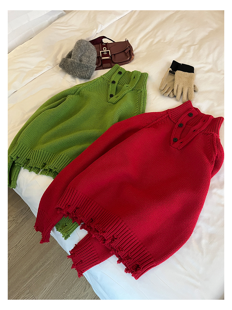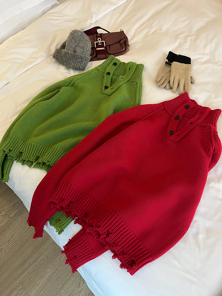 *o-ha-you*【FLCT2465】破邊高領毛衣秋冬2024新款洋氣寬鬆慵懶高級感冬季針織上衣-2色-如有需要請先諮詢