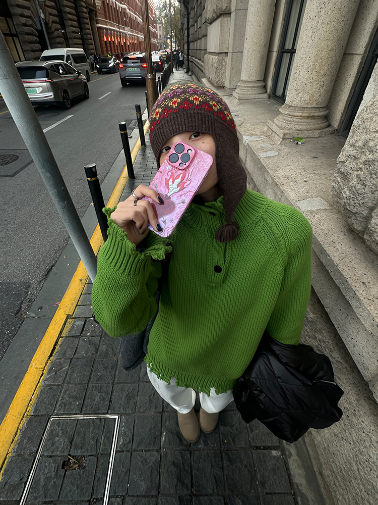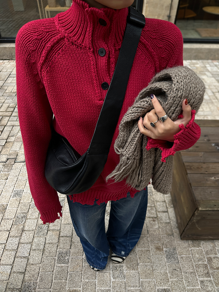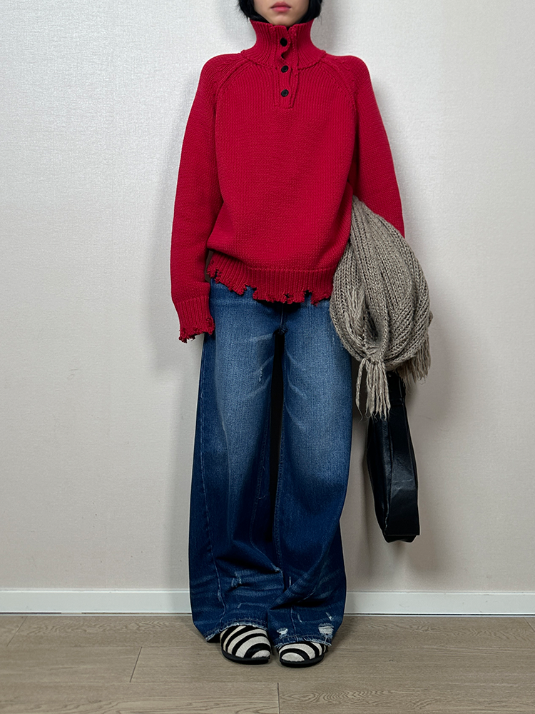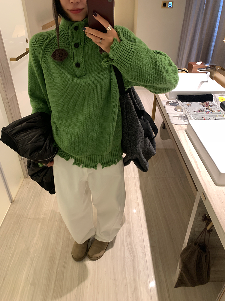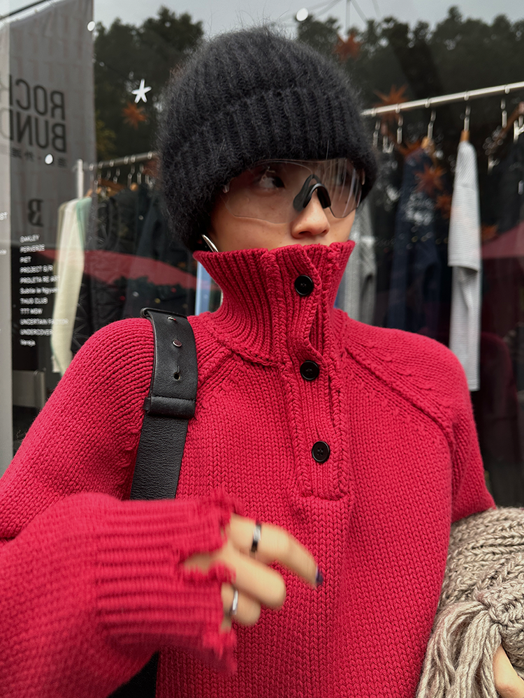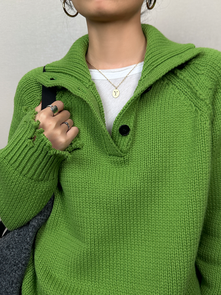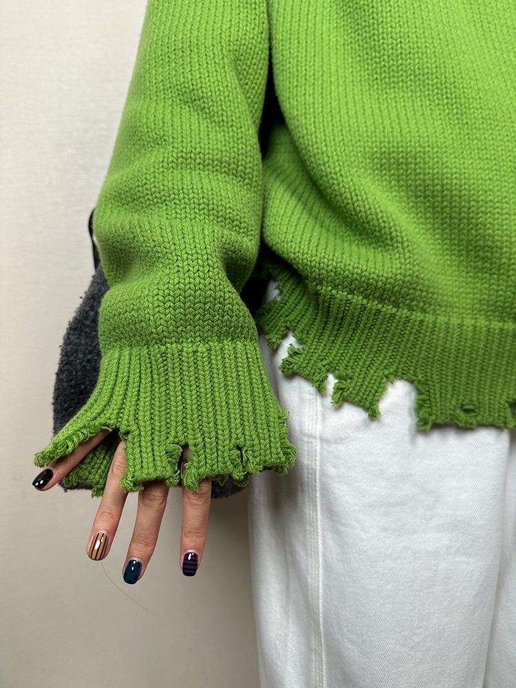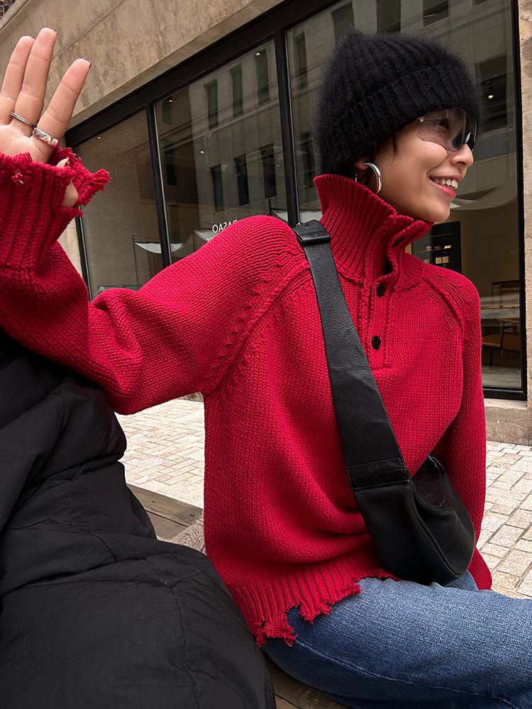 *o-ha-you*【FLCT2465】破邊高領毛衣秋冬2024新款洋氣寬鬆慵懶高級感冬季針織上衣-2色-如有需要請先諮詢