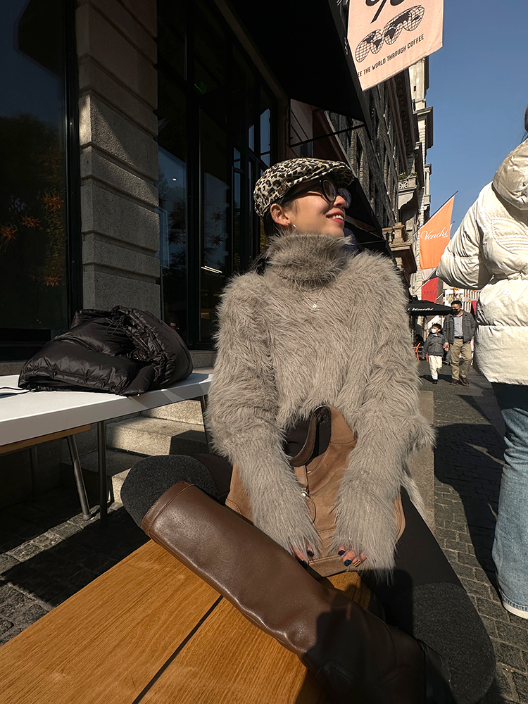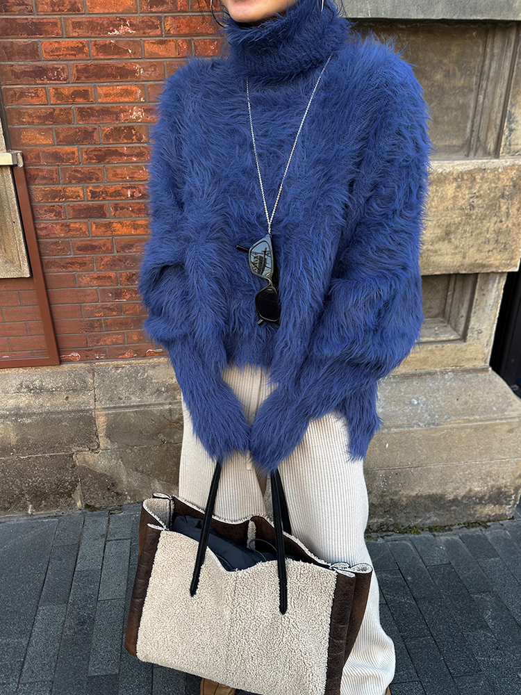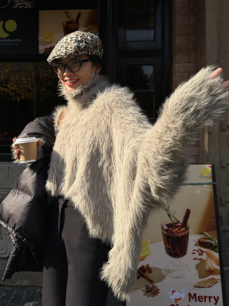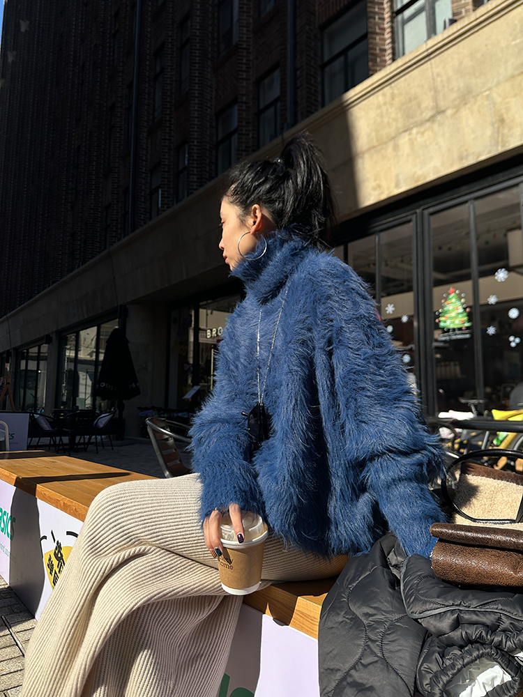 *o-ha-you*【FLCT2474】長毛高領毛衣秋冬2024新款洋氣慵懶高級感冬季針織毛絨絨上衣-2色-如有需要請先諮詢