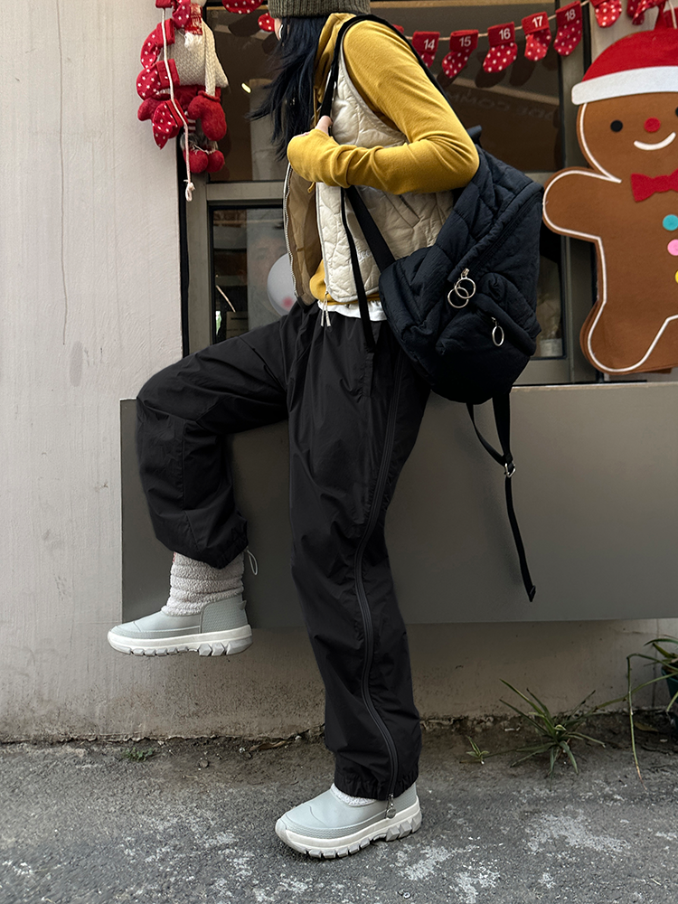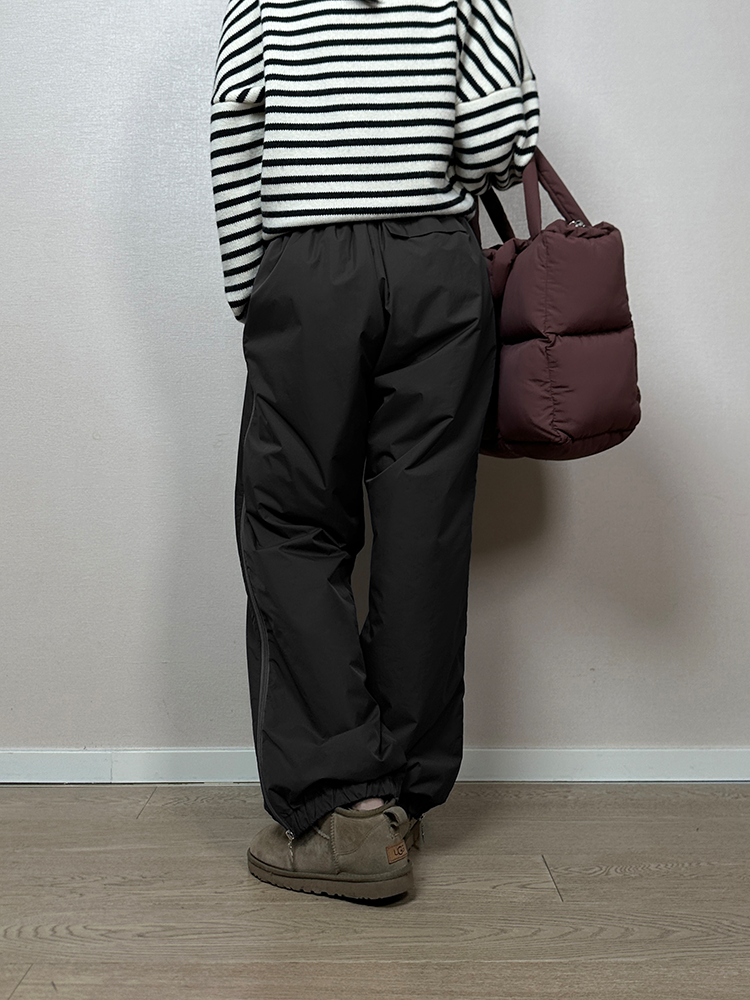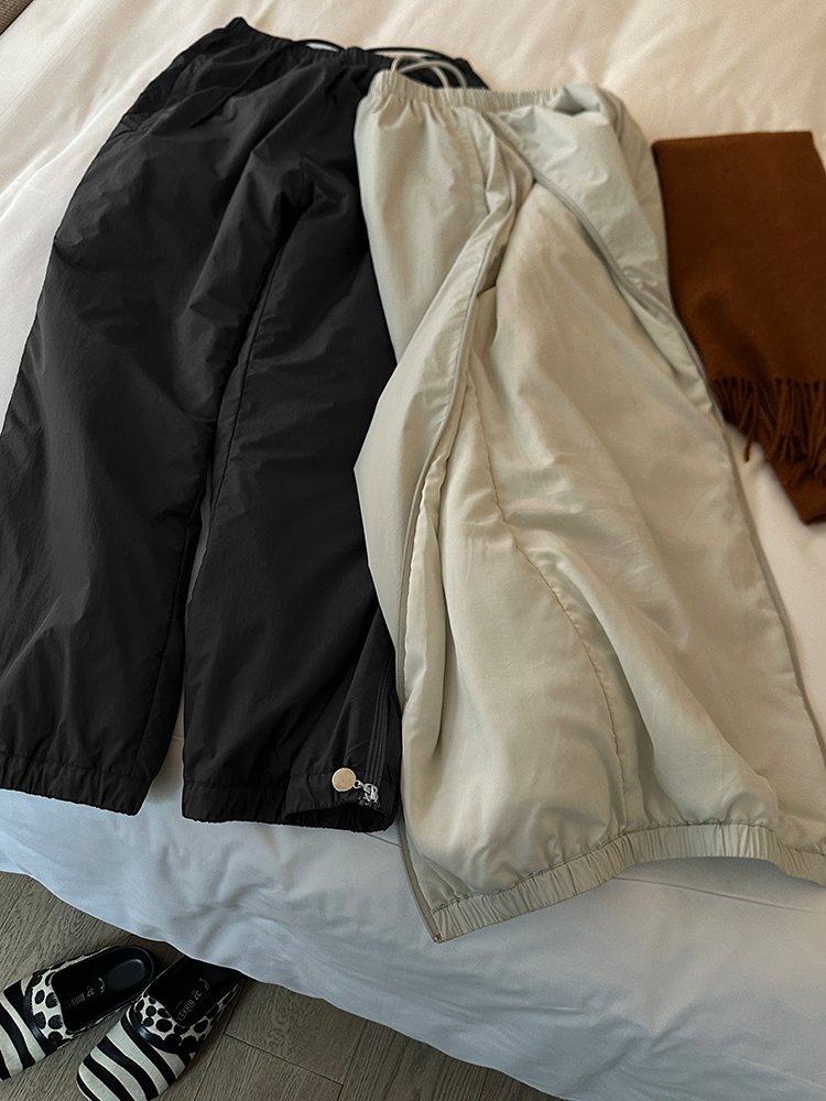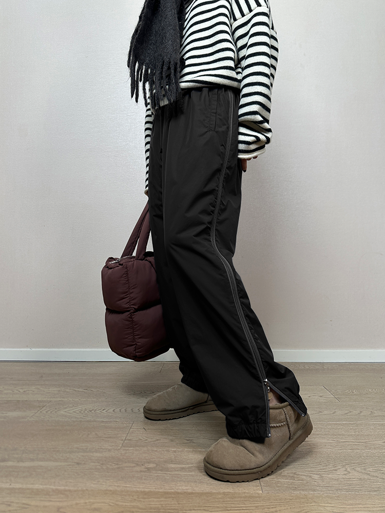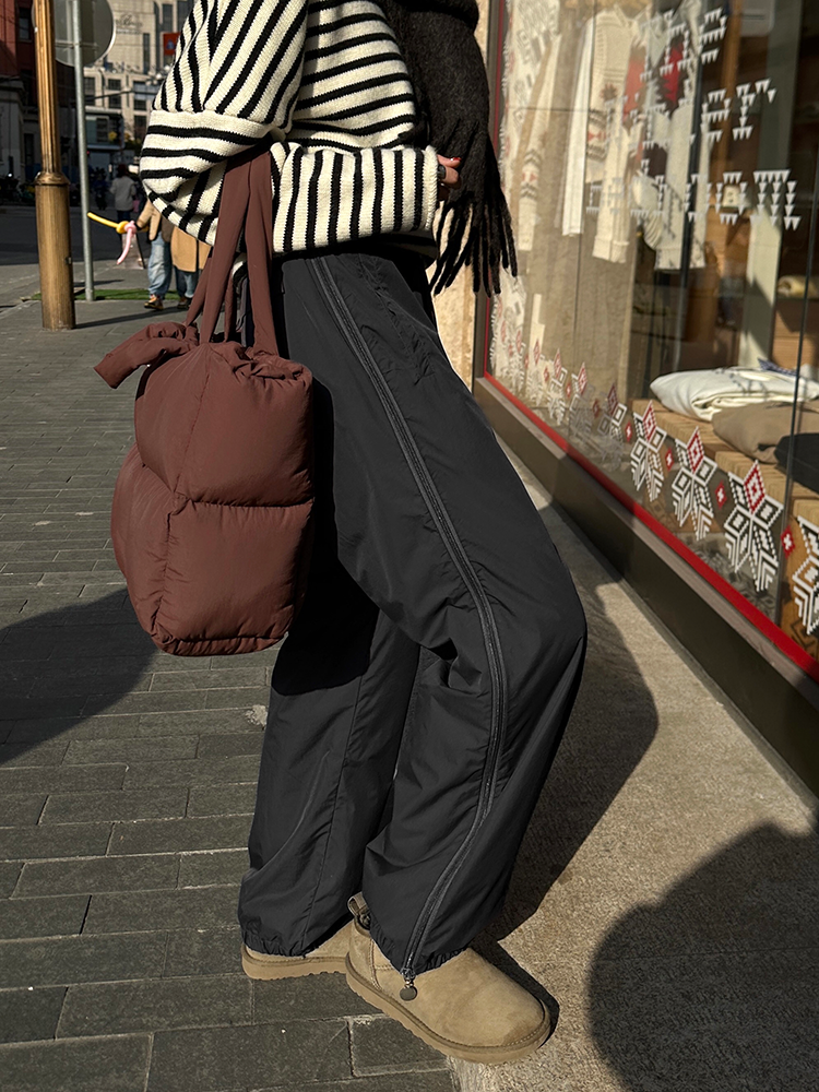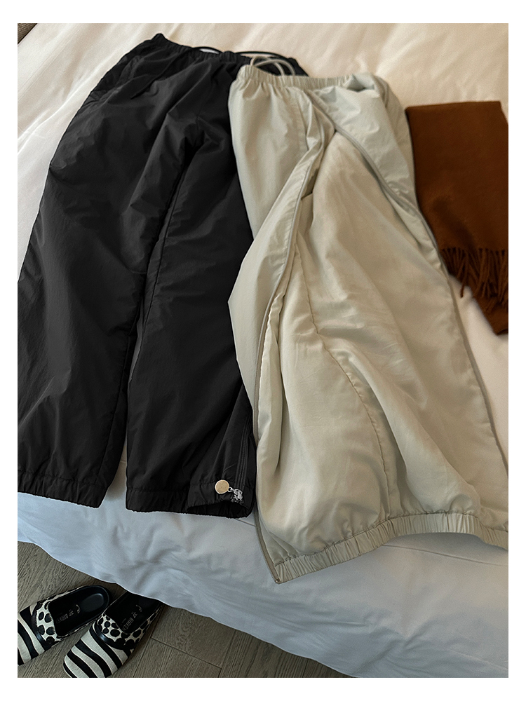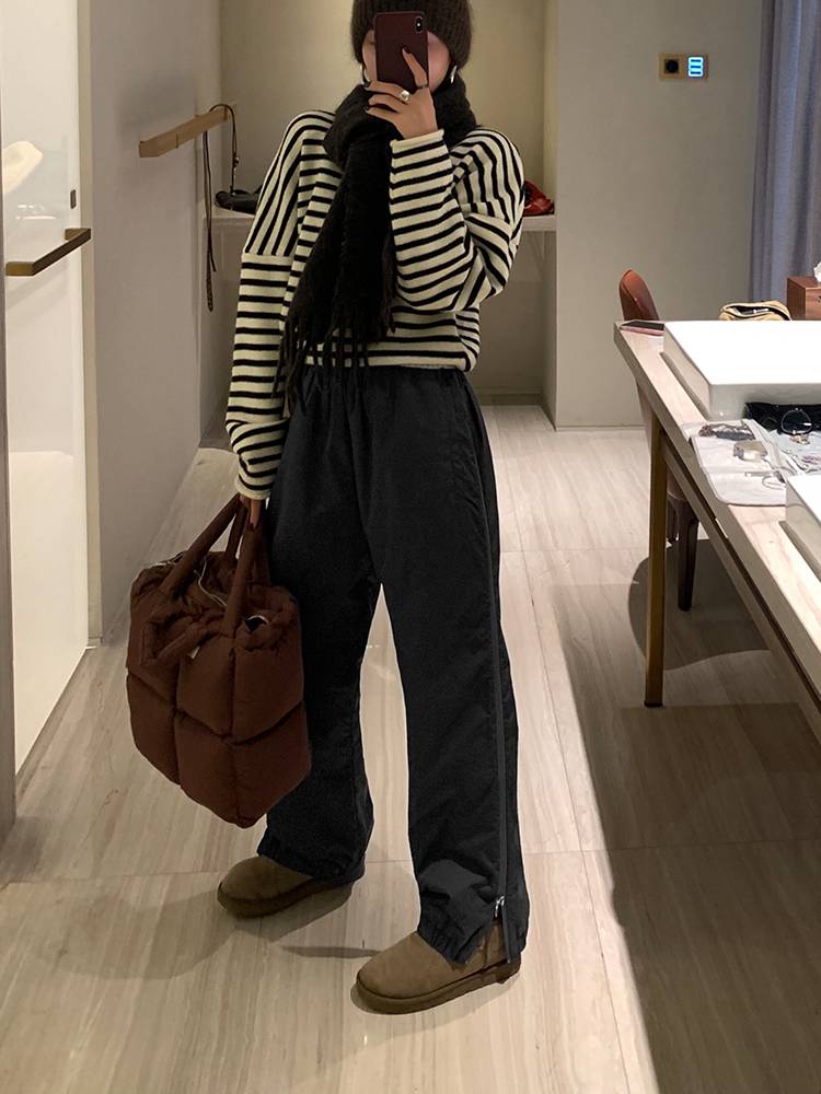 *o-ha-you*【FLCT2475-1】側邊拉鍊夾棉休閒褲女2024新款冬季時尚寬鬆保暖加厚束腳直筒褲棉褲-2色-黑色M有現貨