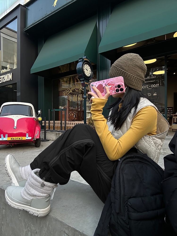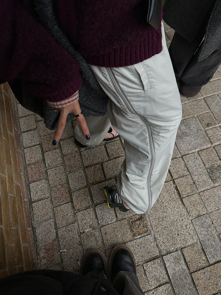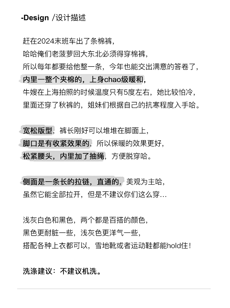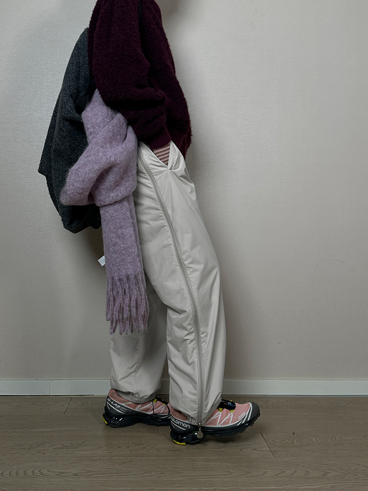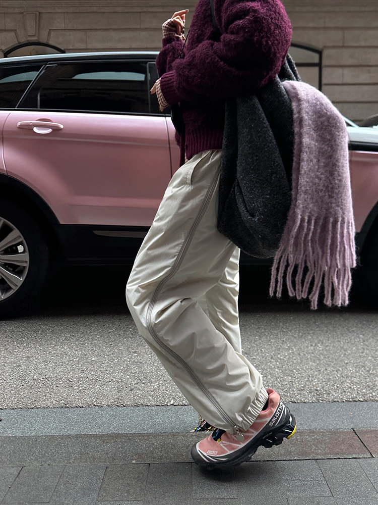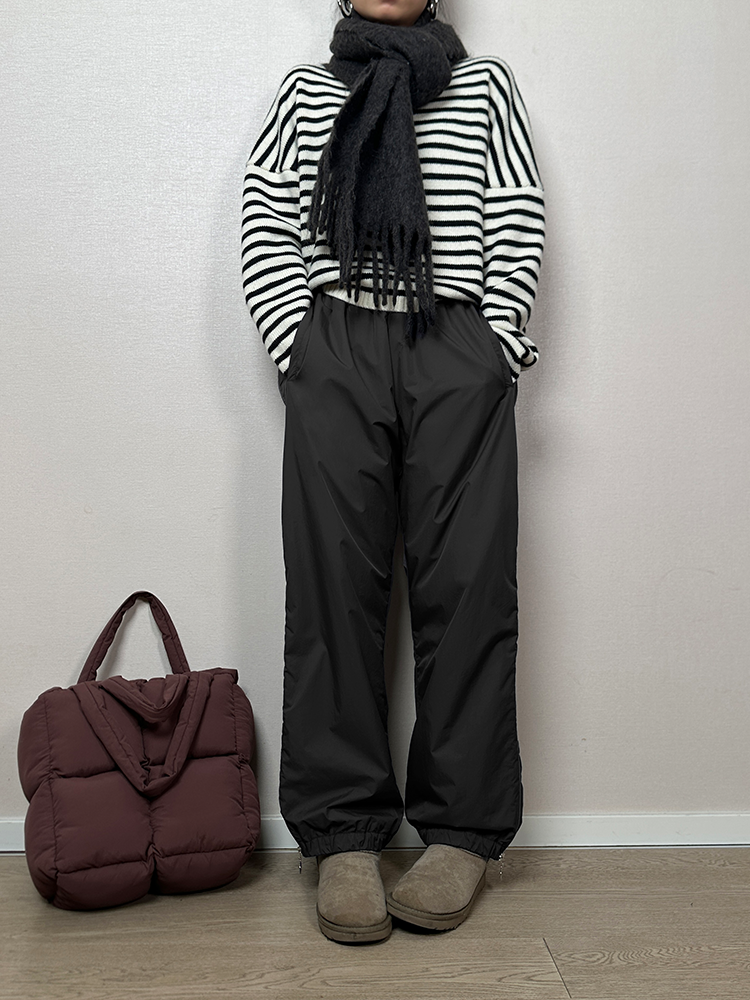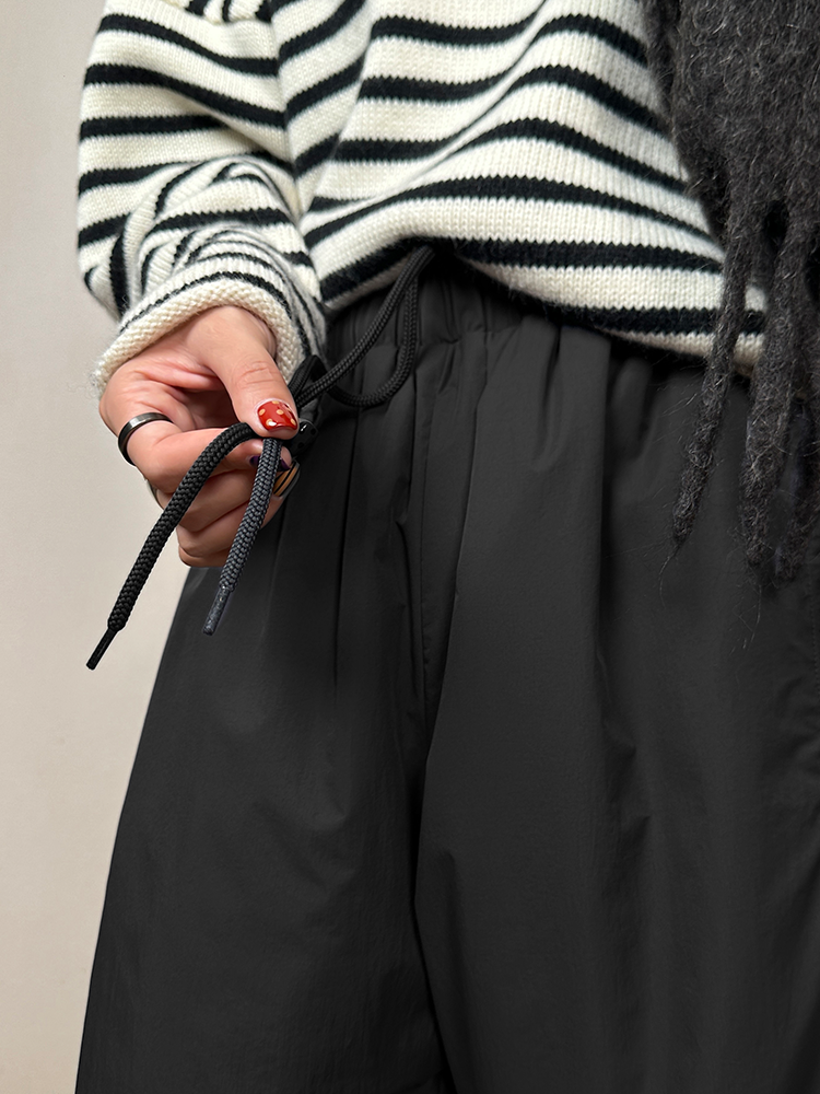*o-ha-you*【FLCT2475-1】側邊拉鍊夾棉休閒褲女2024新款冬季時尚寬鬆保暖加厚束腳直筒褲棉褲-2色-黑色M有現貨