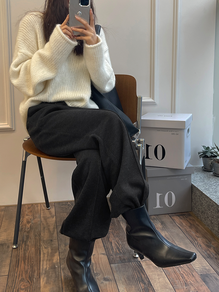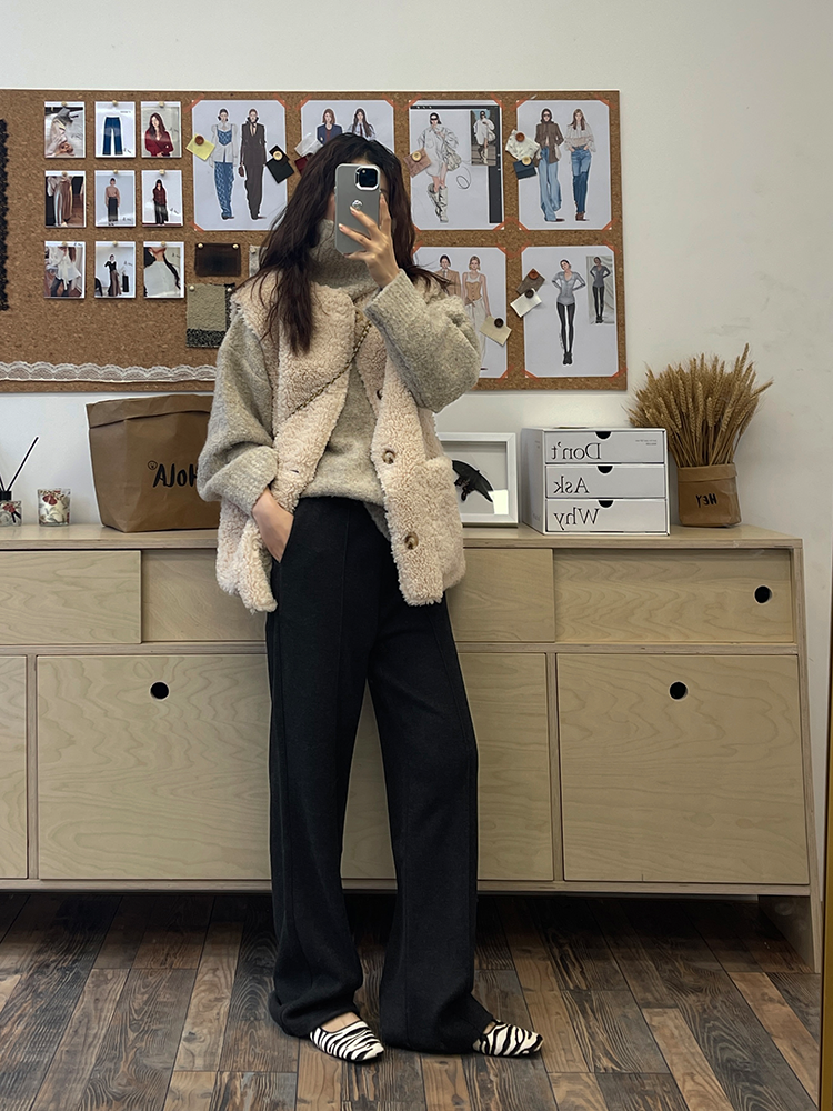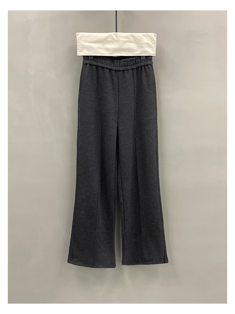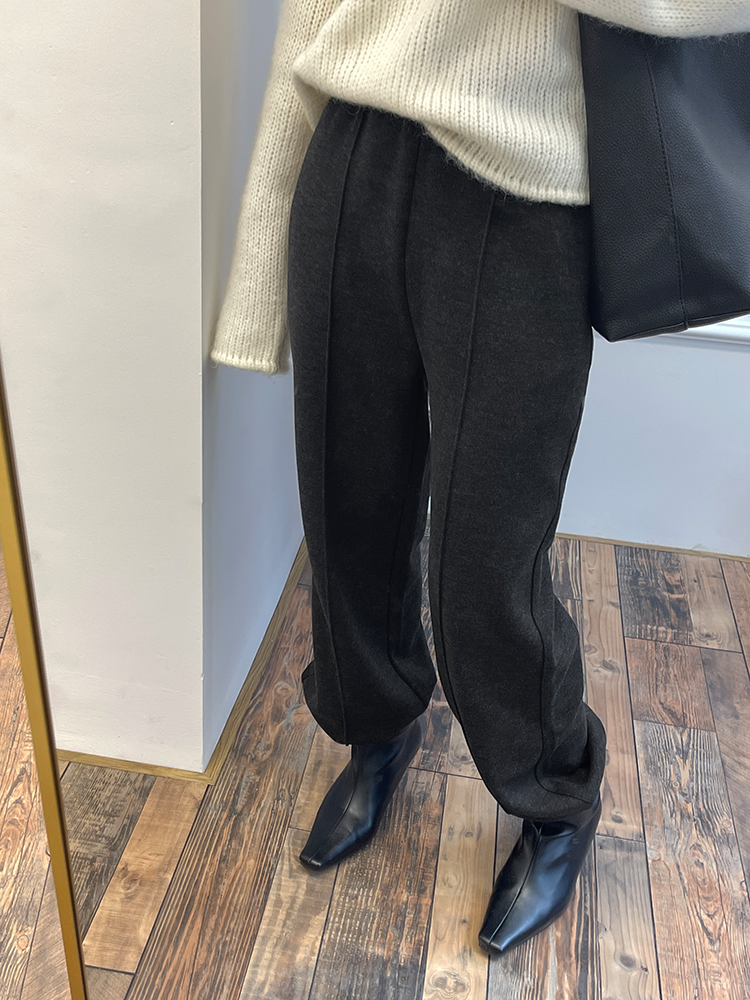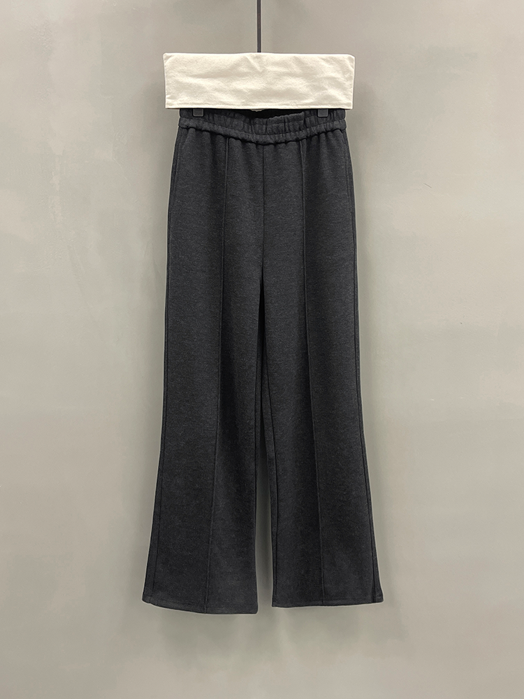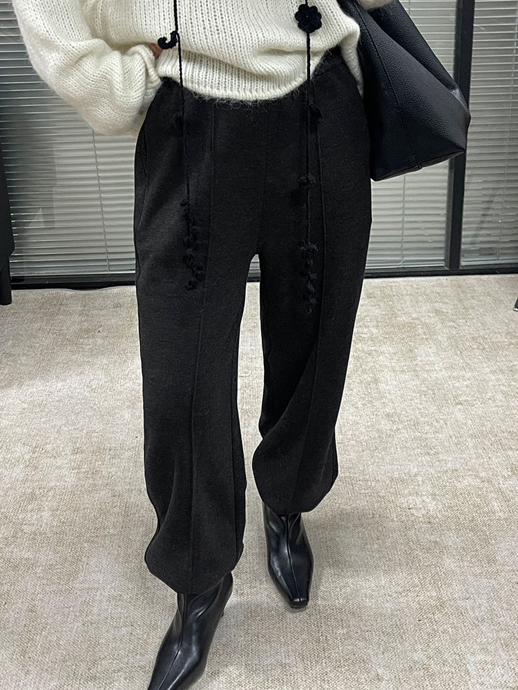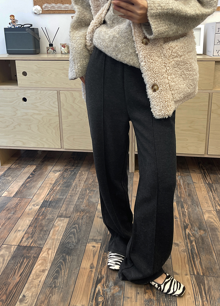 *o-ha-you*【FLCT2482】醋酸混紡羊毛做條襟線百搭小直筒褲子-2色-深灰色L有現貨