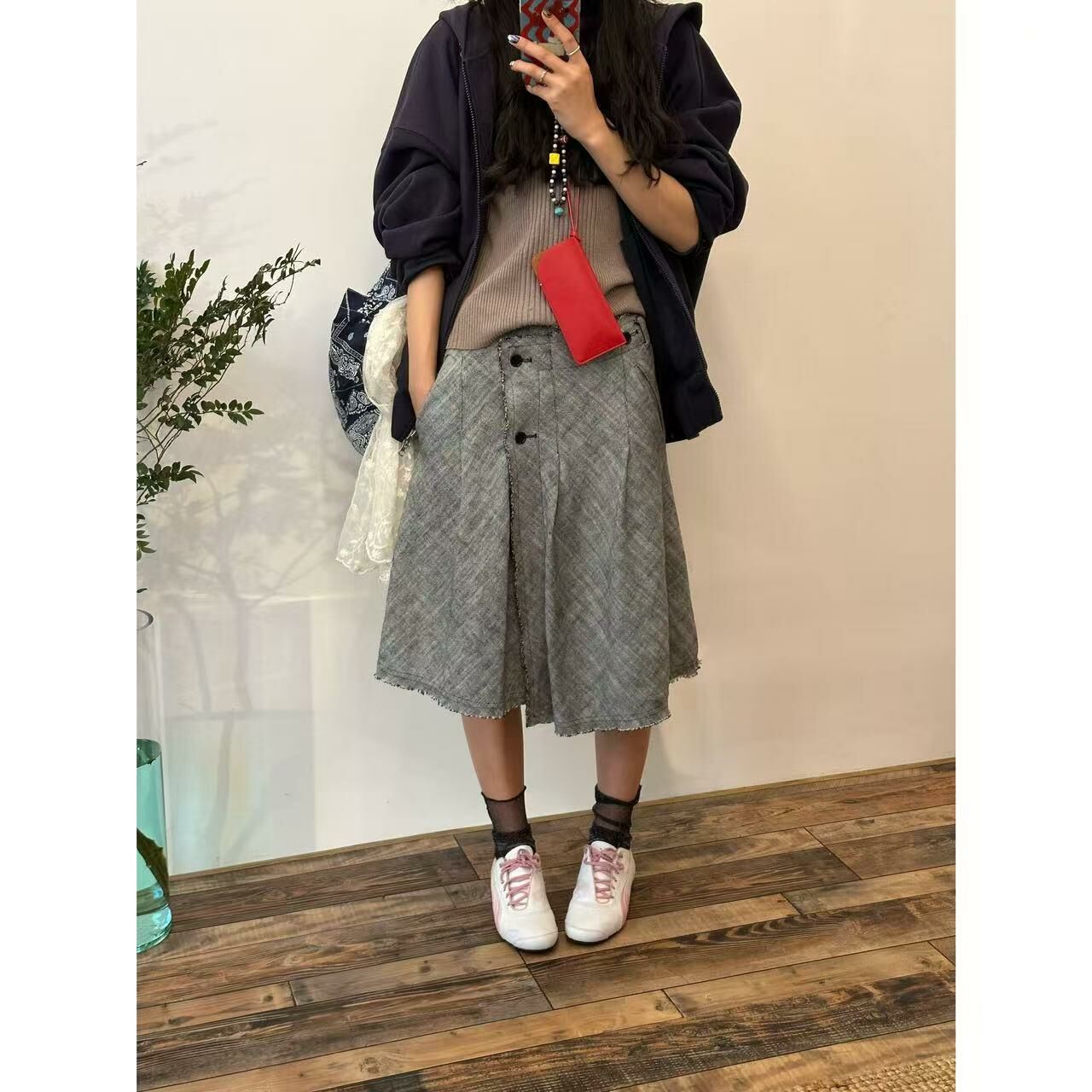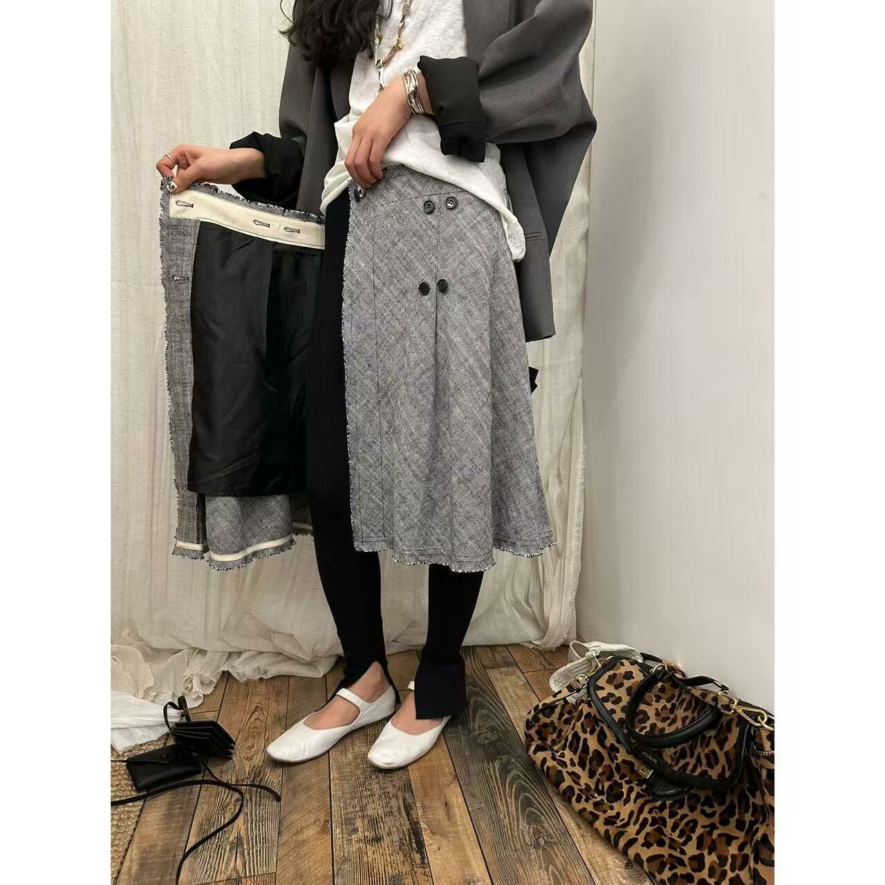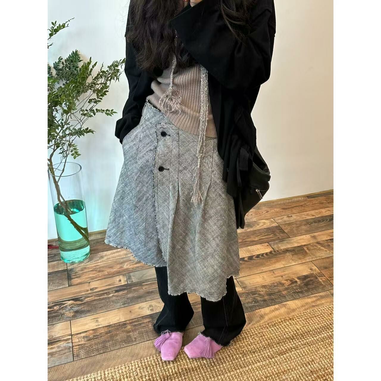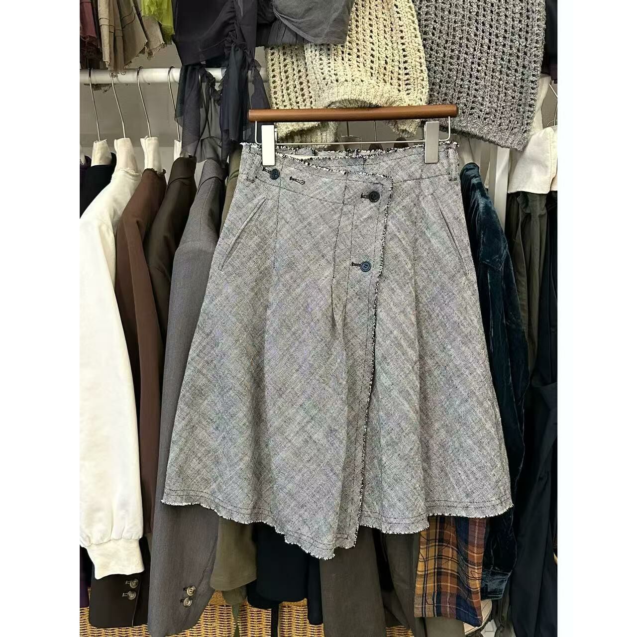 *o-ha-you*【FLCT2485】穿不穿裙子都要買一條的40麻60棉人字紋一片式毛邊半裙可調腰圍~下單後盡力搶~搶不到別怪我
