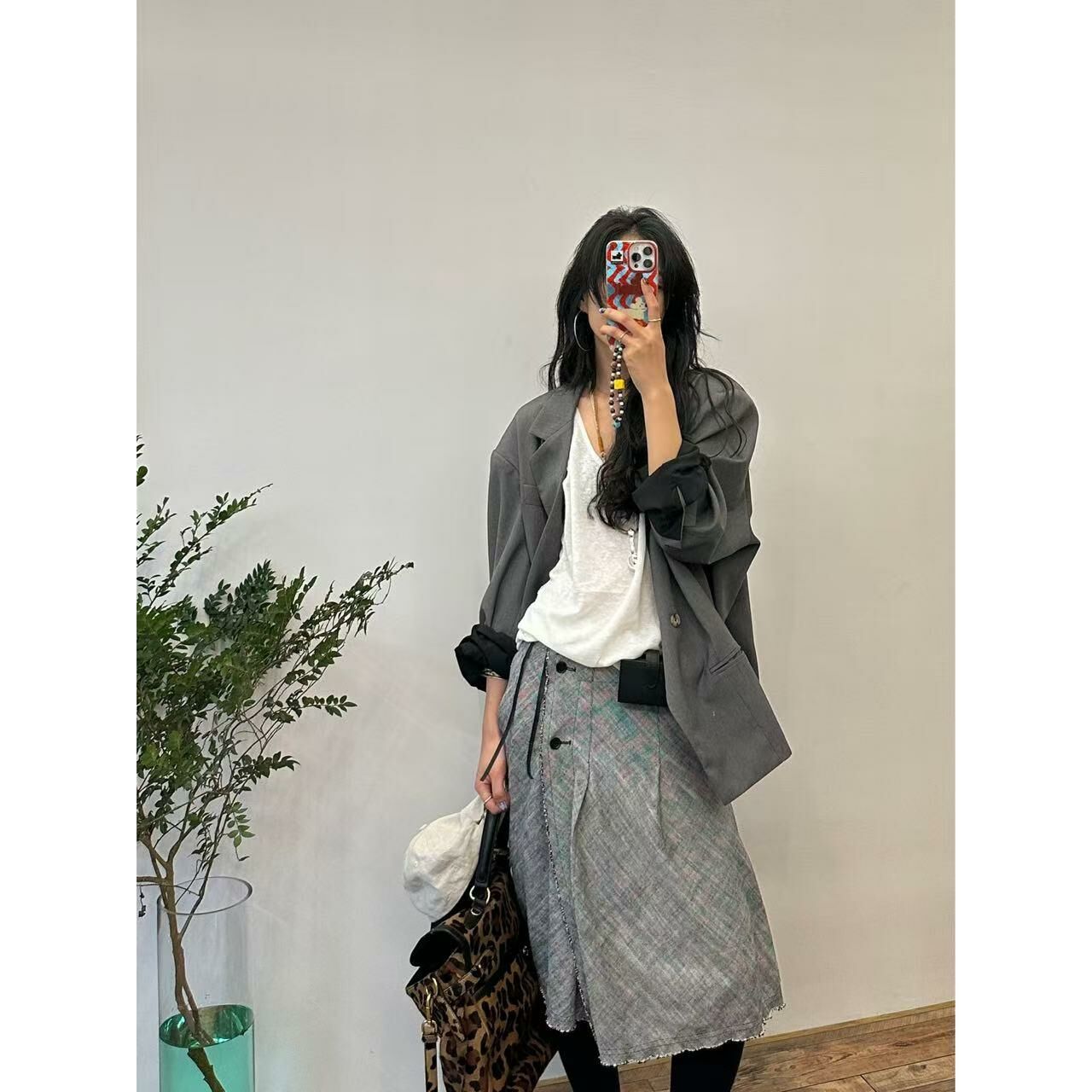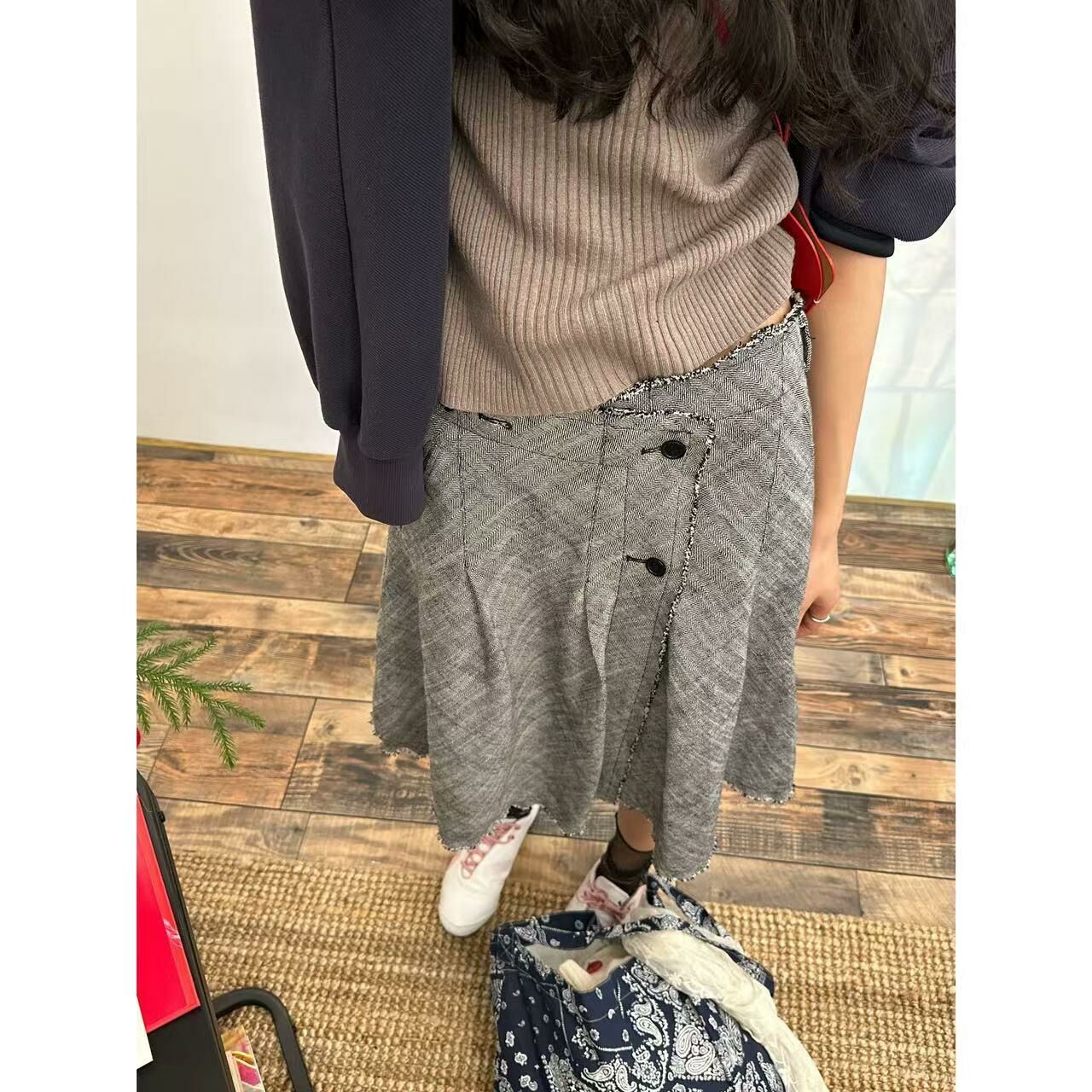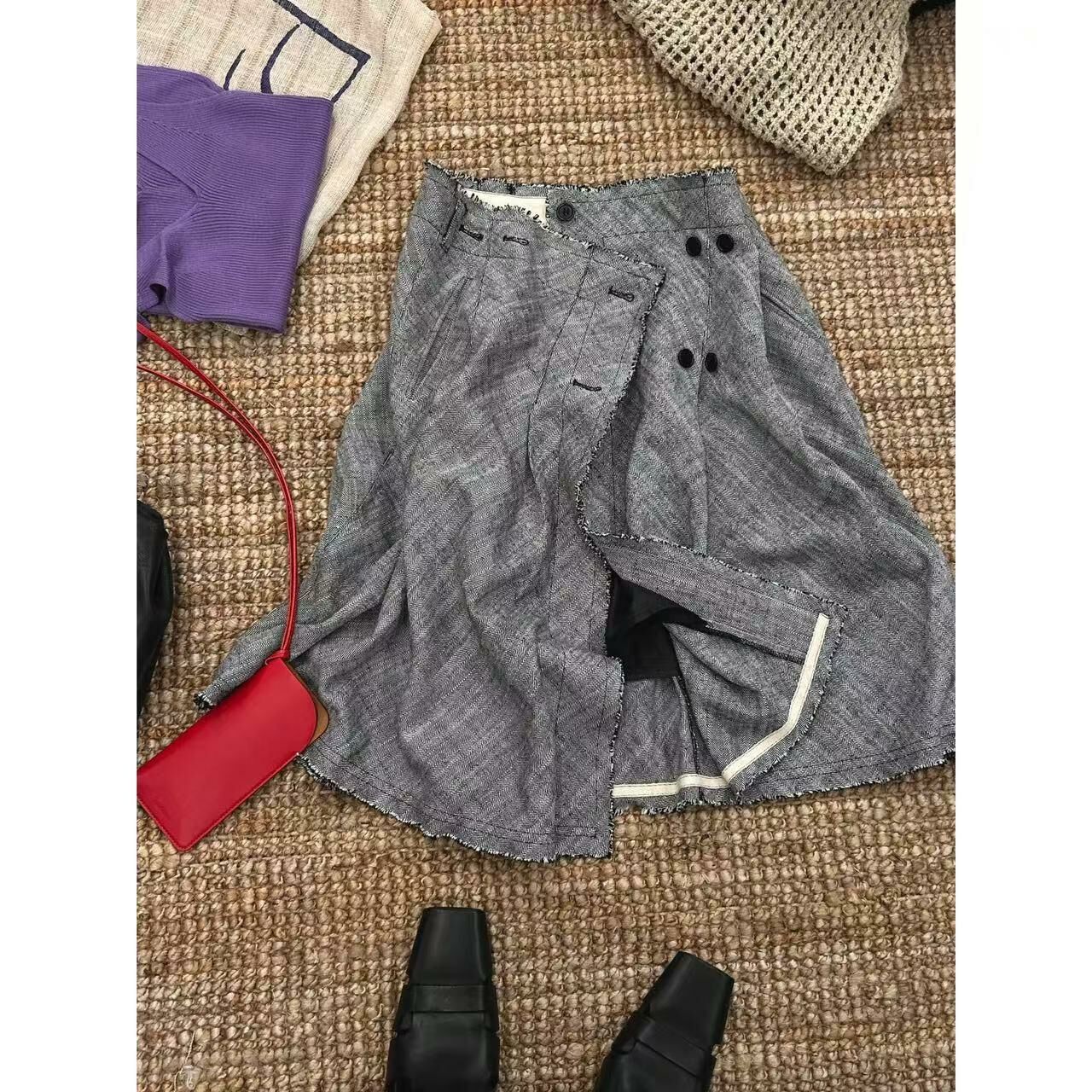 *o-ha-you*【FLCT2485】穿不穿裙子都要買一條的40麻60棉人字紋一片式毛邊半裙可調腰圍~下單後盡力搶~搶不到別怪我