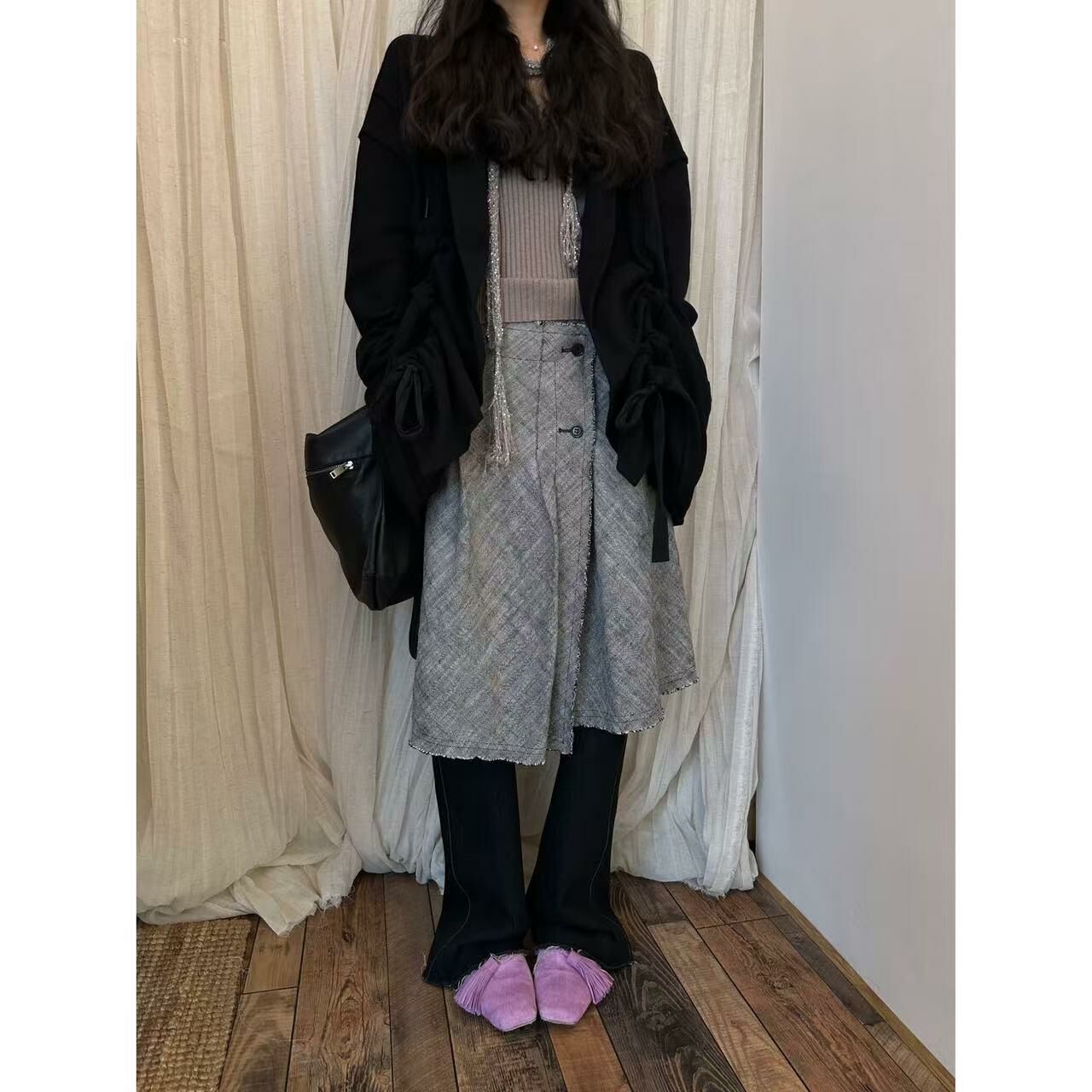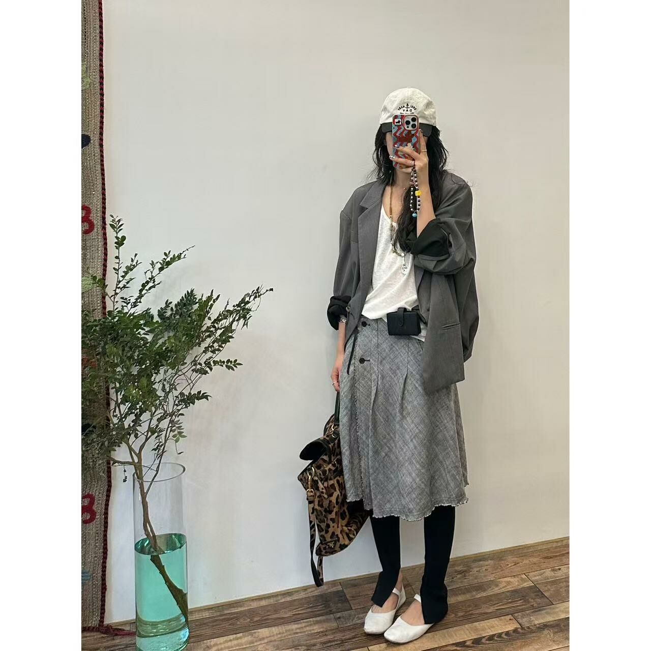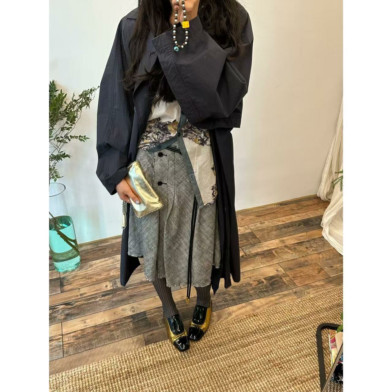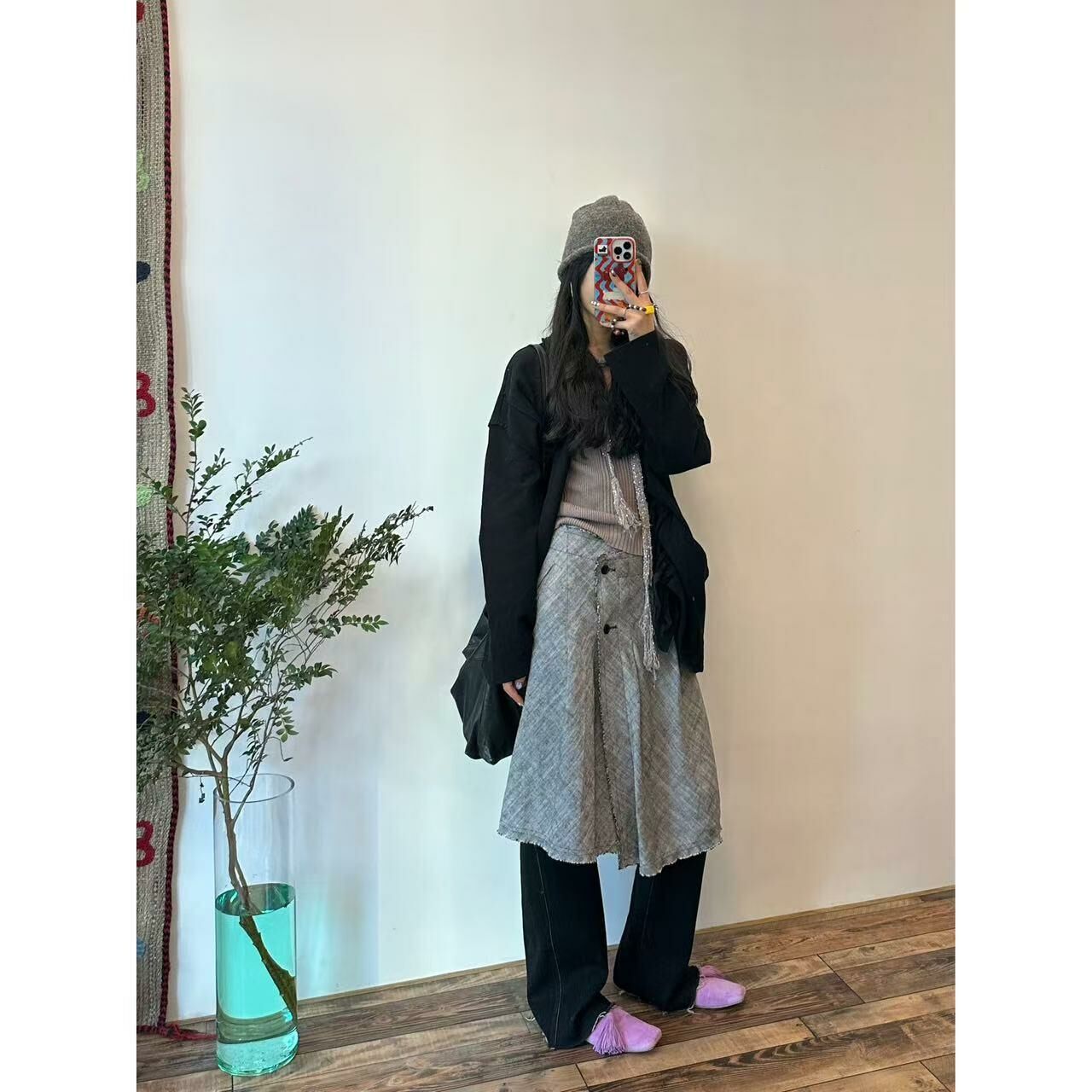 *o-ha-you*【FLCT2485】穿不穿裙子都要買一條的40麻60棉人字紋一片式毛邊半裙可調腰圍~下單後盡力搶~搶不到別怪我