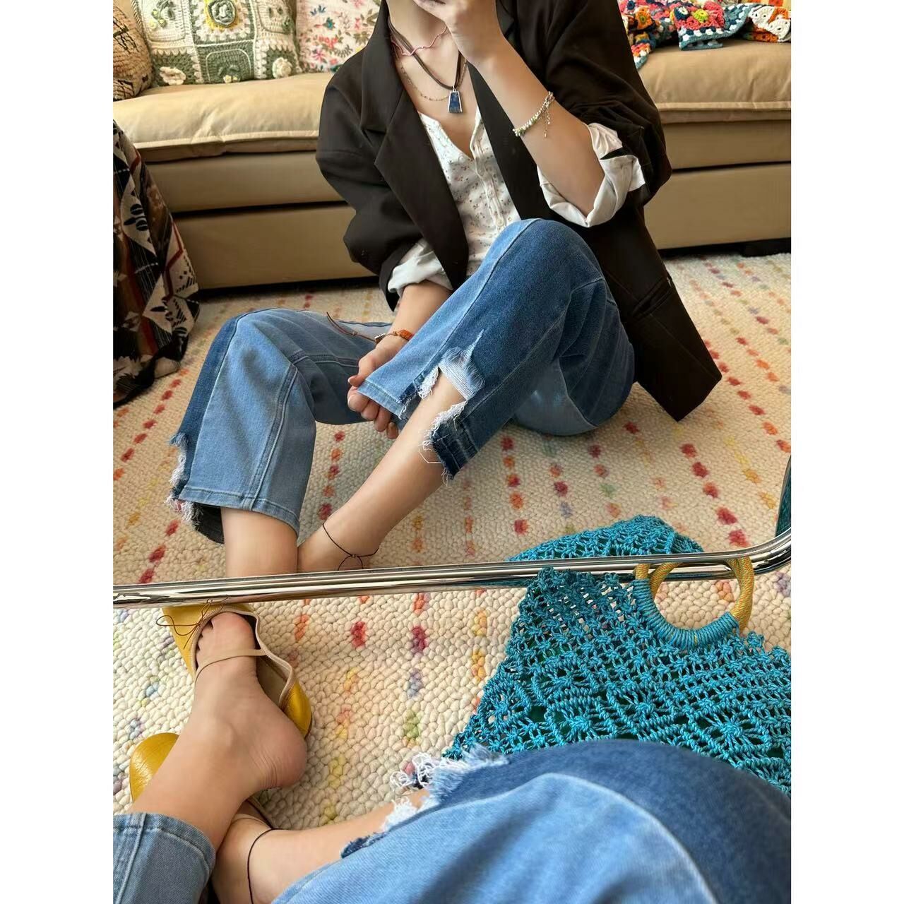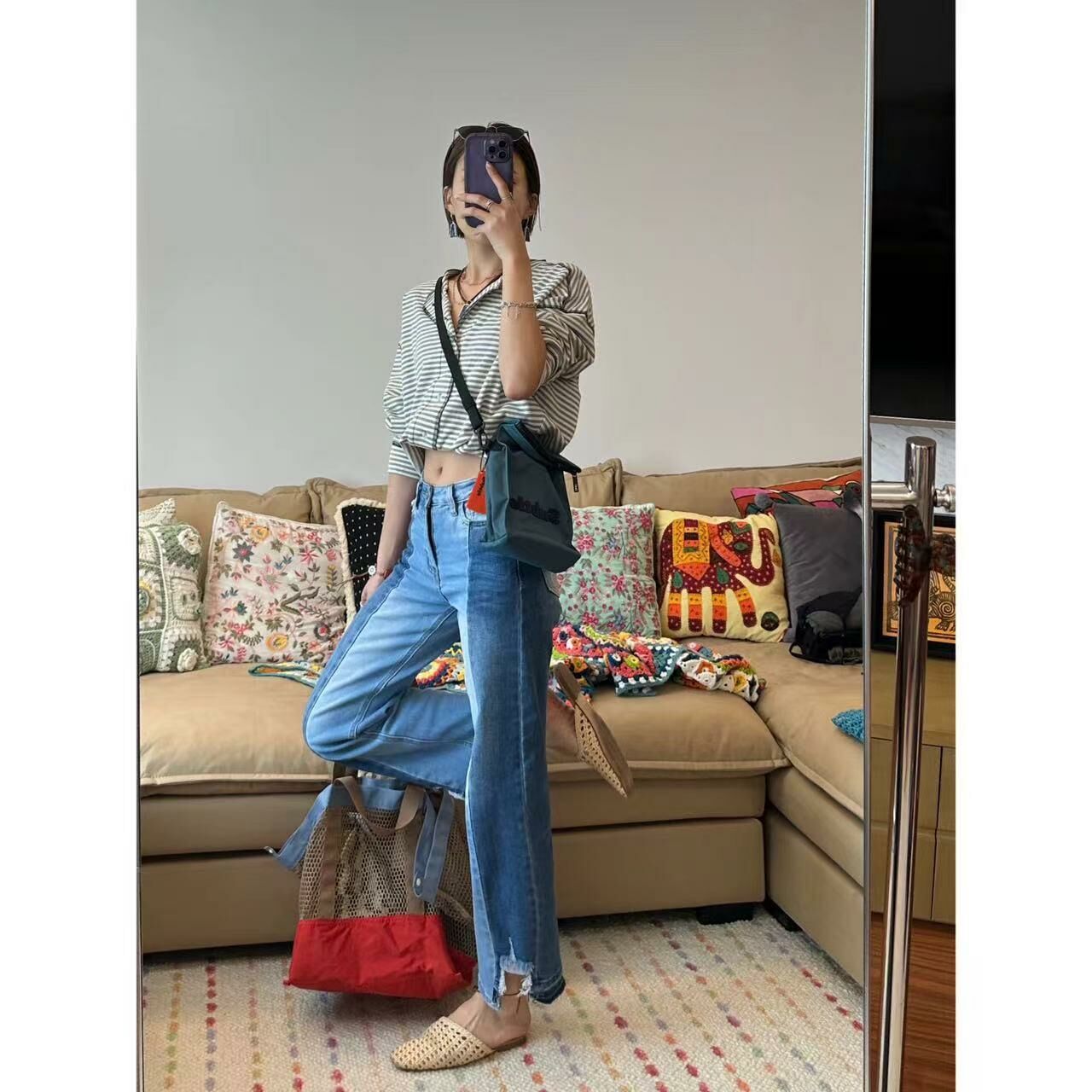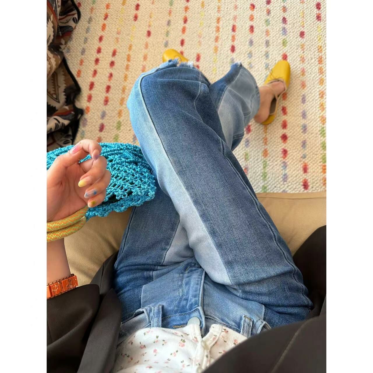 *o-ha-you*【FLCT2486】絕版-拉腿顯瘦濾鏡開到底的左右拼色彈力直筒9分牛仔褲 整條8片拼接-隱藏限量款~下單後盡力搶~搶不到別怪我-如有需要請先諮詢