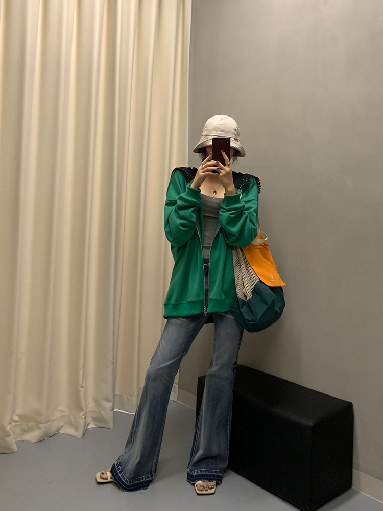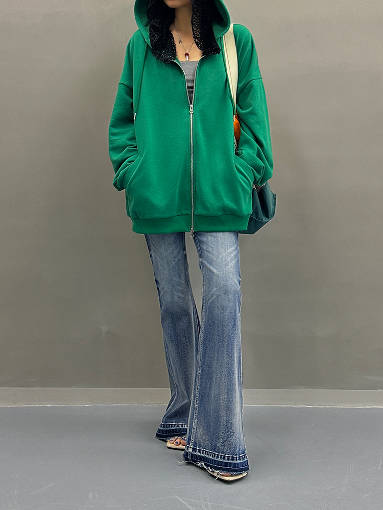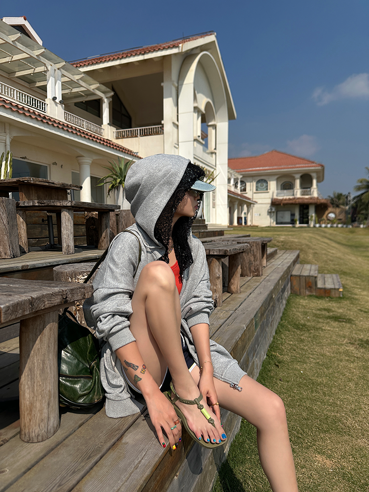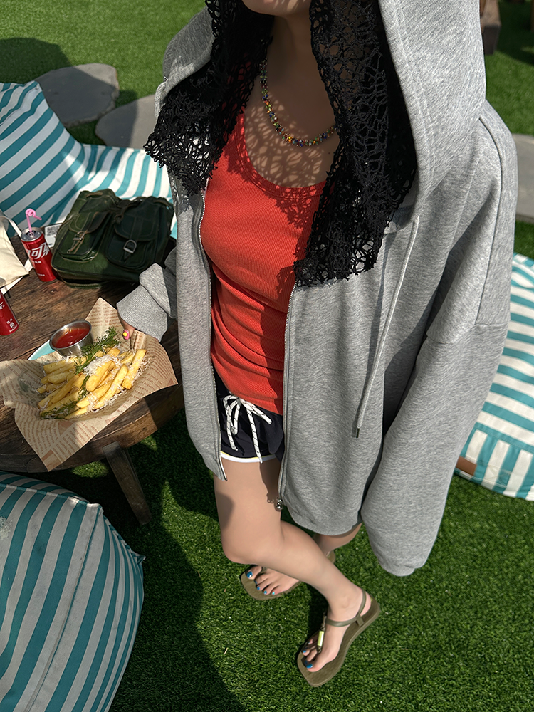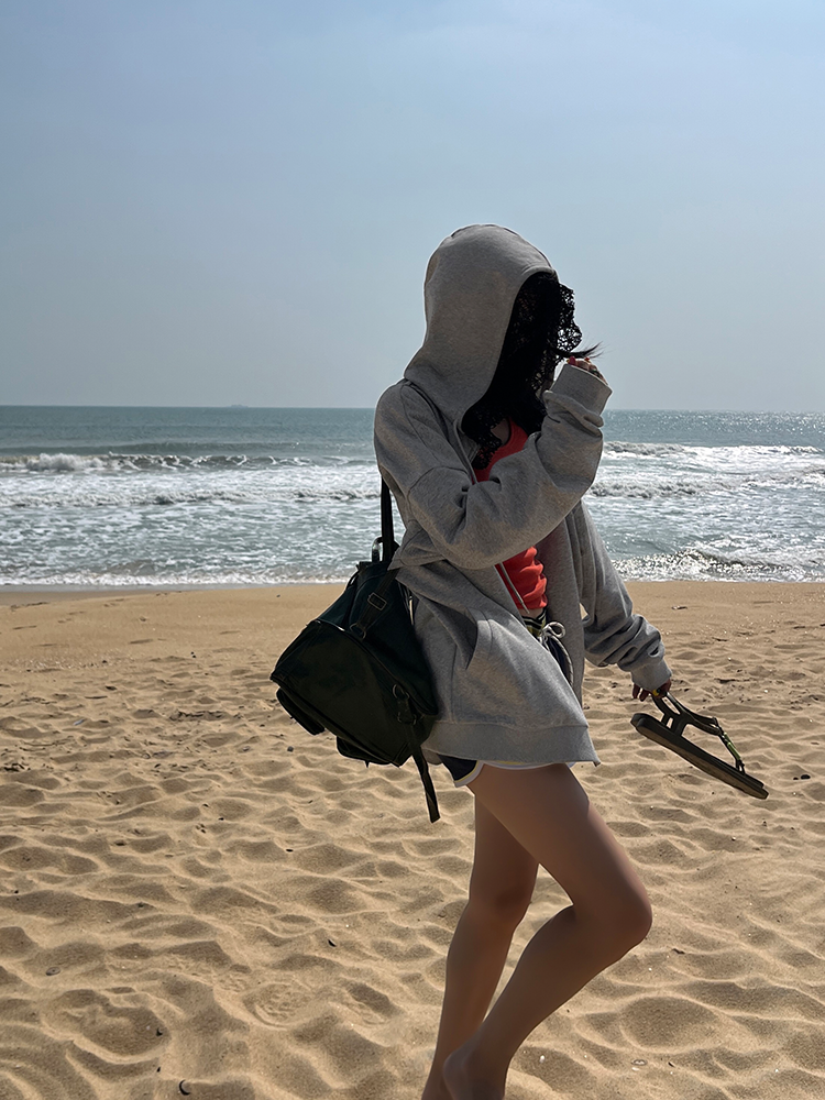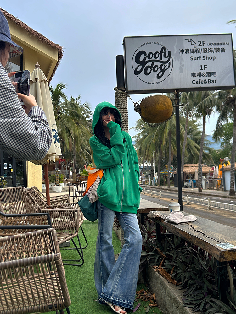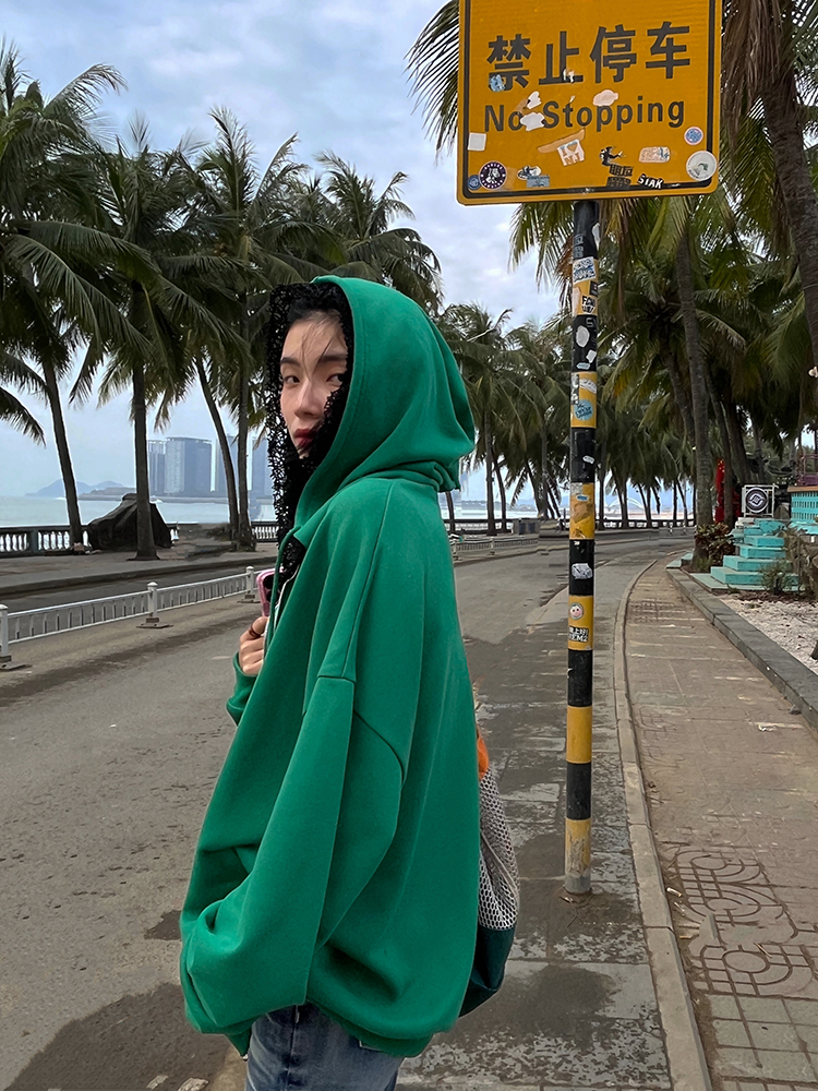 *o-ha-you*【FLCT2488】蕾絲拼接連帽衛衣外套2025新款春季洋氣寬鬆慵懶風休閒拉鍊開襟衫-2色-如有需要請先諮詢