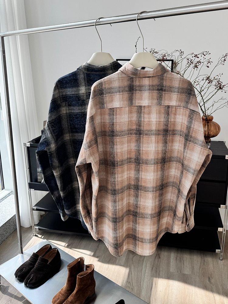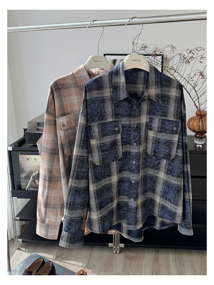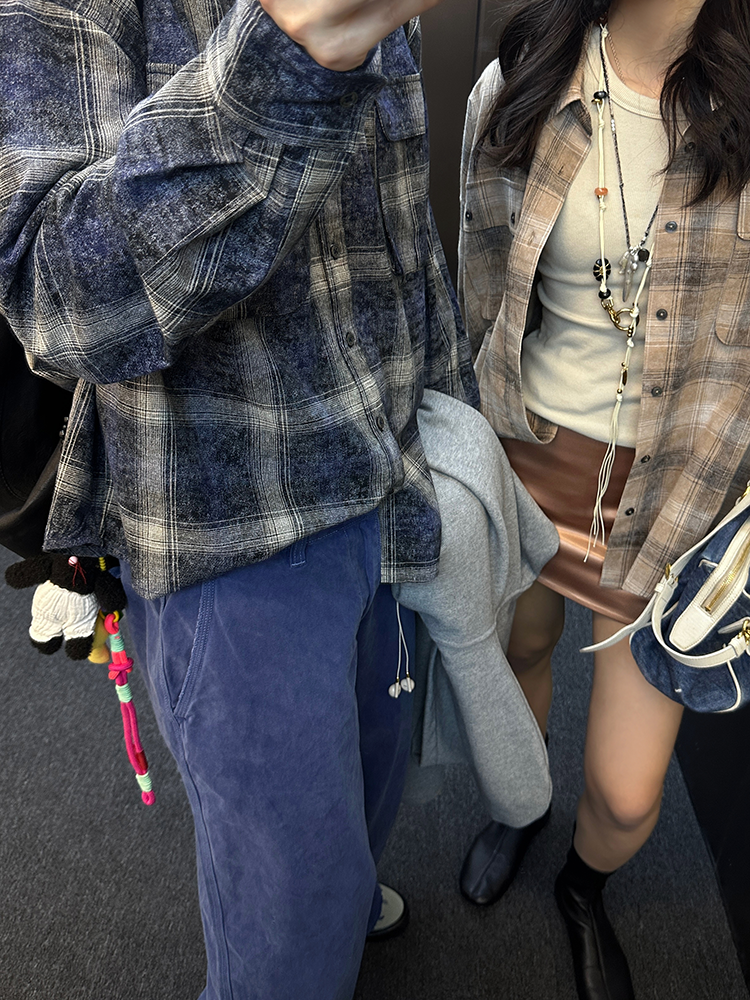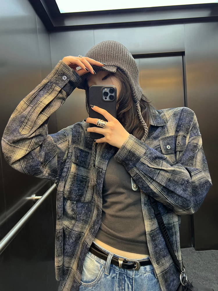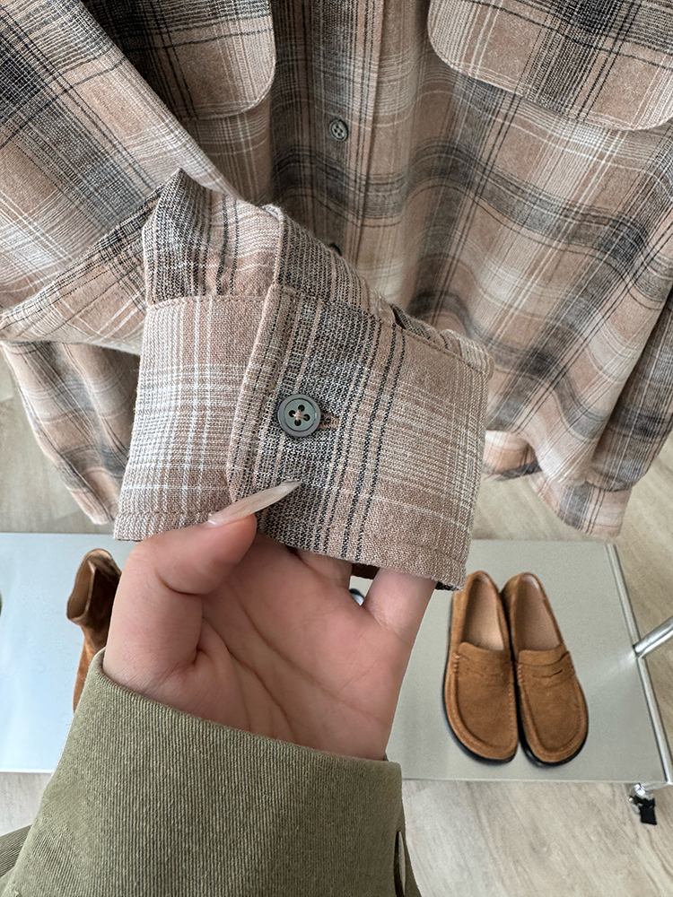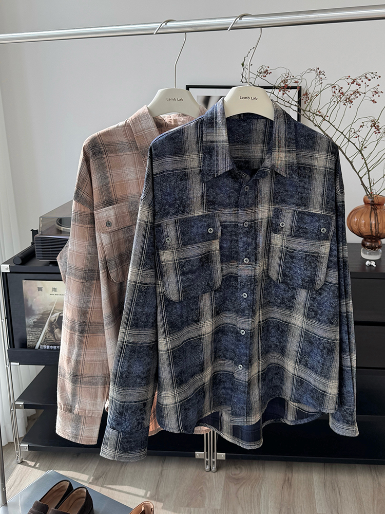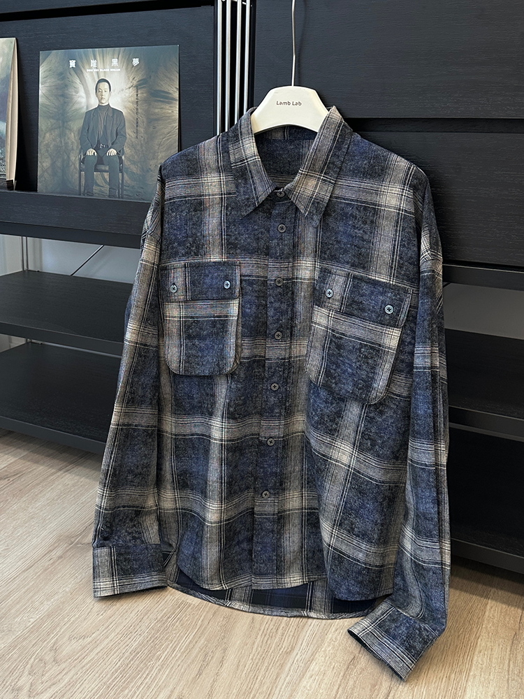 *o-ha-you*【FLCT2511】暈雪花的立體口袋的隨意格紋襯衫-2色-如有需要請先諮詢